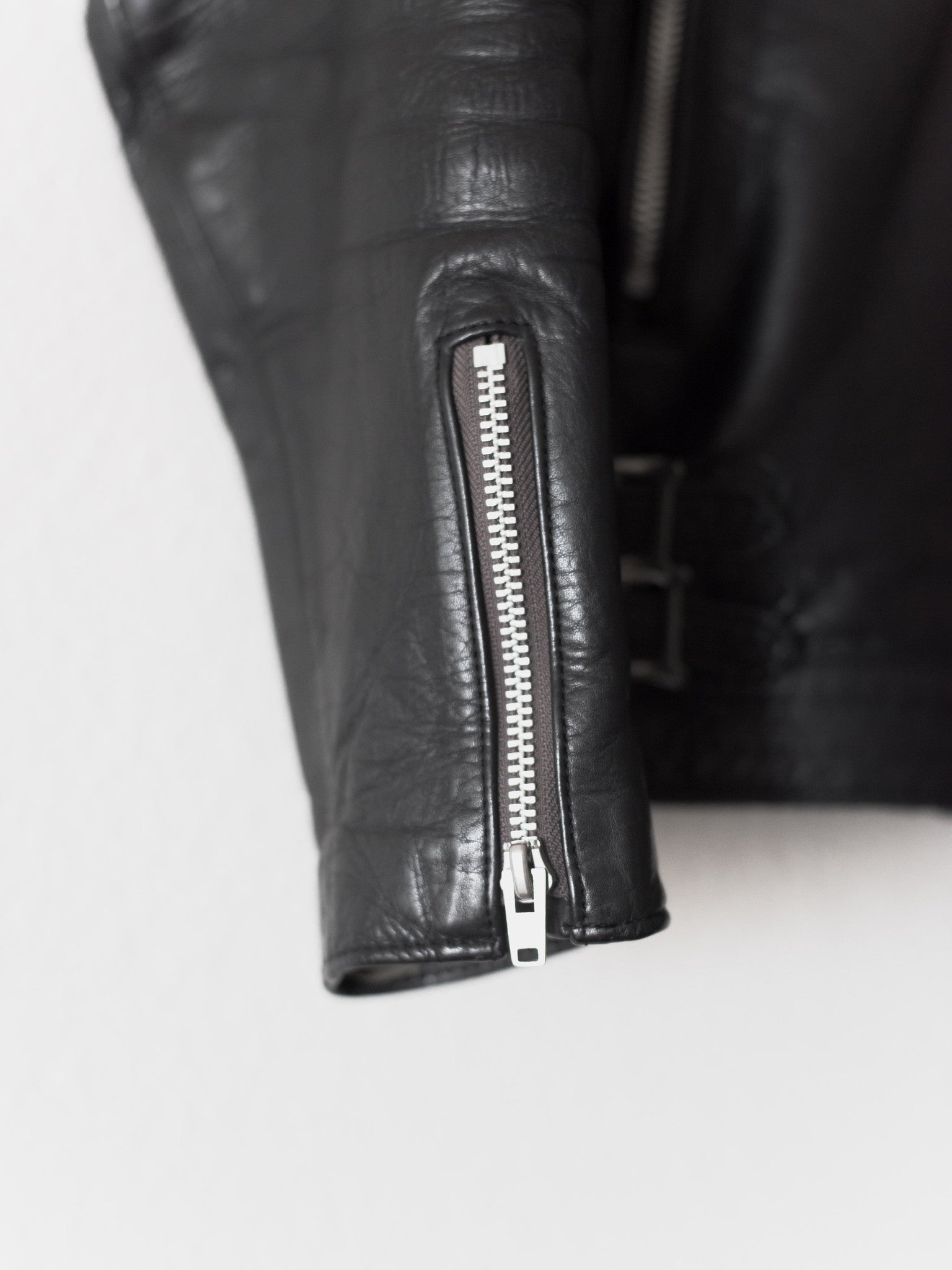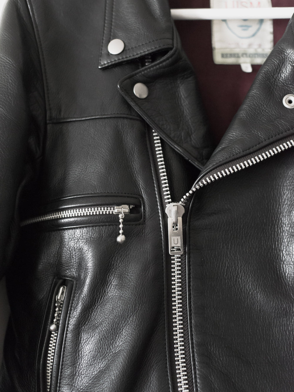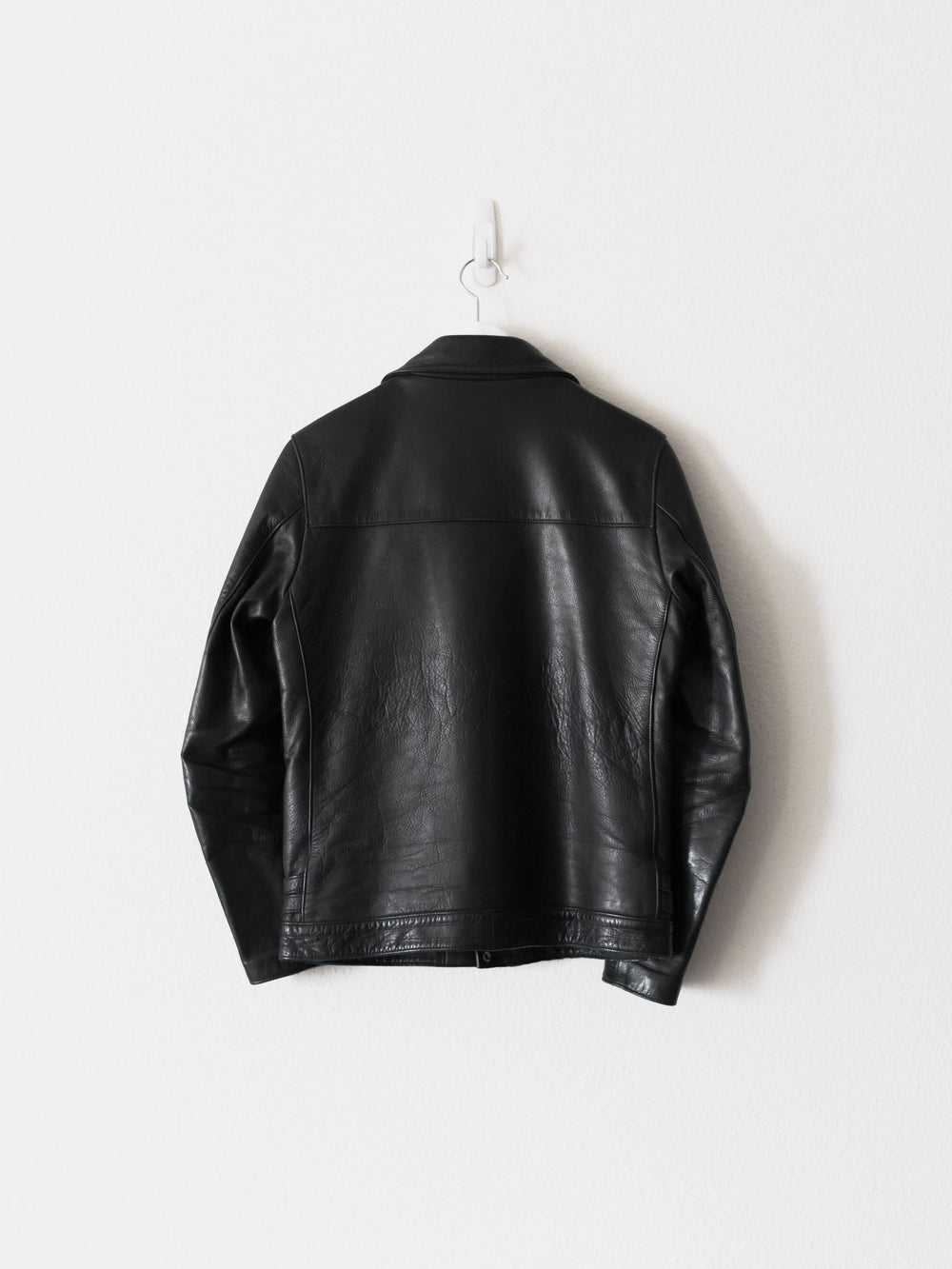 The best iteration hands down of one of the best leather jackets, a grail for many, and priced to sell quick, cheaper than you can get it for in Japan. Rare size 2. The first ever "We make noise not clothes" leather and arguably unsurpassed, this has the thickest and juiciest calf-hide of all subsequent iterations. Other details include a breathable cotton lined body and cupro lined sleeves, vertical slant hand pockets, and two horizontal pockets. 8.5/10 condition, the gold chest emblem has rubbed off over time. Made in Japan.