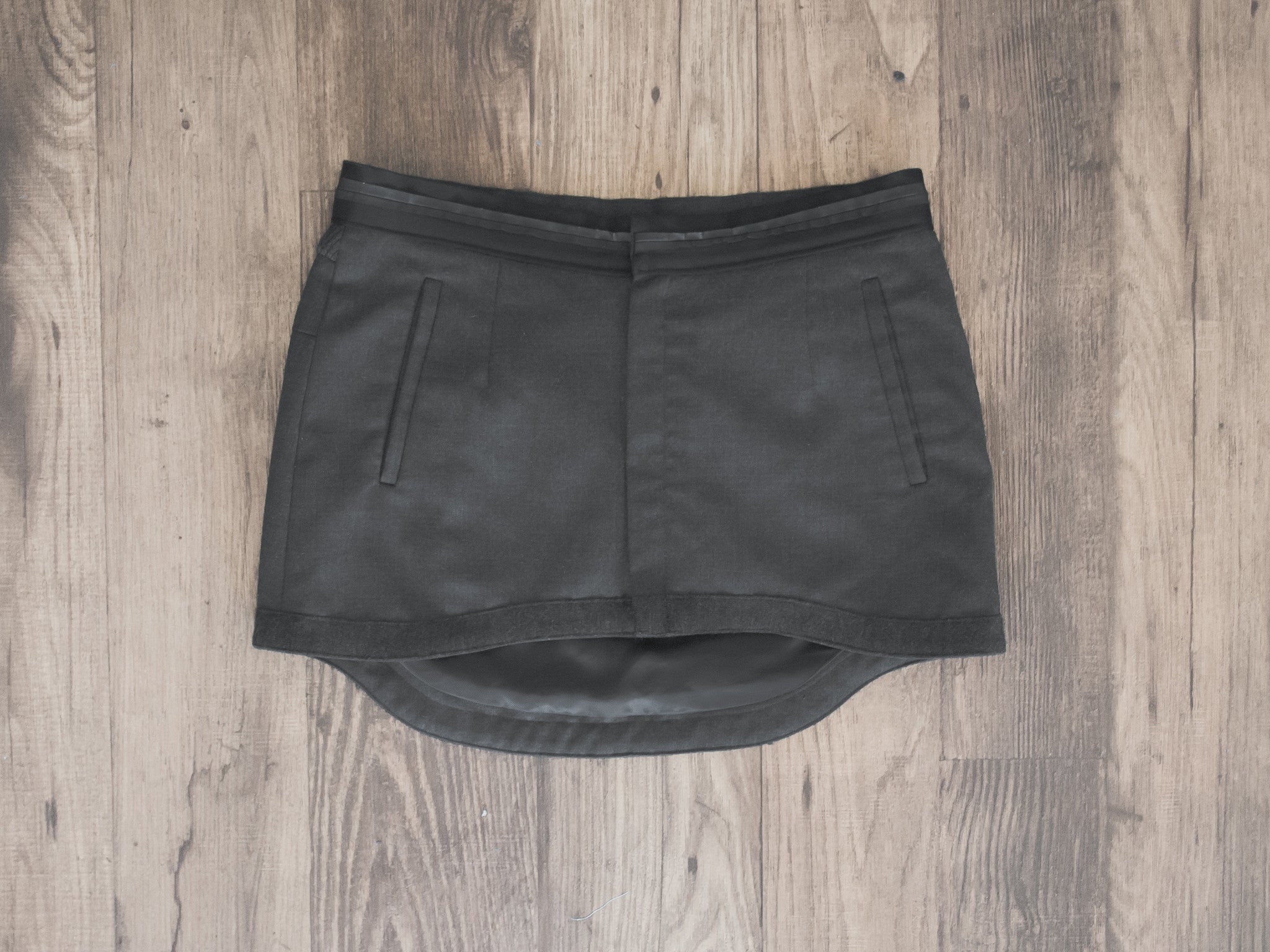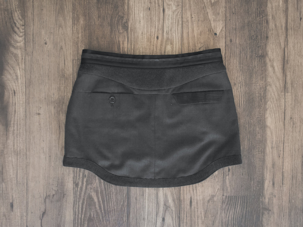 Extremely rare piece featuring all of Earmuff Maniac's signature details such as skirted hems, anatomic seams, mixed fabrics from wool to knits to silk. The skirt is detachable and both pieces can be worn individually. Both are completely cupro lined. Made in Japan. 10/10 condition, no flaws.