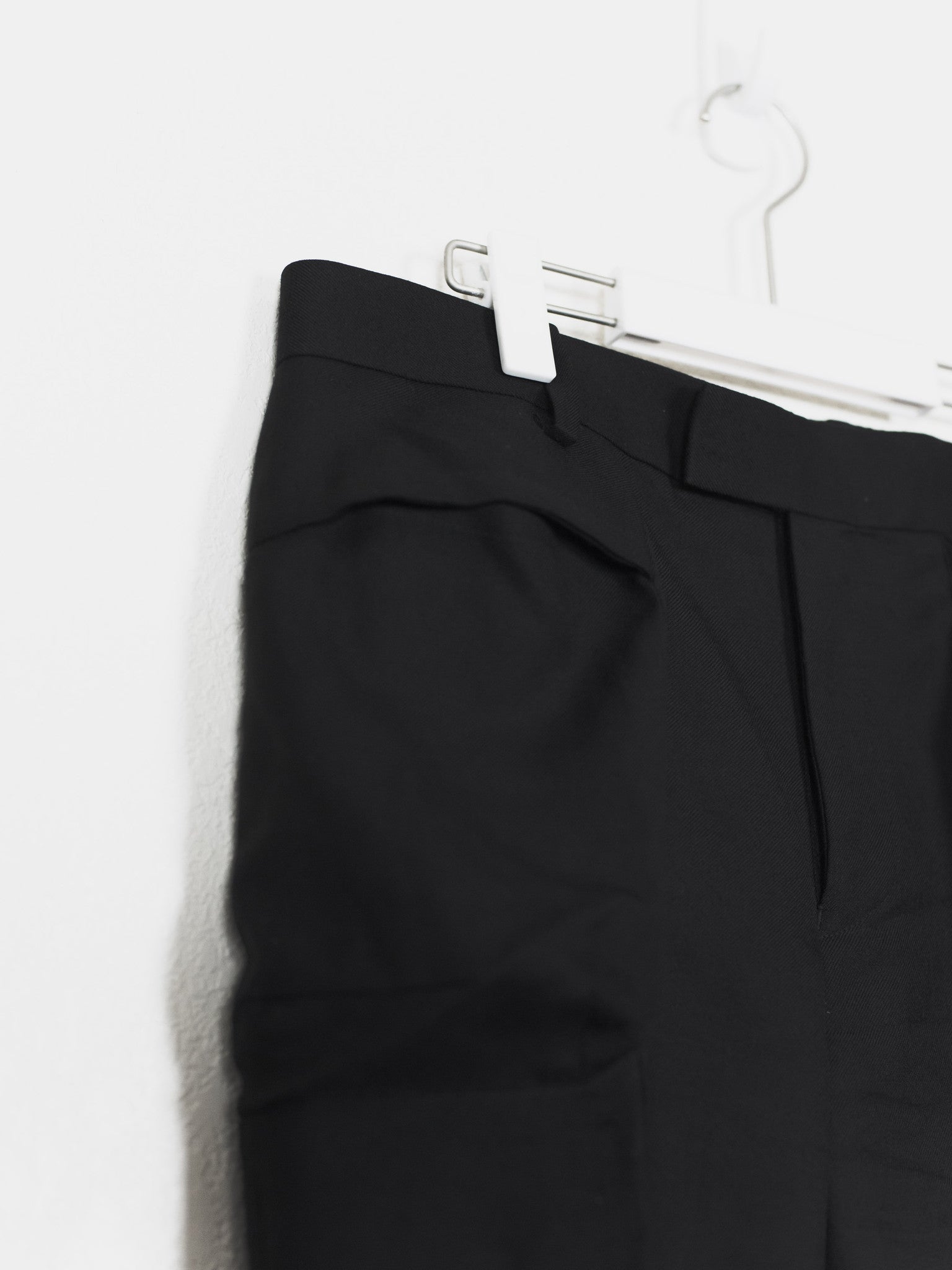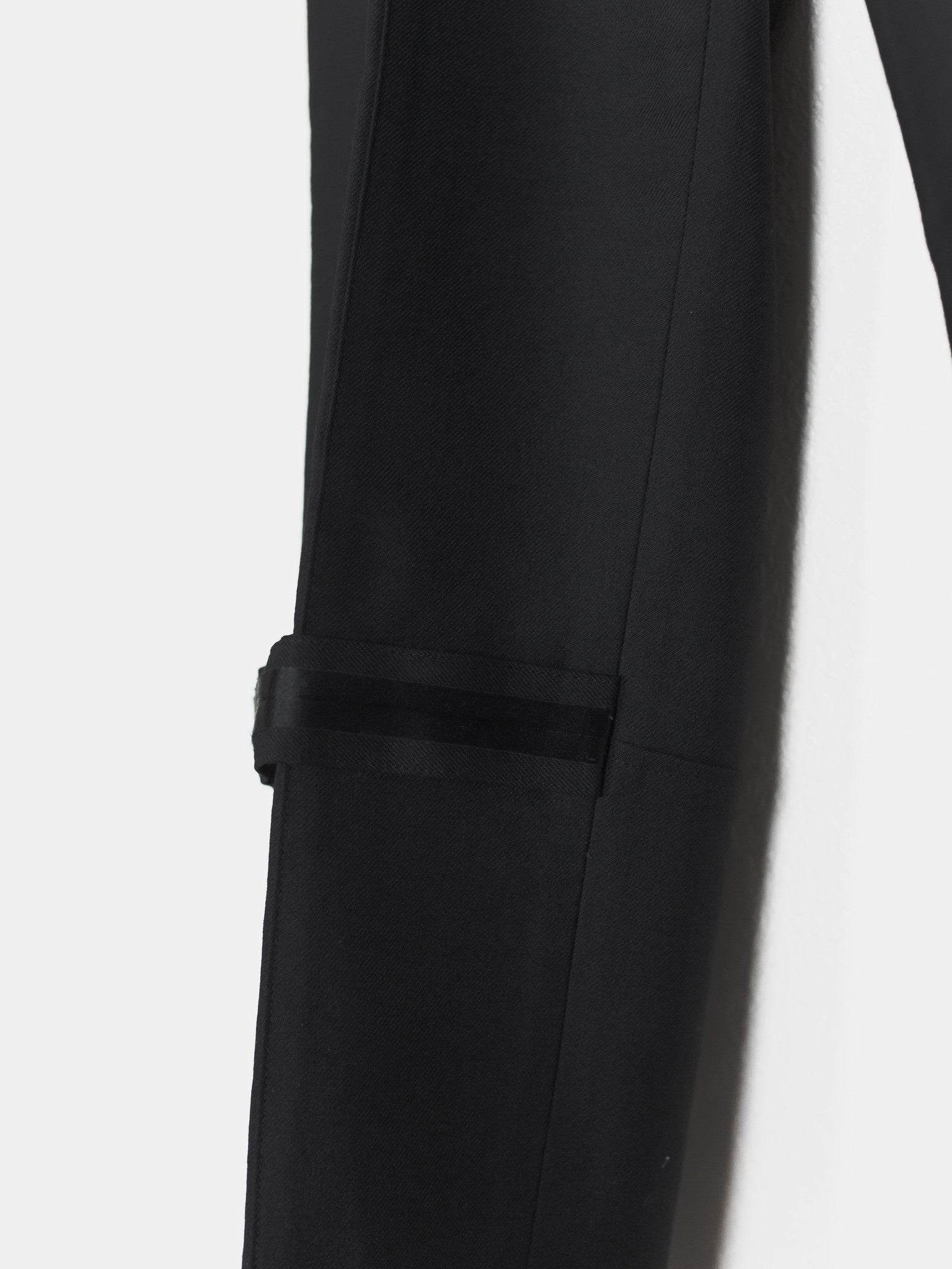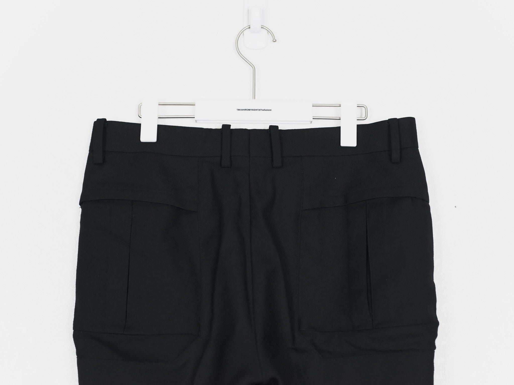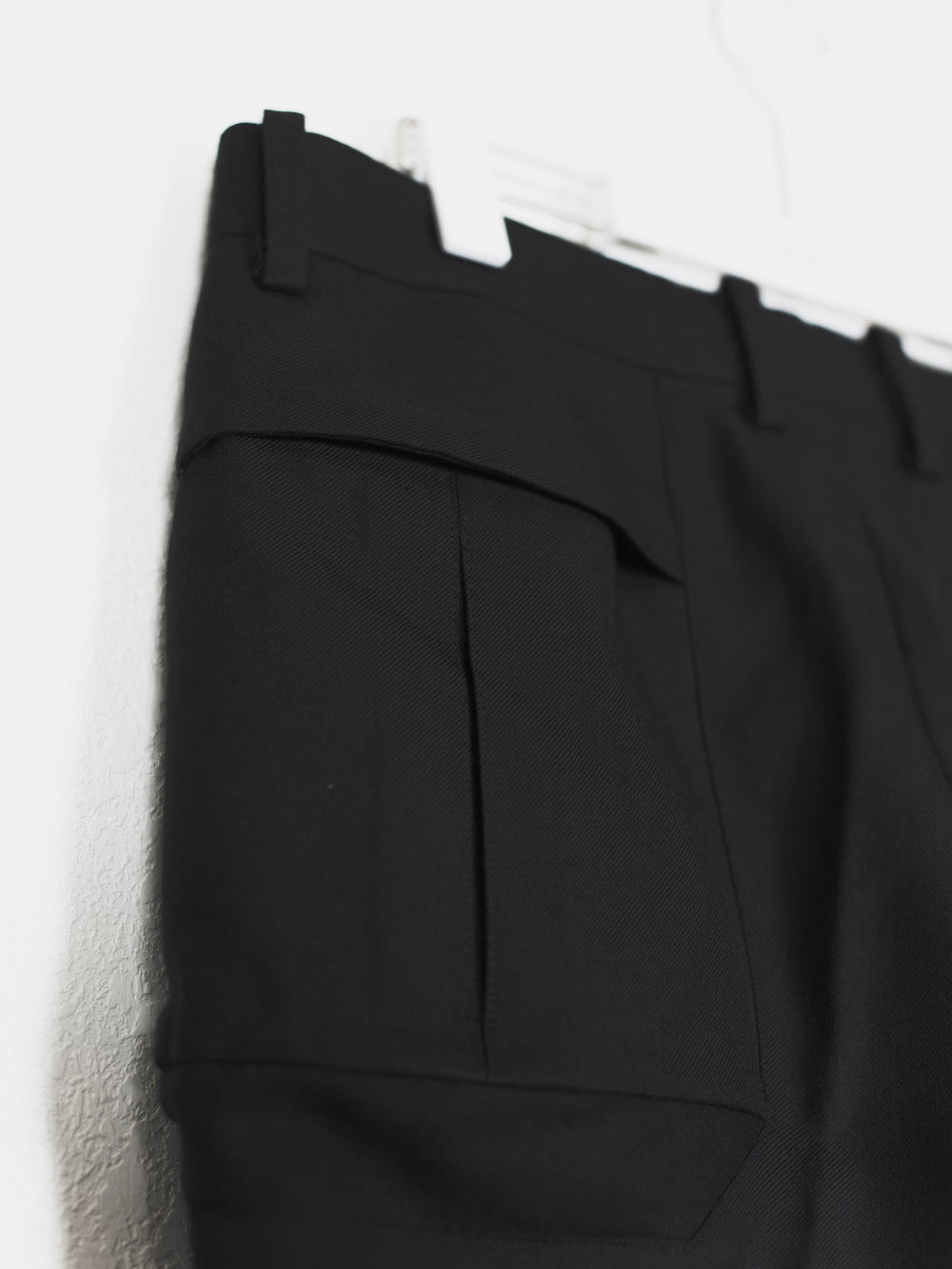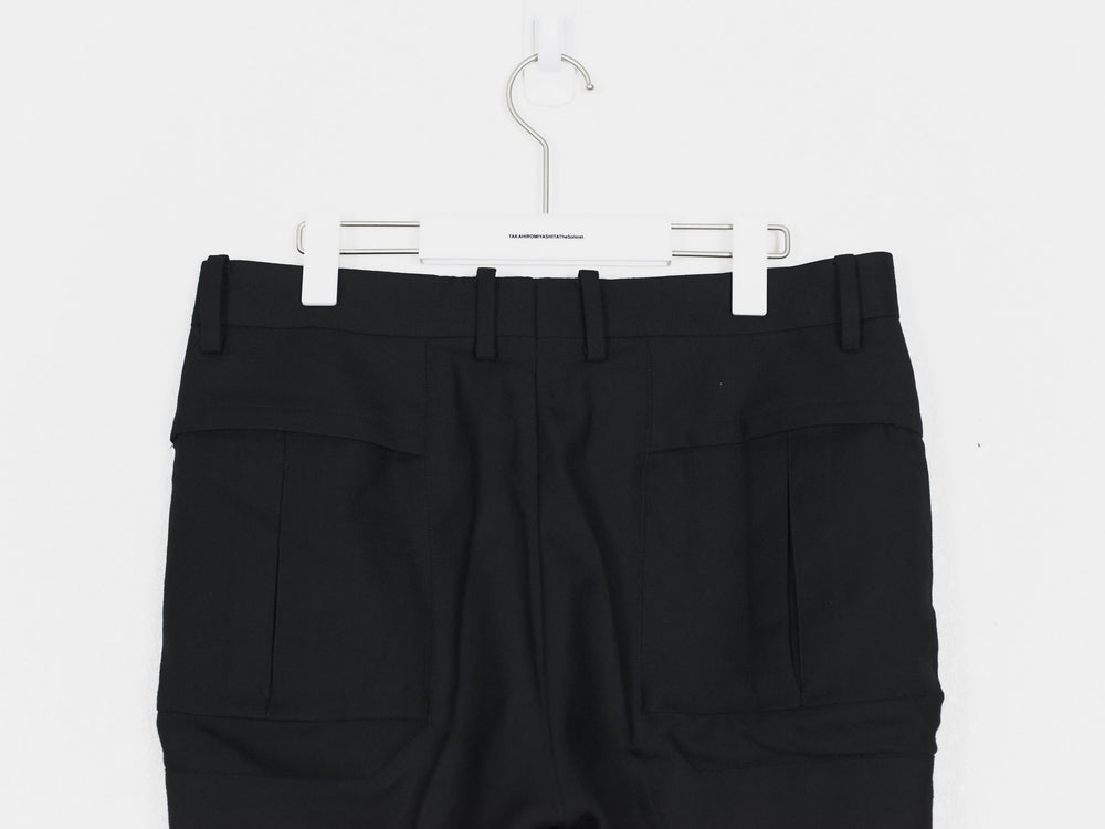 Here is a pair of wool pants from Undercover’s Fall/Winter 2009 collection, one of my favorites for the presence of technical fabrics and futuristic, functional detailing. These pants feature tech straps around the knees, ribbed hems, lightning embroidery on the left knee, and 3D waist pockets for a look that fuses the refined with the utilitarian. The result is a pair of pants with incredible versatility.