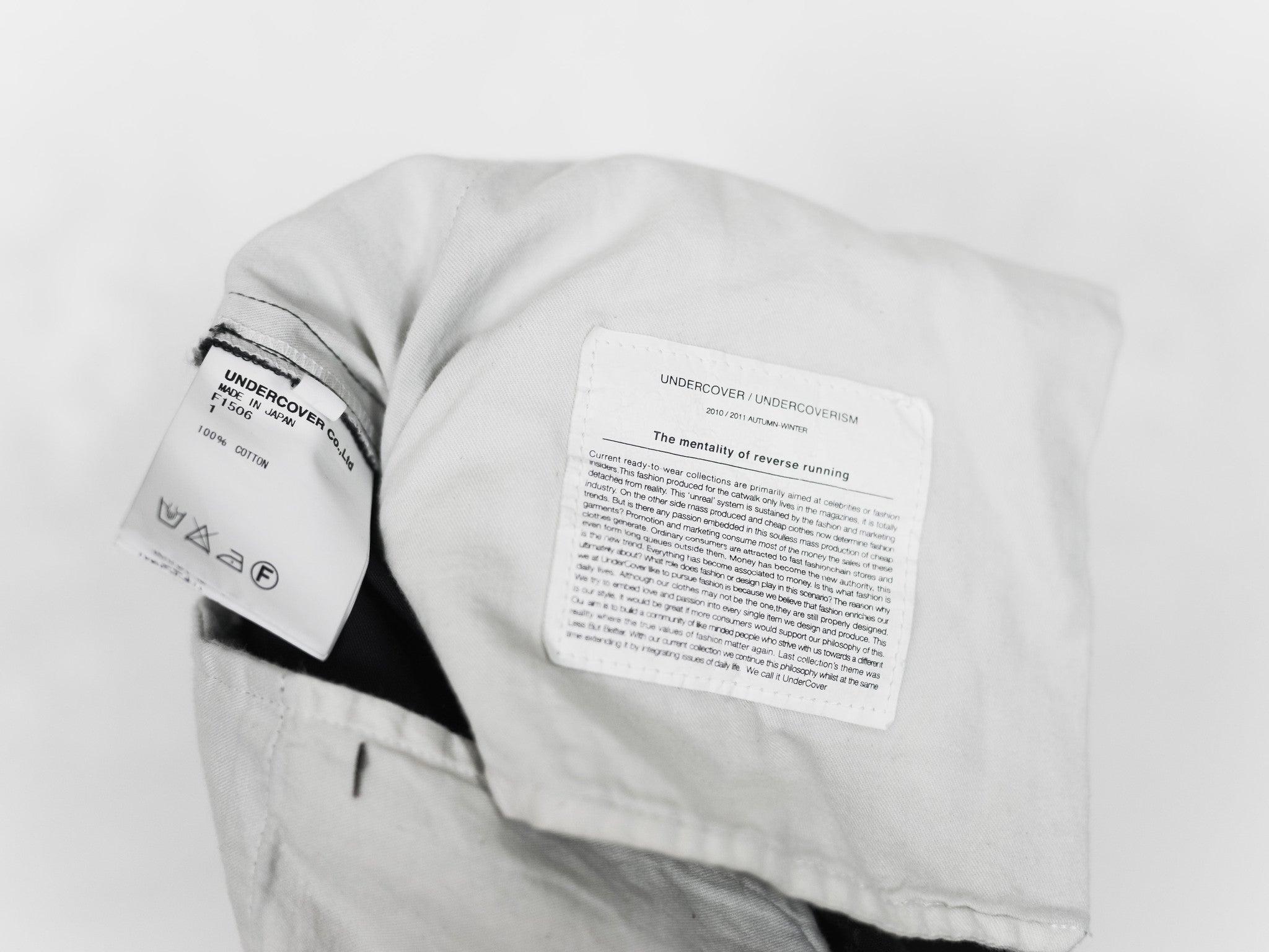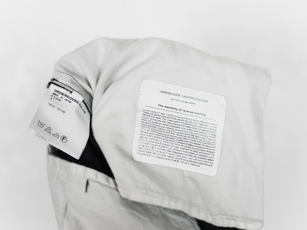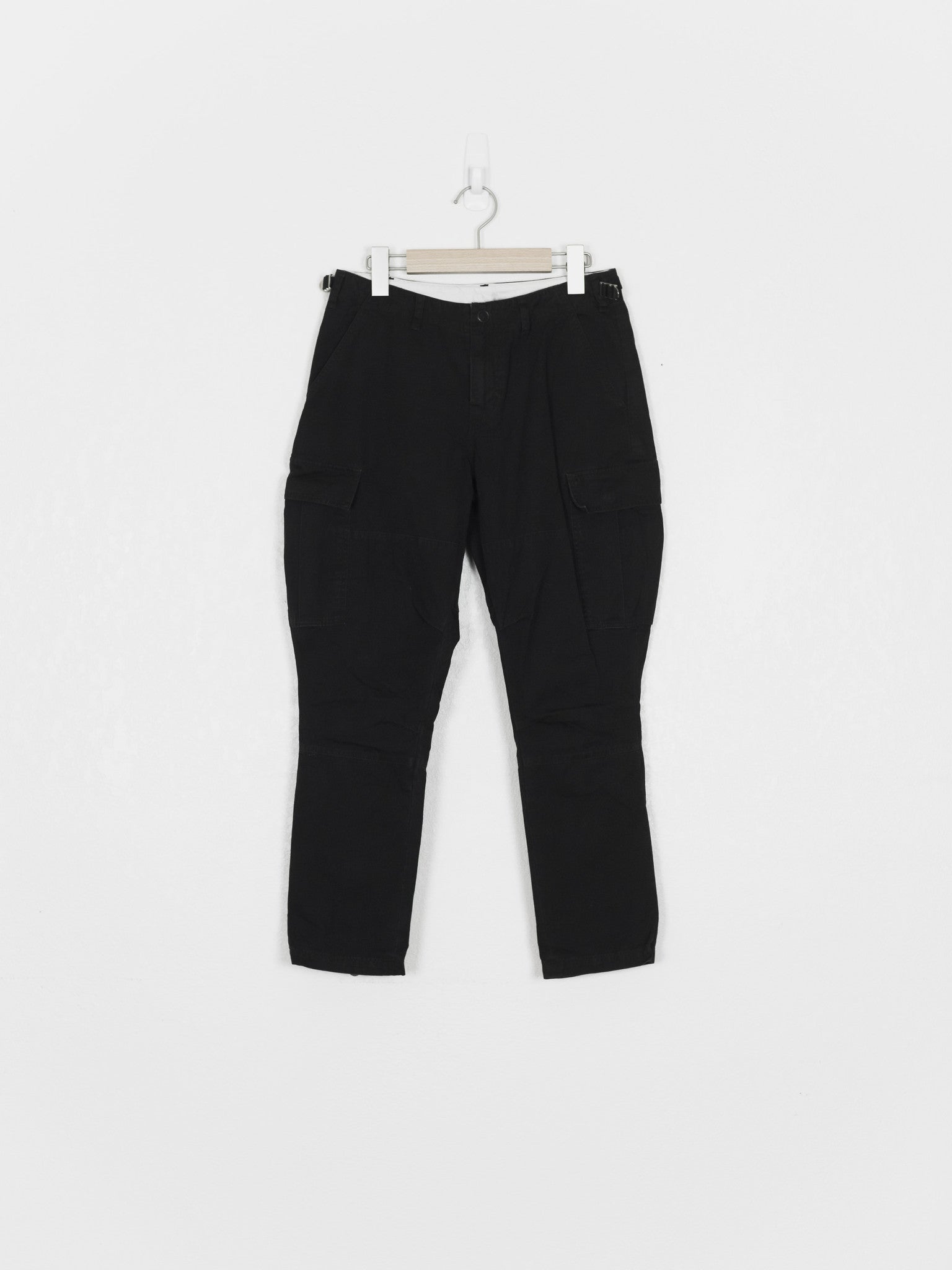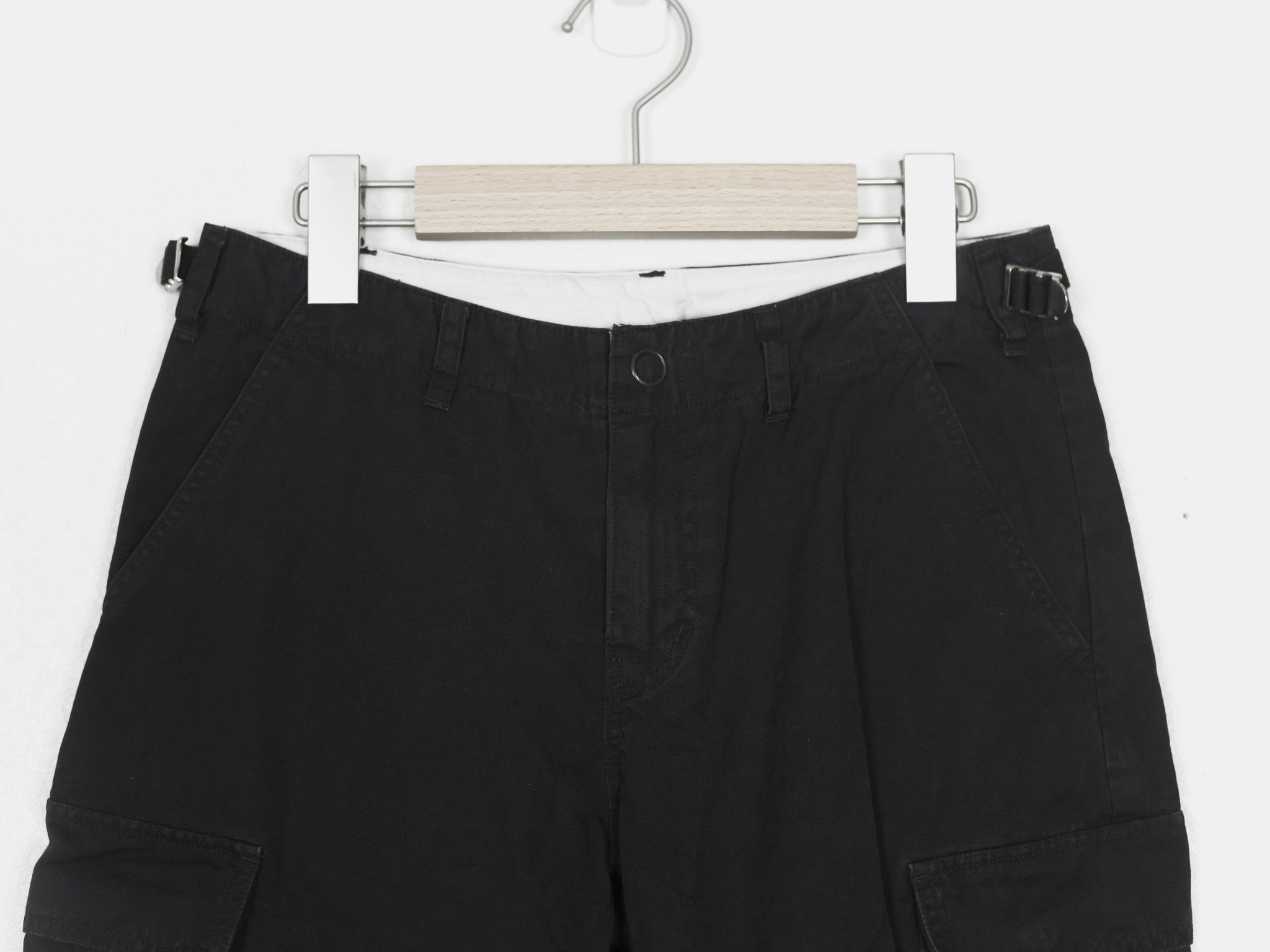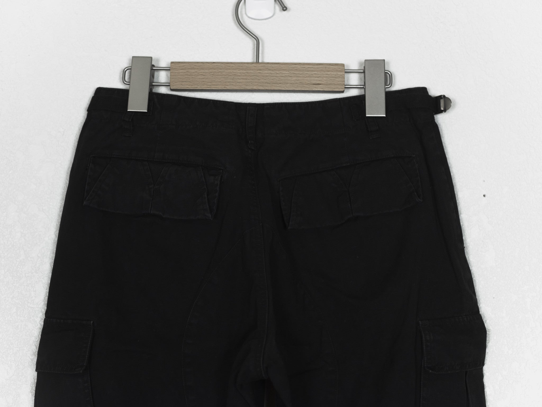 Really cool pants with a dope silhouette, loose on the thighs and tight on the calves, cut above the ankles with details including adjustable waist straps, cargo pockets, back zip hems, and the prose tag from 10AW 'Avakareta Life'. Made in Japan.
