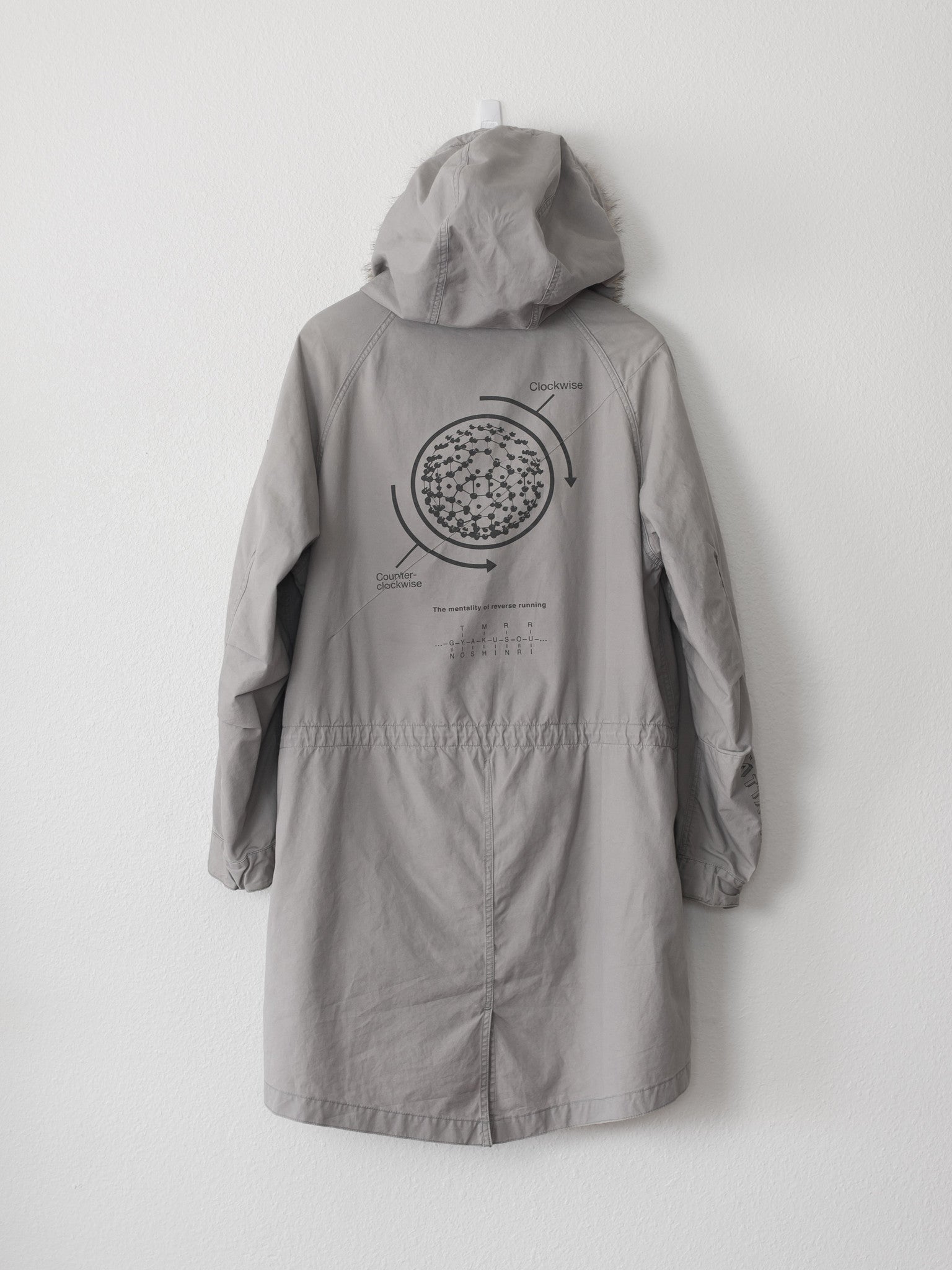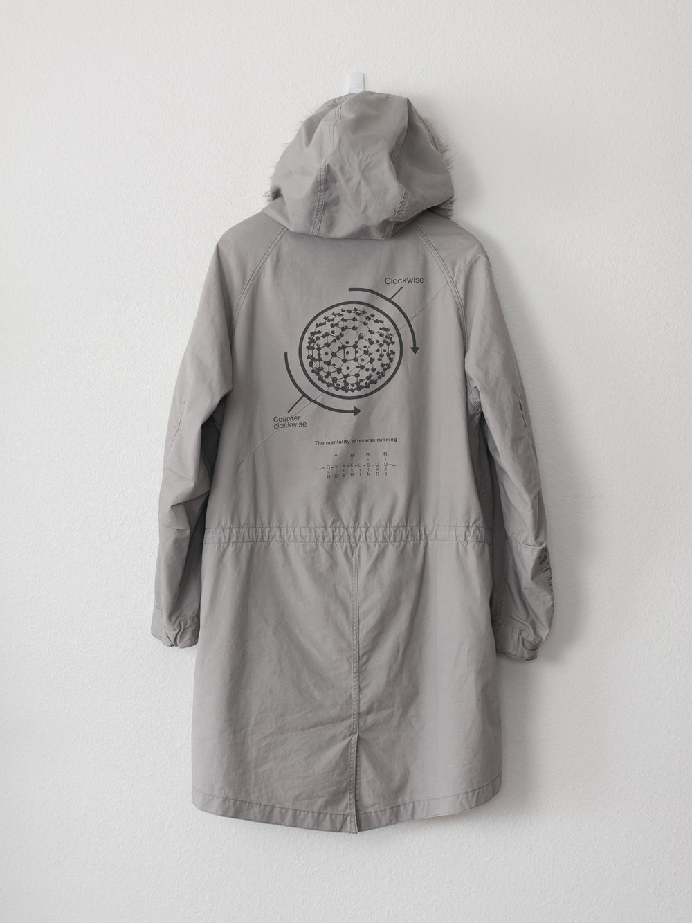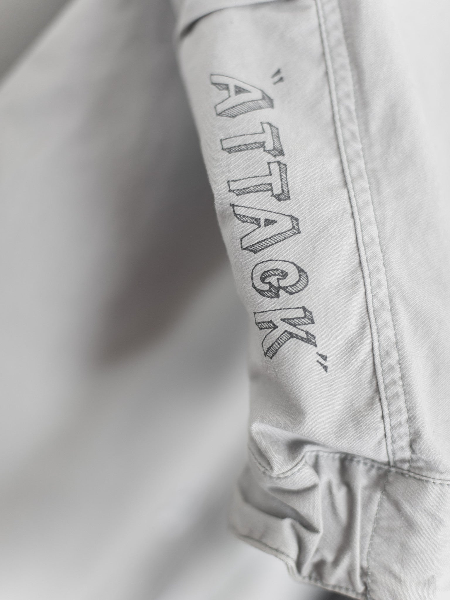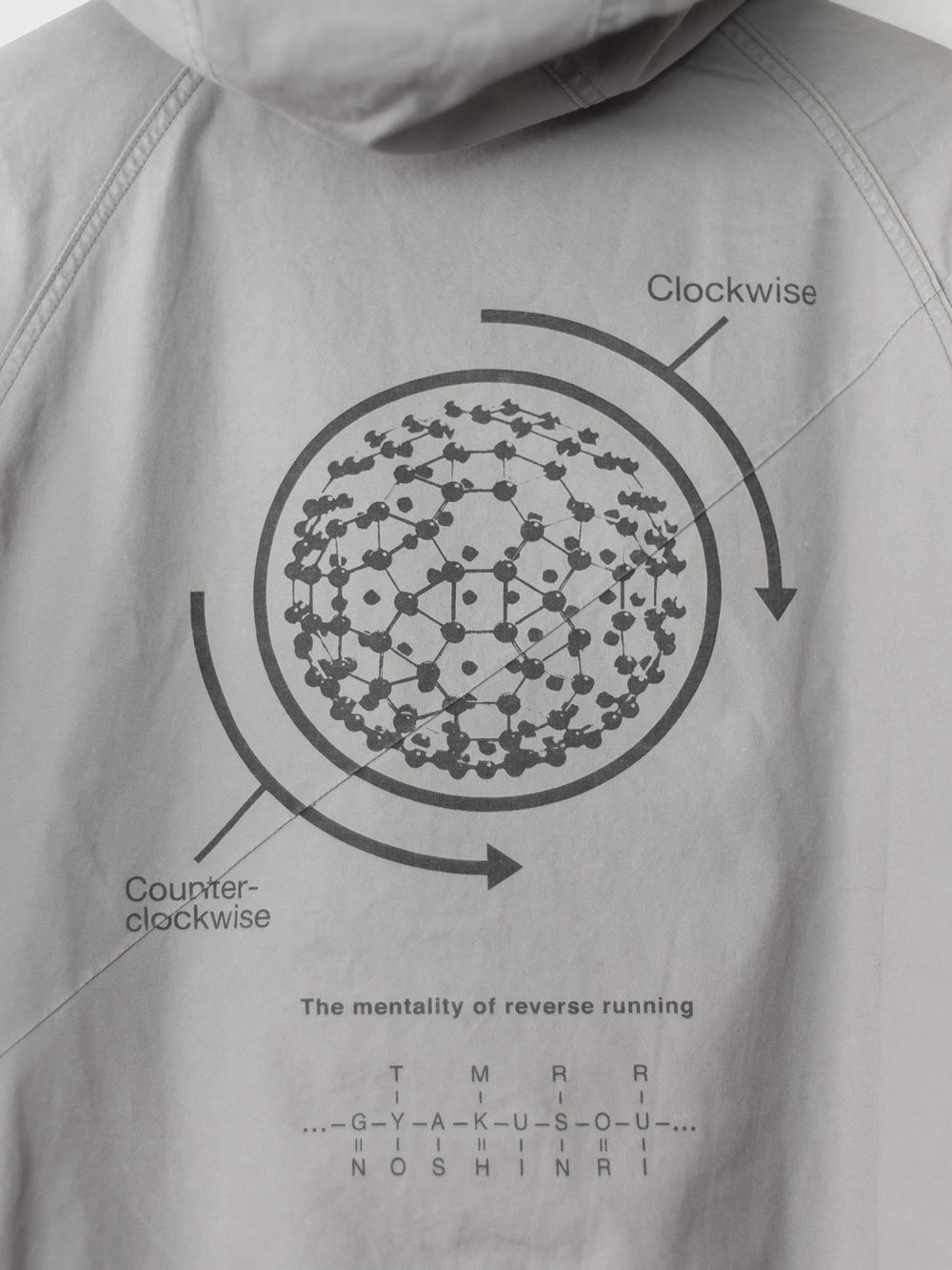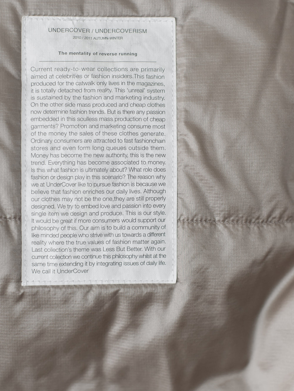 Beautiful piece and a personal staple of Jun Takahashi's, featuring all over prints referencing his concept of 'Reverse Running', with an accompanying discourse printed on the tag.