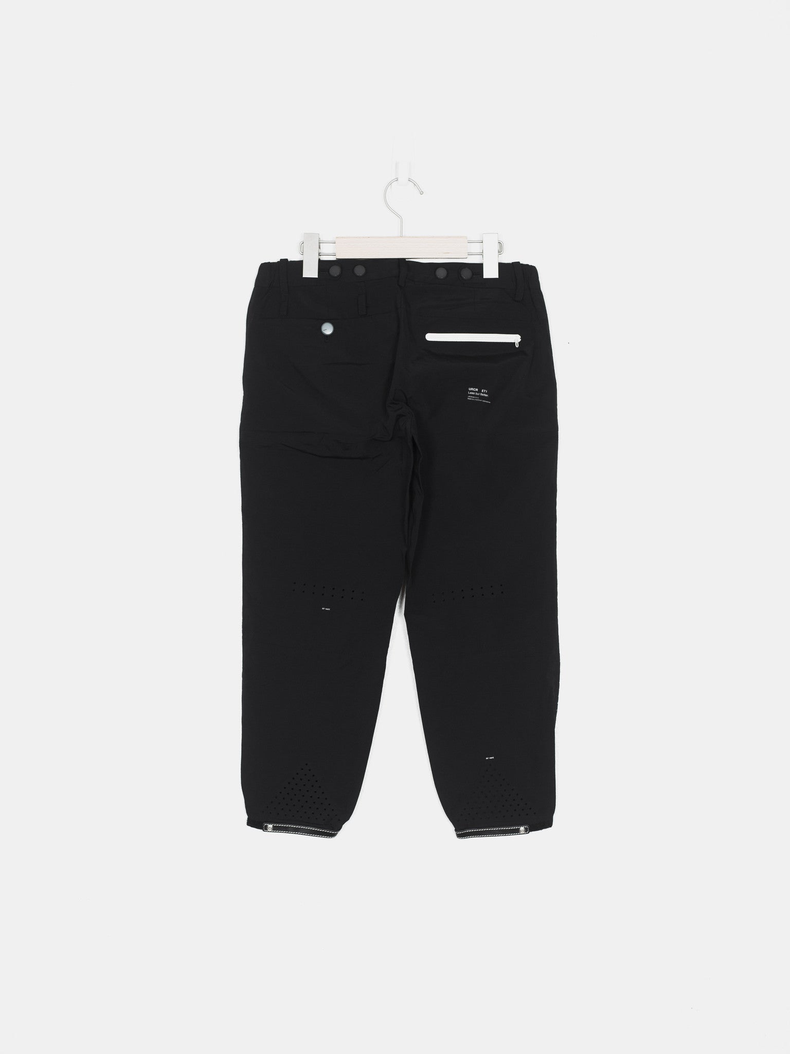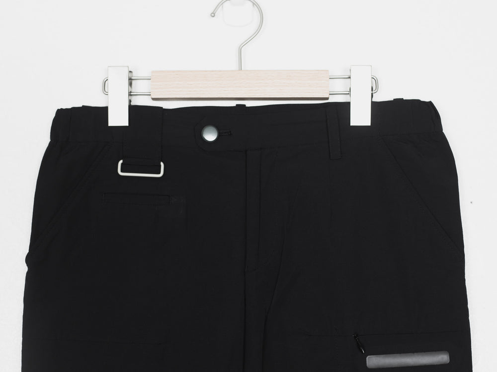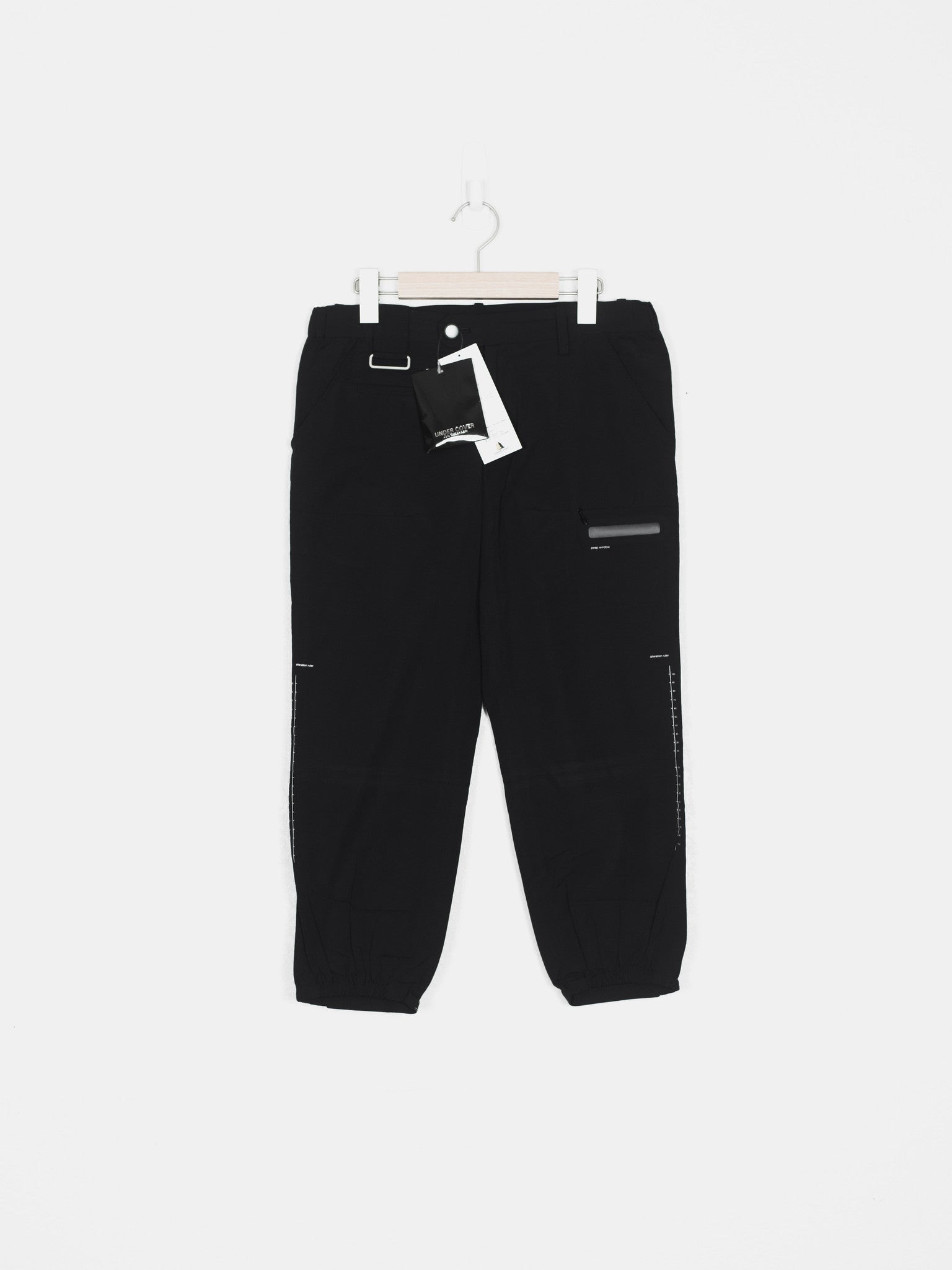 Rare cropped cargo pants from the "Less But Better" collection in new condition. Inspired by Dieter Rams' designs, these pants feature many details such as 'dial' buttons, labels, zip cargo pockets, leather velcro strap & elastic adjustable hems, and an adjustable waist. Made in Japan.