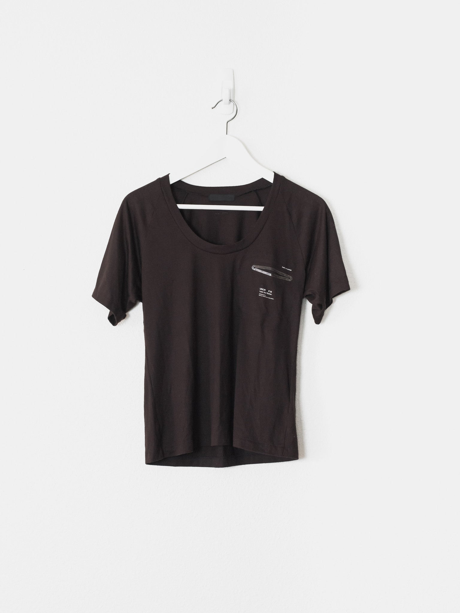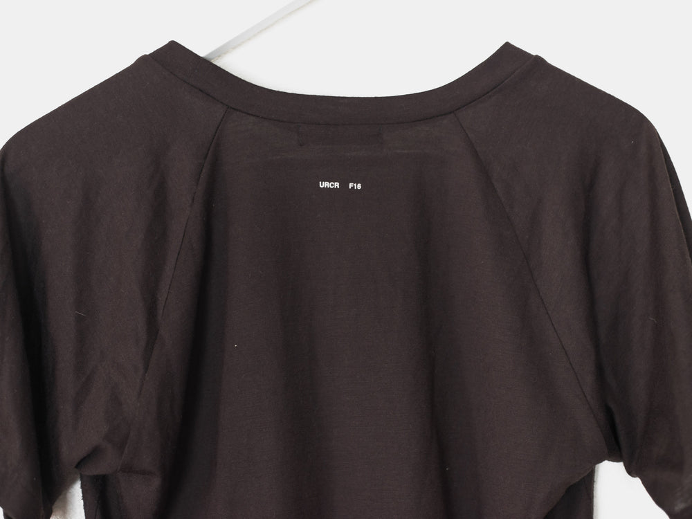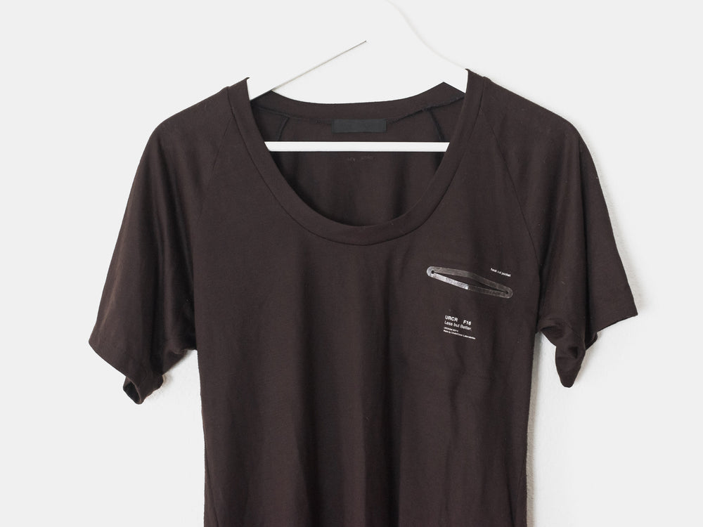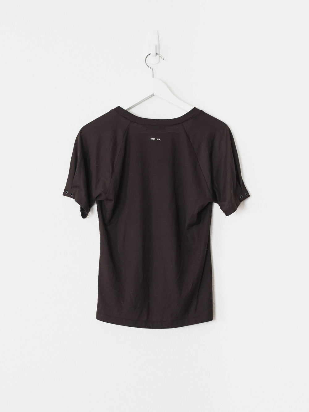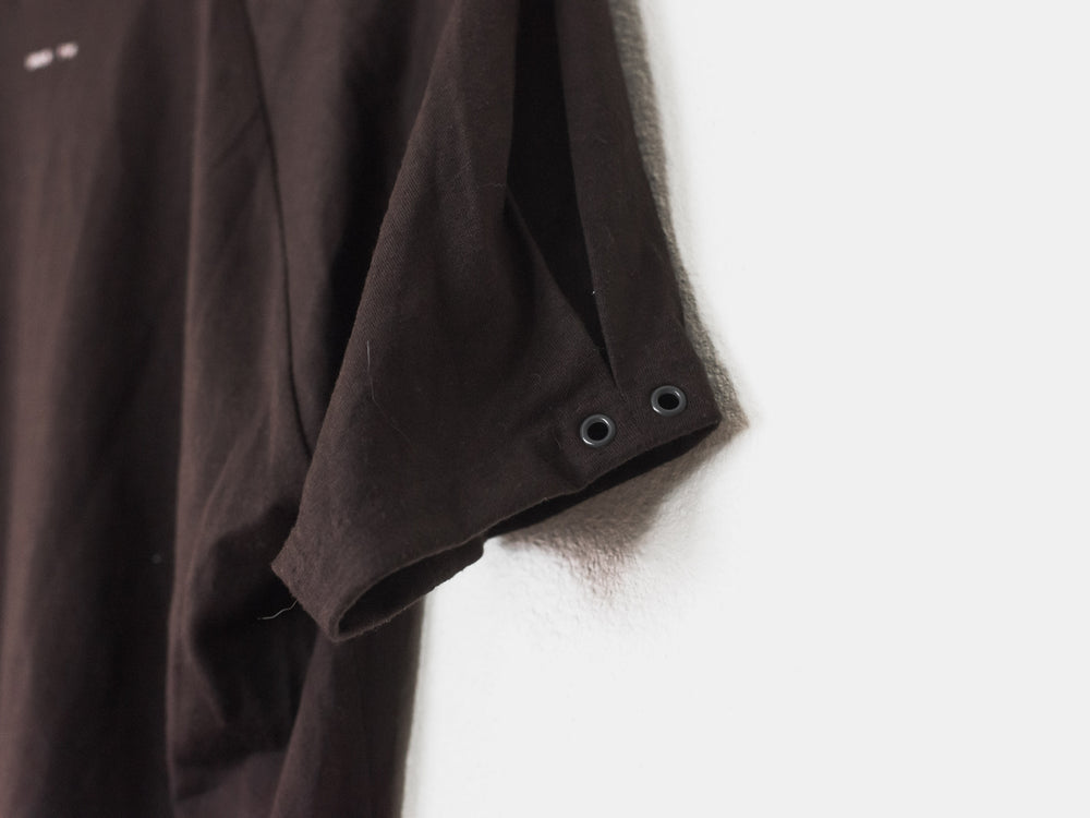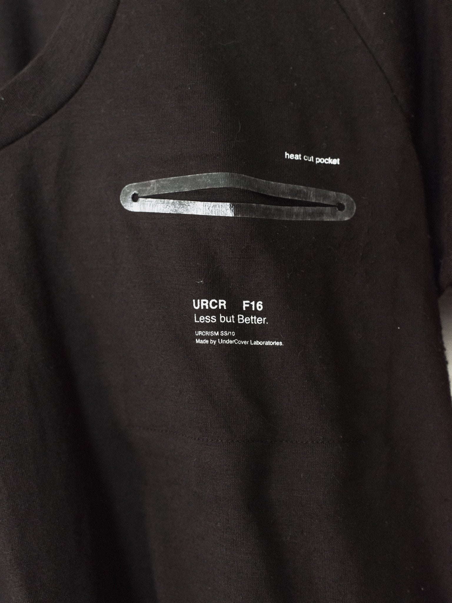 Rare tee from the "Less But Better" collection. Inspired by Dieter Rams' designs, this dark coffee tee features many details such as the labeled heat-cut pocket, raglan shoulders, and pleated sleeves with vent holes. 8.5/10 condition, slight pilling. Made in Japan.
