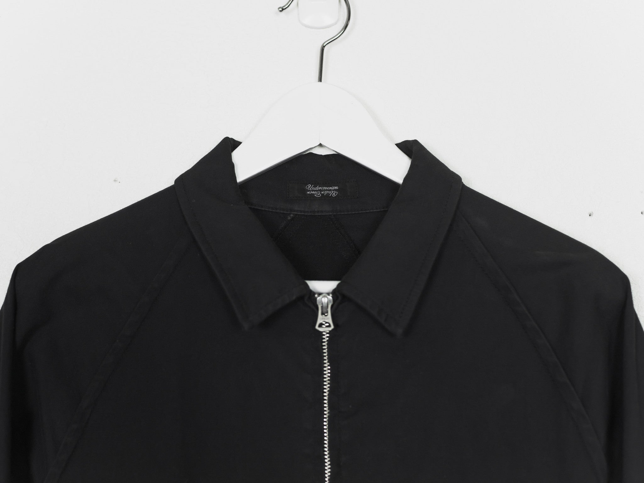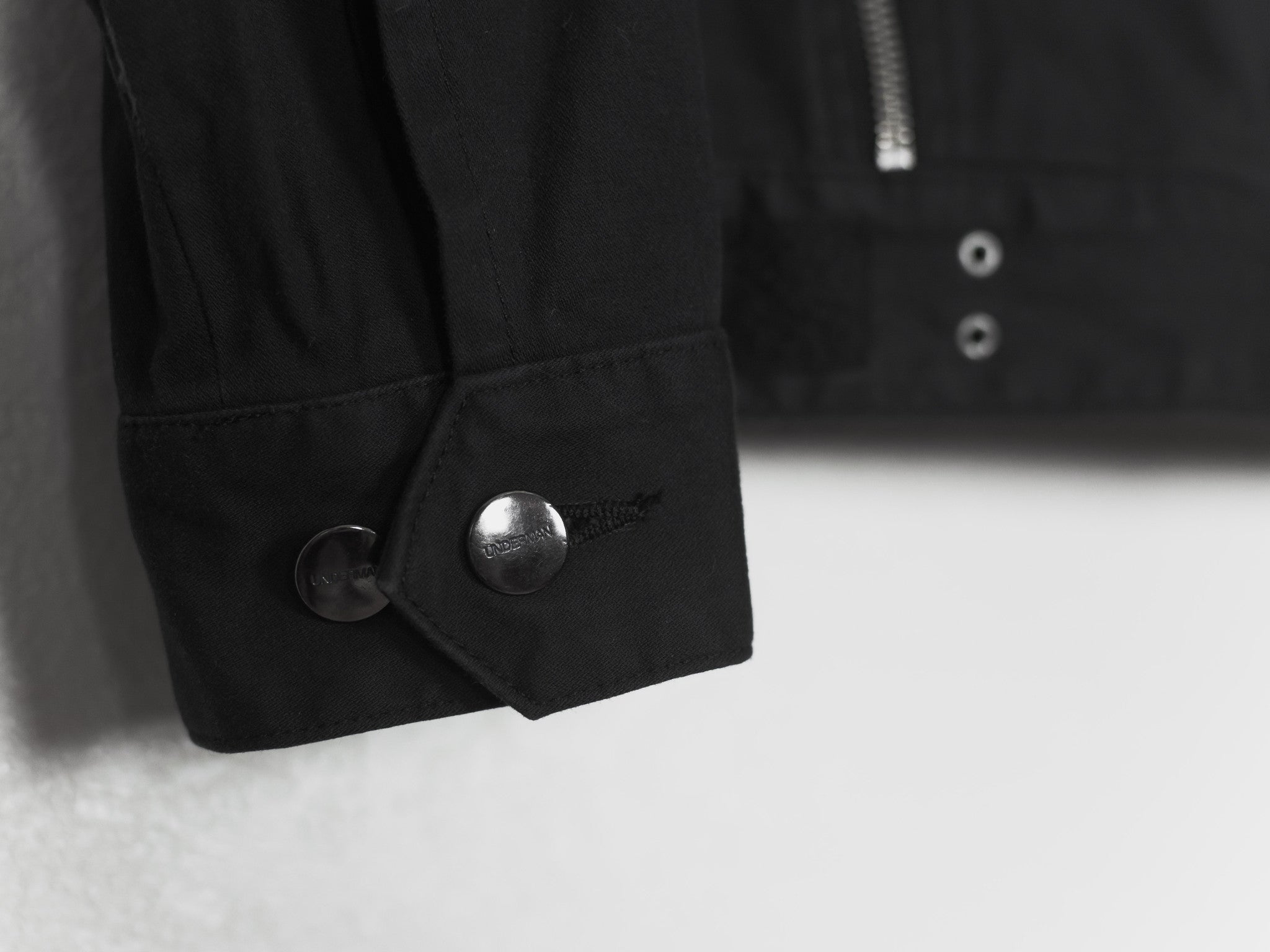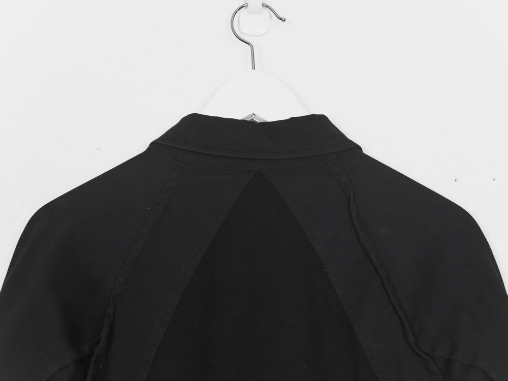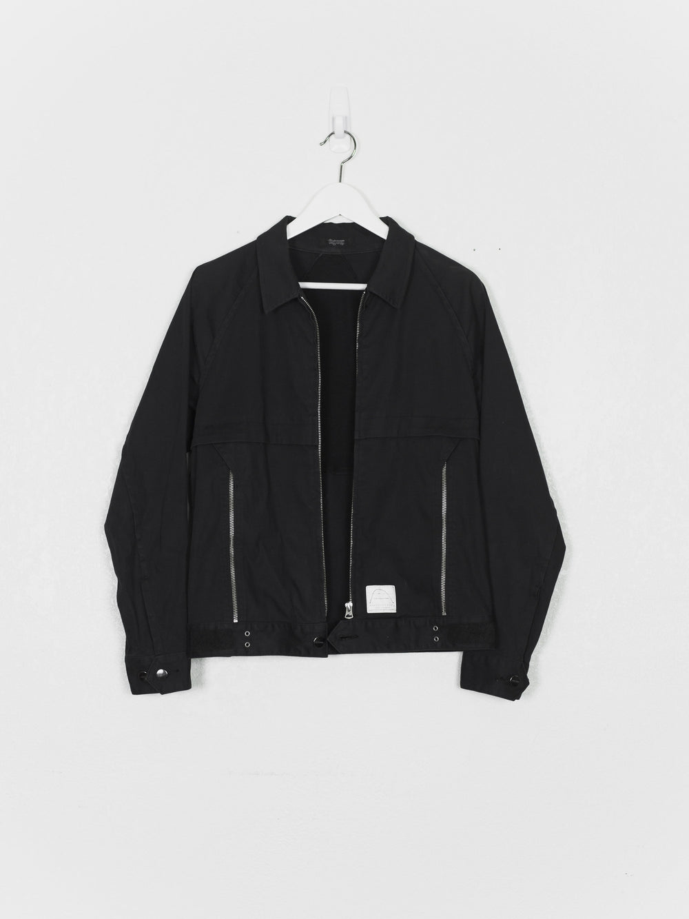 Dope lightweight cotton jacket from 'Underman' loaded with details such as a multi paneled construction, raglan shoulders, contrasting back triangular jersey knit panel, large zipper pockets, small Underman patch, rear velcro waist straps, and Underman etched buttons. Made in Japan.