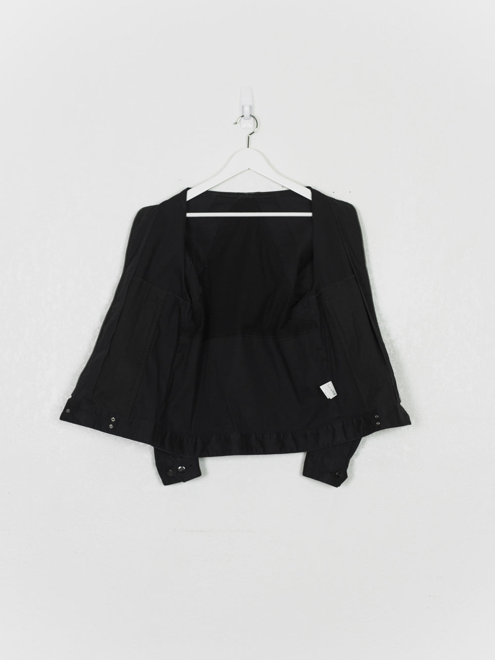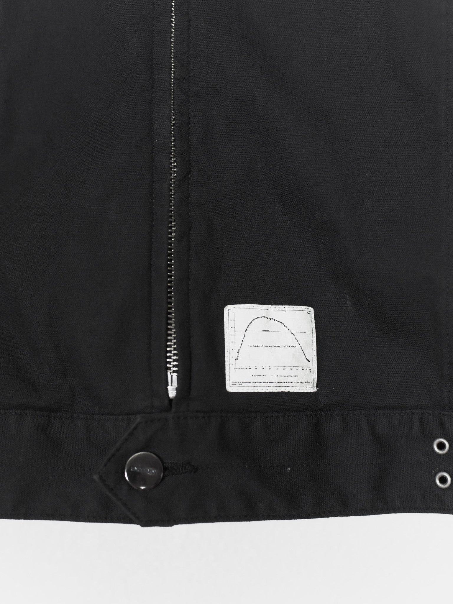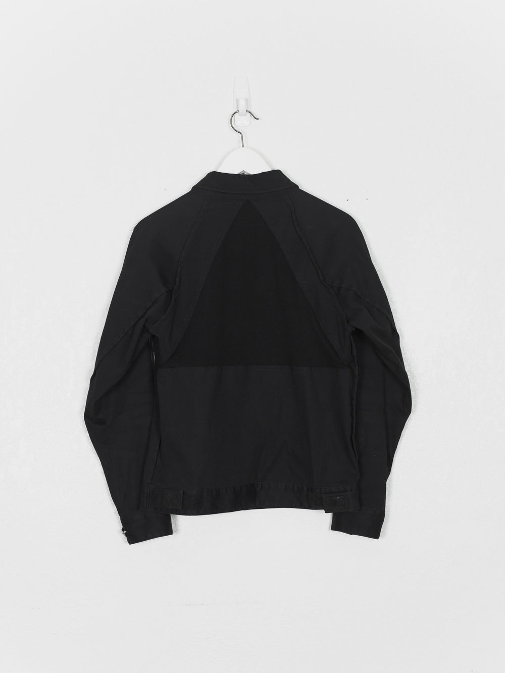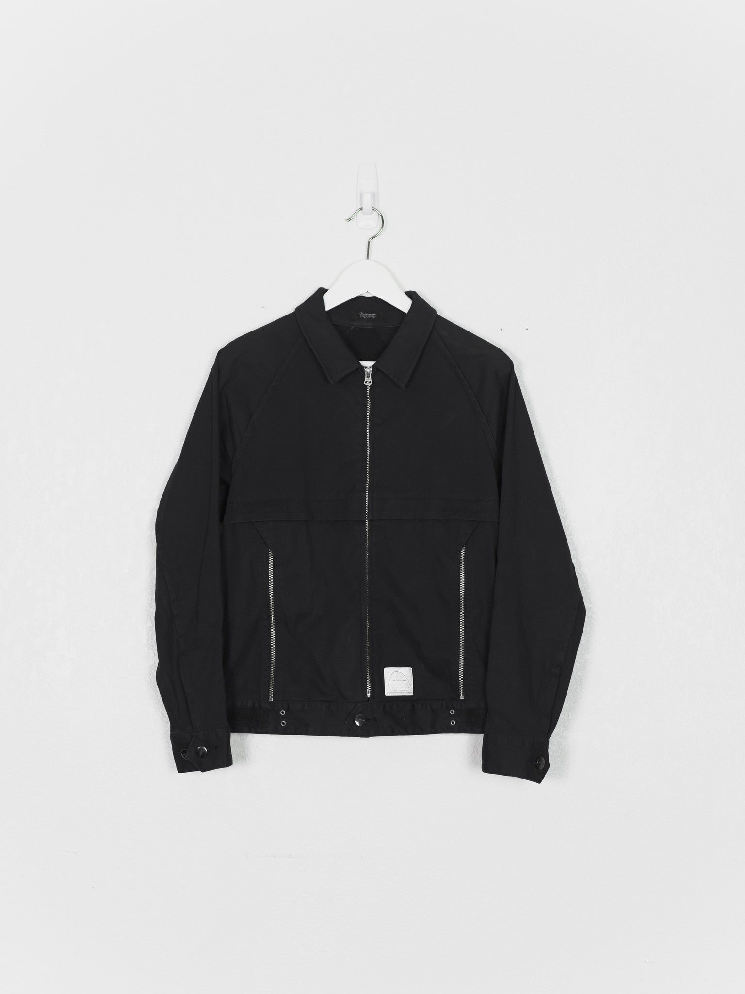 Dope lightweight cotton jacket from 'Underman' loaded with details such as a multi paneled construction, raglan shoulders, contrasting back triangular jersey knit panel, large zipper pockets, small Underman patch, rear velcro waist straps, and Underman etched buttons. Made in Japan.