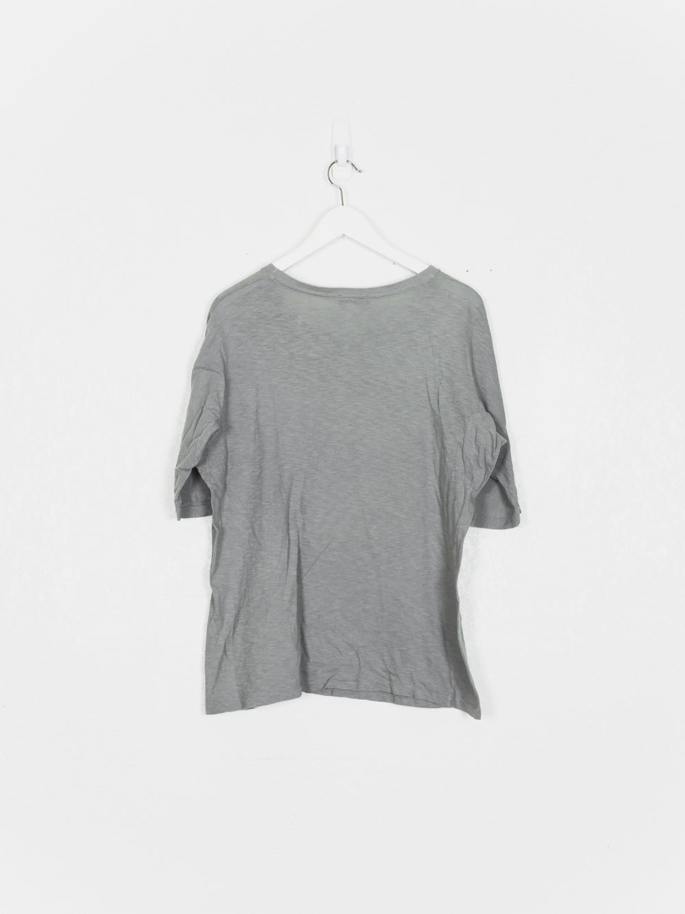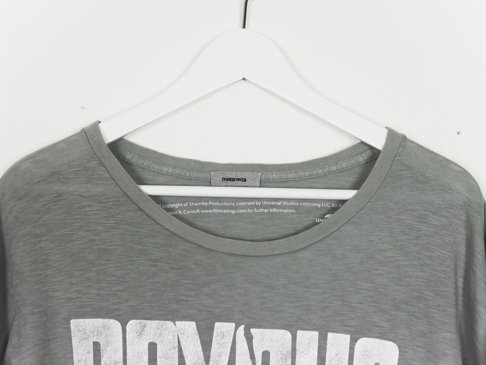 Rare mid length raglan sleeve big tee featuring the print from Alfred Hitchcock's "Psycho" film, a personal favorite of Jun's. The raglan and mid length sleeve cut gives a wonderful oversized drape. (Jun's wearing the regular cut in the fit photos). Made in Japan.