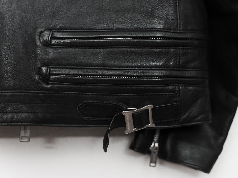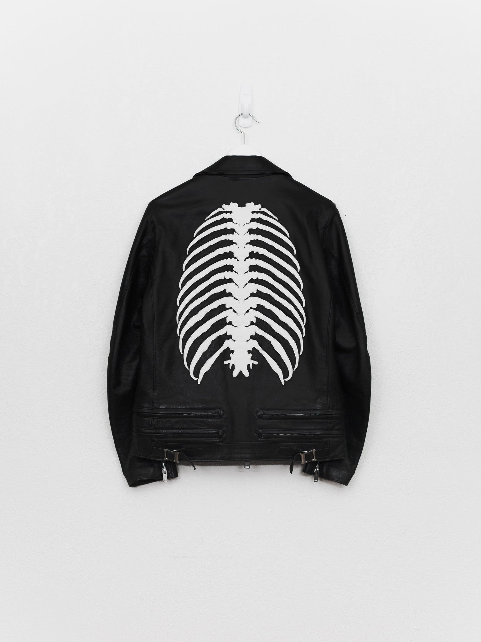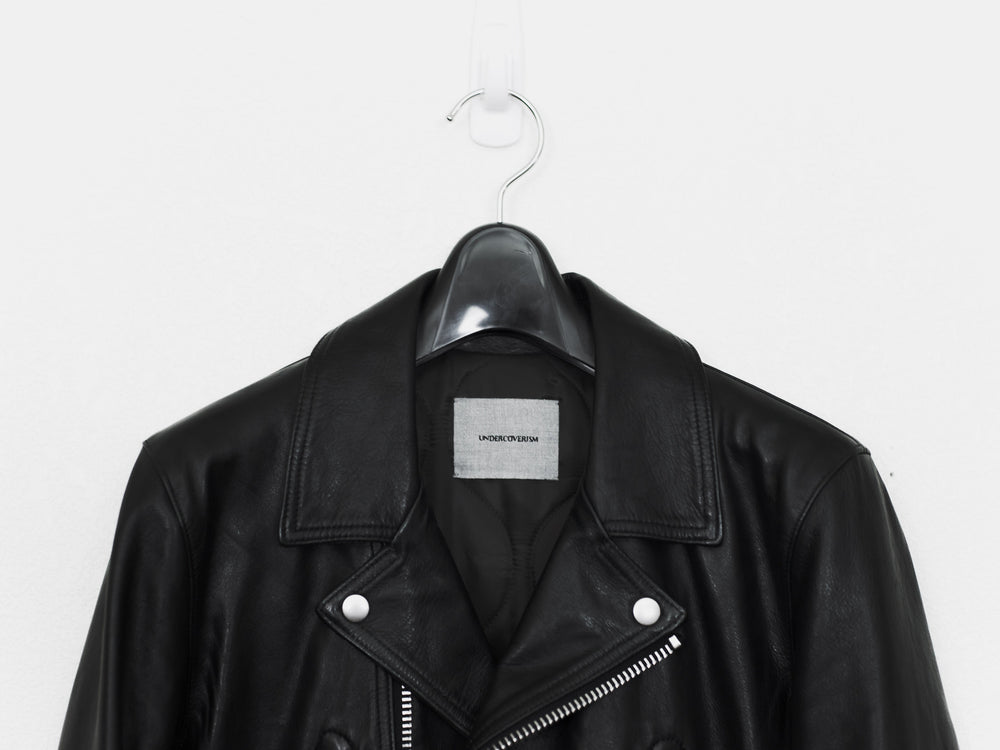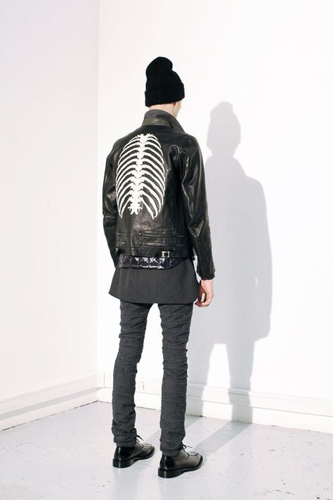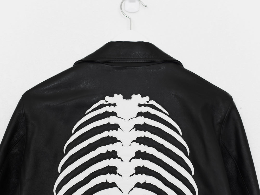 Absolutely amazing and impossible to find piece from Undercover's 13AW 'Anatomicouture' featuring an intricate ribcage design of stitched leather. Composed of the most supple calf I've ever handled and fully cupro lined with the perfect amount of light padding, I consider this the best rider by Undercover, after owning almost every other UC leather.
