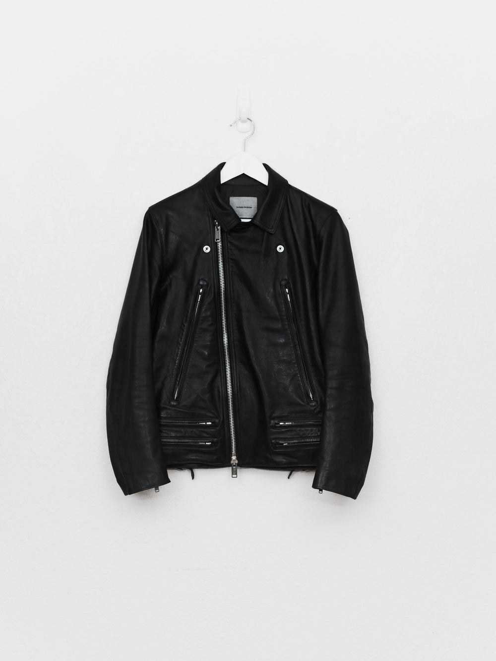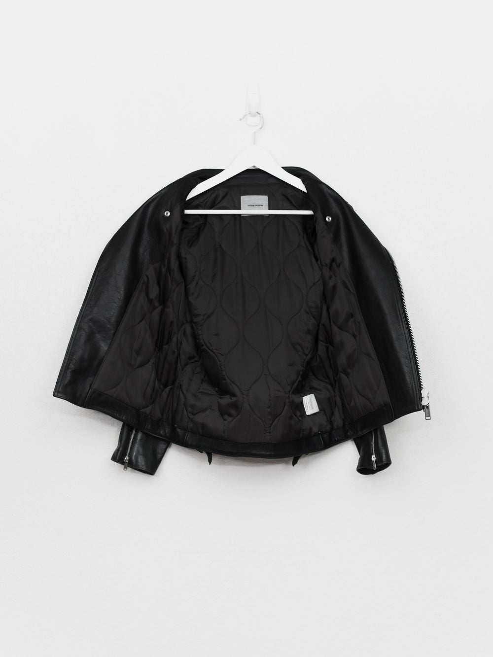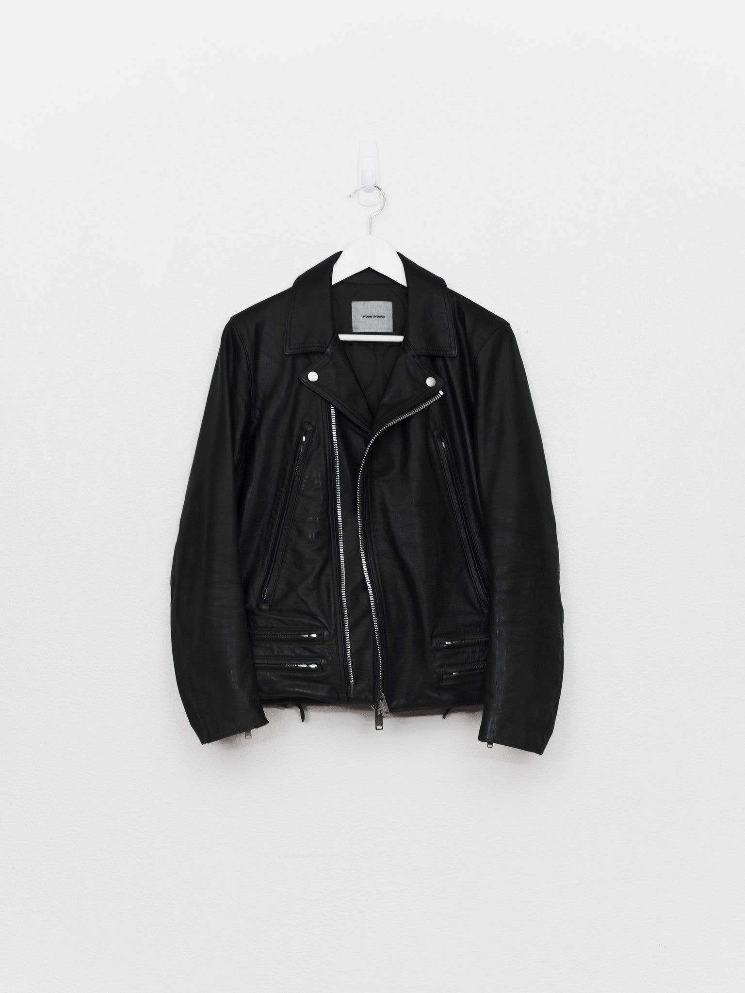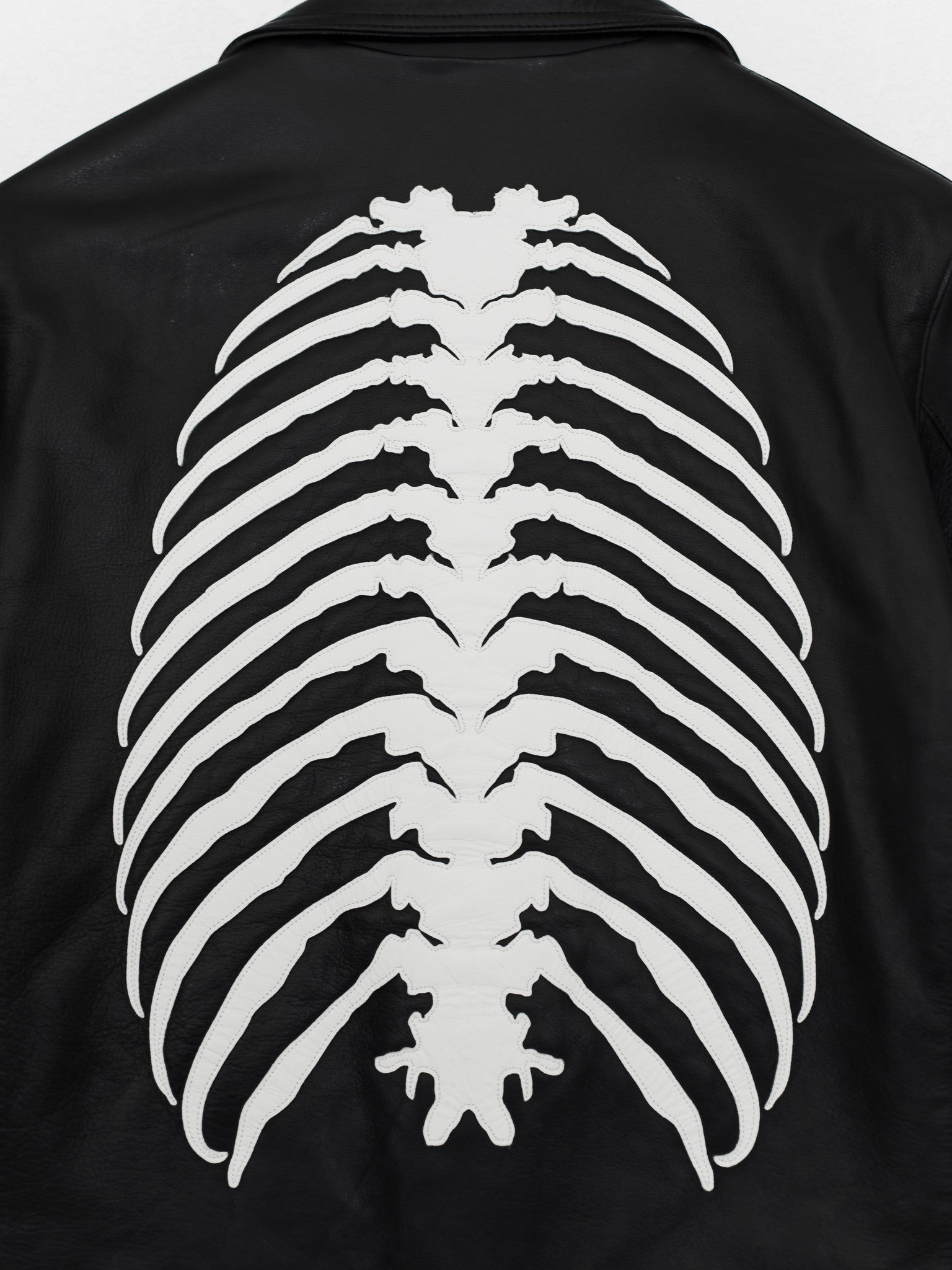 Absolutely amazing and impossible to find piece from Undercover's 13AW 'Anatomicouture' featuring an intricate ribcage design of stitched leather. Composed of the most supple calf I've ever handled and fully cupro lined with the perfect amount of light padding, I consider this the best rider by Undercover, after owning almost every other UC leather.
