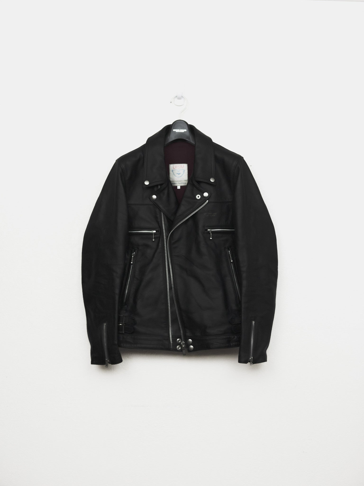 One of the most coveted iterations of the famous WMNNC rider in the most desirable size. The 08AW one was arguably unsurpassed until this came along in 15SS, replicating or surpassing every aspect of the original. Japanese buyers pay well over the retail price of ¥140,000+tax for the sz2. This has the thickest and toughest cowhide of them all, with all the right details, including a breathable cotton lined body and cupro lined sleeves, plush cotton lined vertical slant hand pockets, and two horizontal pockets. Includes shop hanger. Made in Japan.