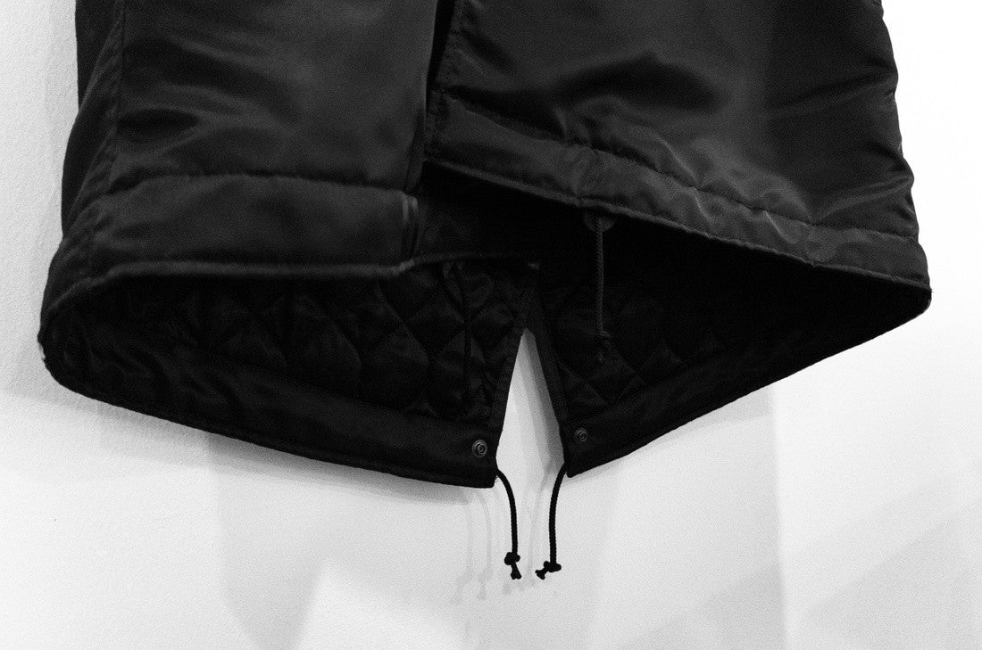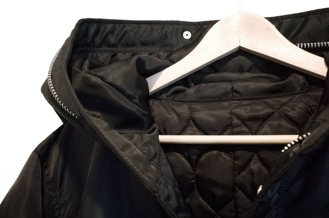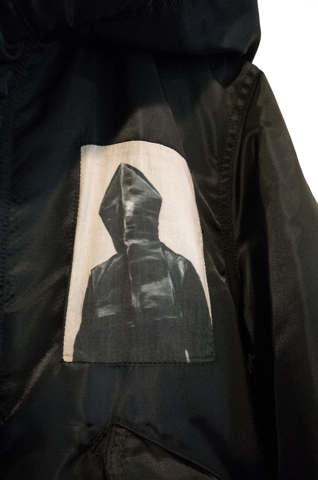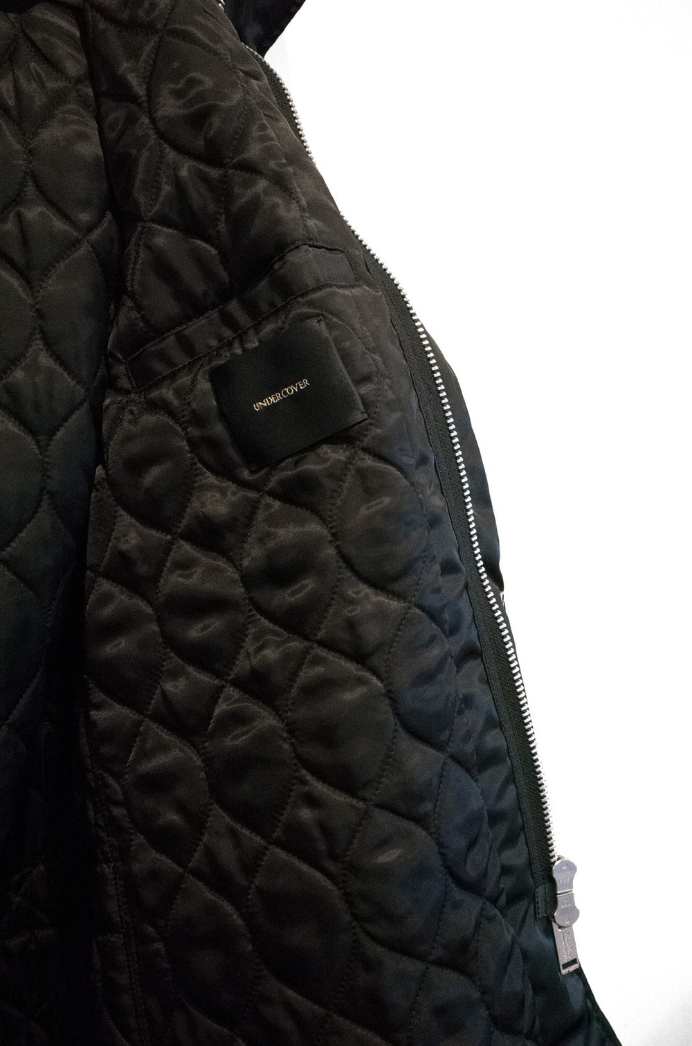 Standout piece from Undercover's current-season Autumn/Winter 2016 'Instant Calm' collection. Huge padded fishtail parka with quilted lining and the signature whole-back Borremans painting print. Also cut with an articulated hood that zips all the way and, when closed, is angularly structured to resemble the figure that is painted on the back. Finished with substantial Undercover-branded YKK double zip, press stud closure on the placket and pockets, and fishtail drawstrings at the waist and hem.