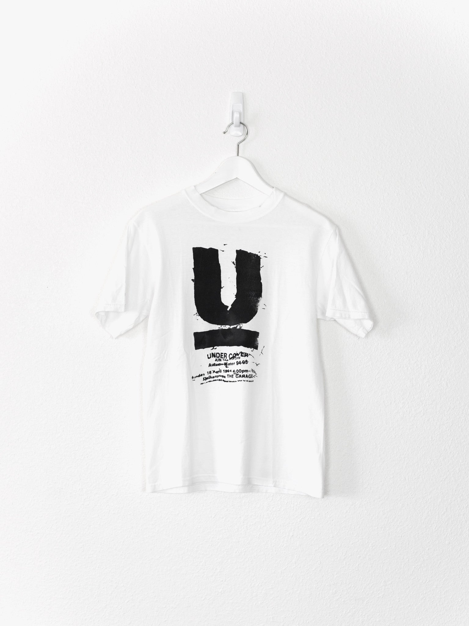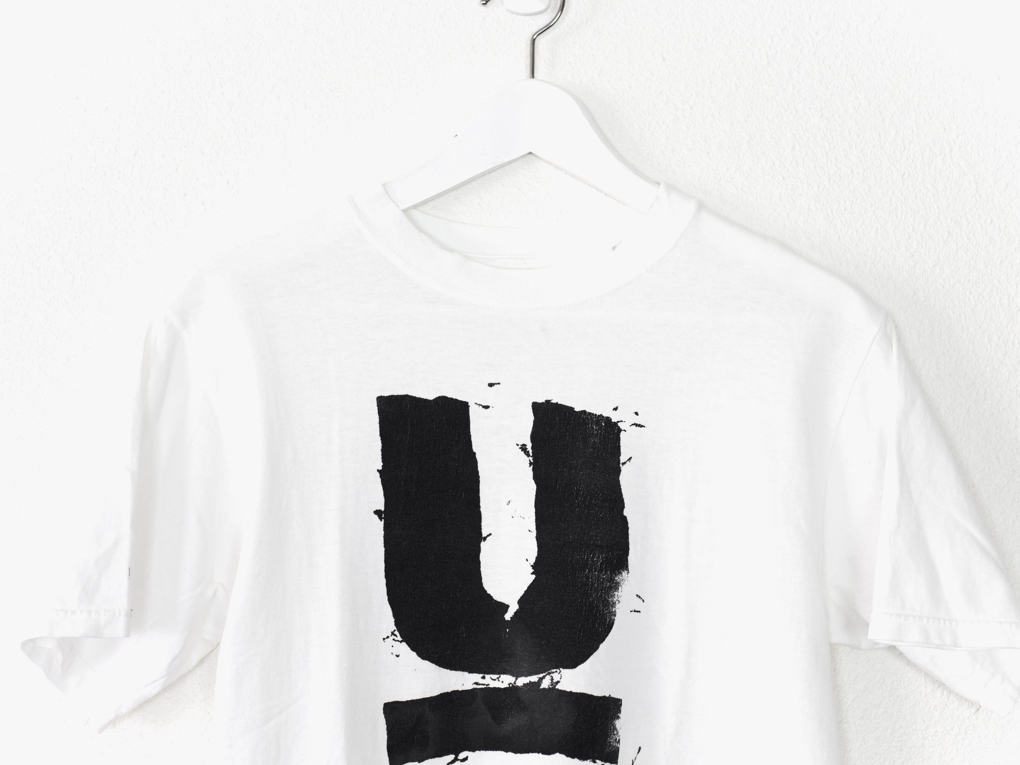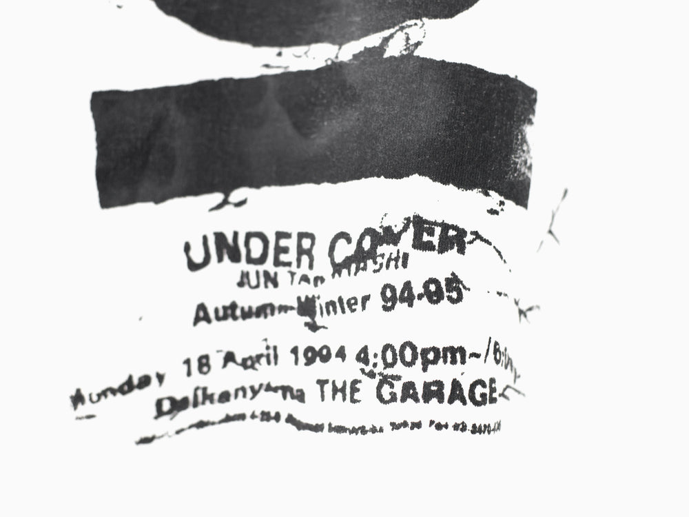 Absolutely impossible to find tee from Jun's first ever collection, Autumn Winter 1994. Screen printed by hand onto a hefty loopwheeled tee and in amazing flawless condition, featured in his TGraphics and Labyrinth exhibit in Tokyo. This particular tee was printed for Jun and his staff/friends at the time.