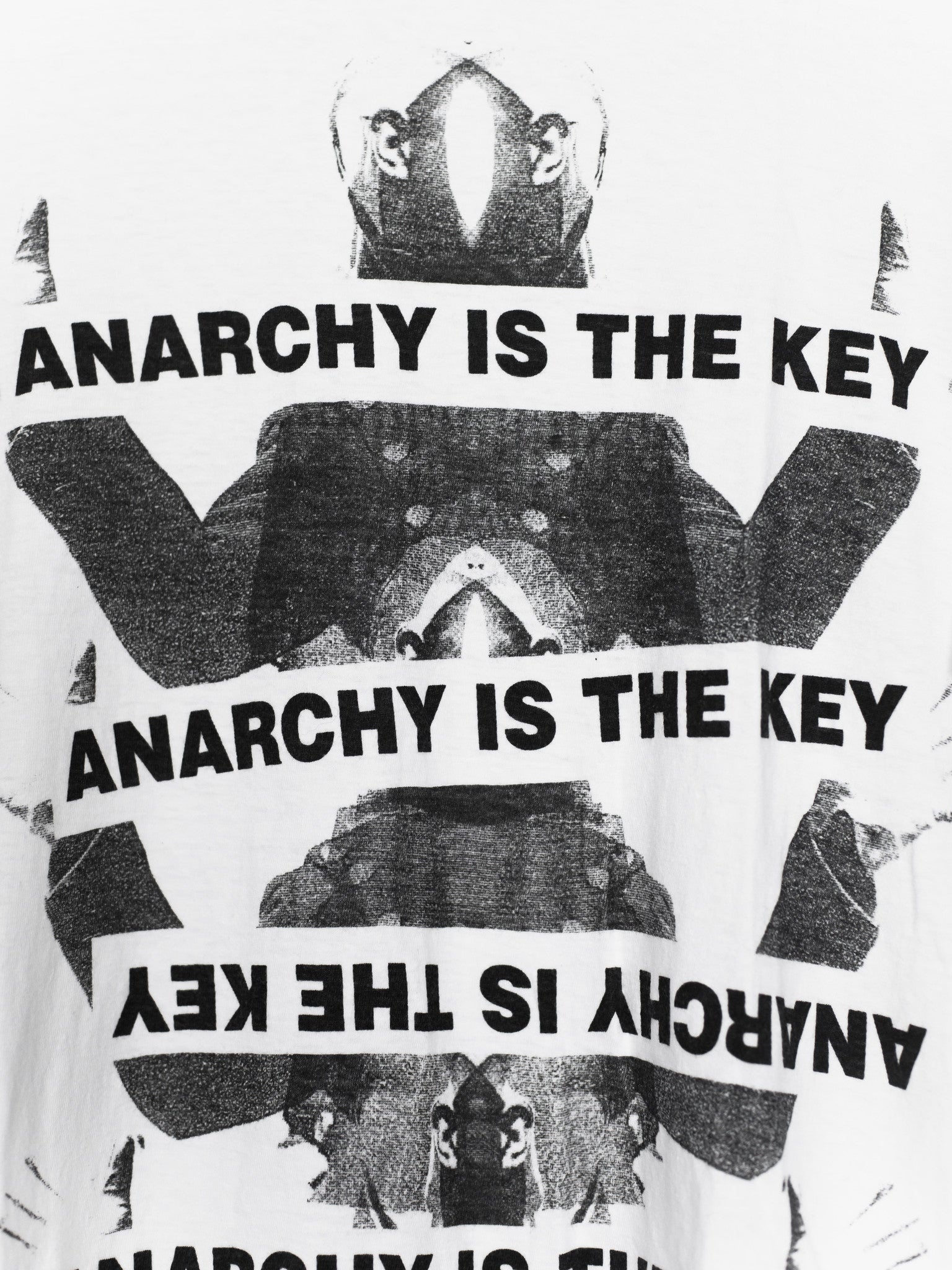 Rare tee featuring one of Undercover's earlier designs of the "Anarchy Is The Key" motif later brought to mainstream popularity by the Supreme collaboration. Made in Japan.