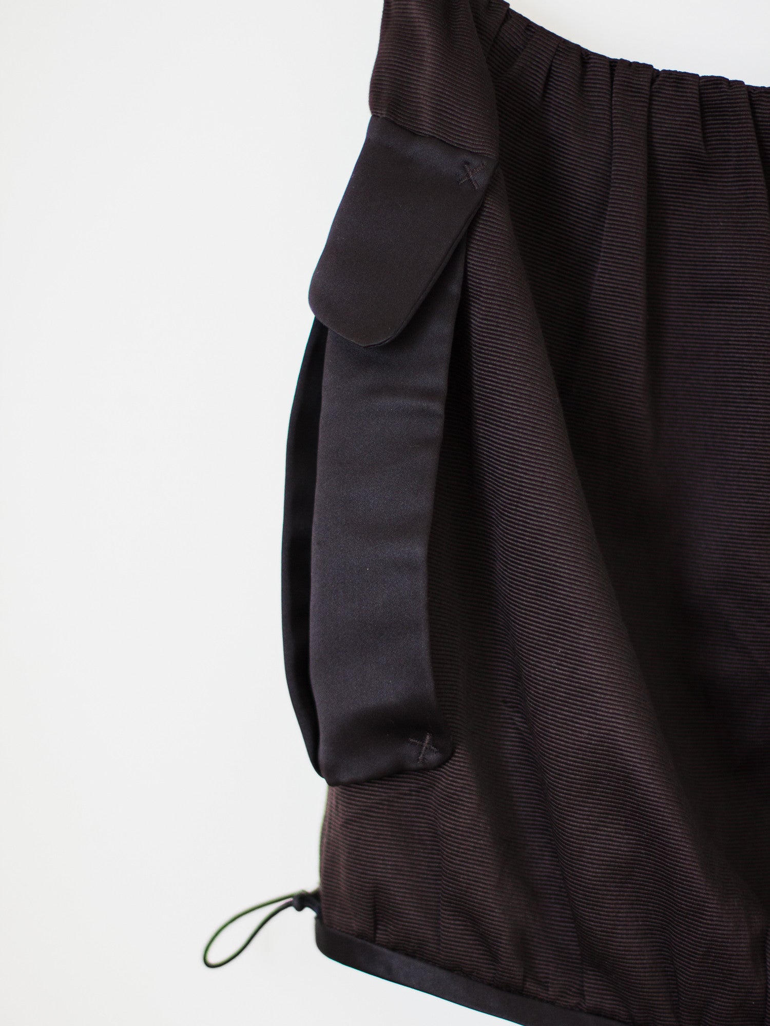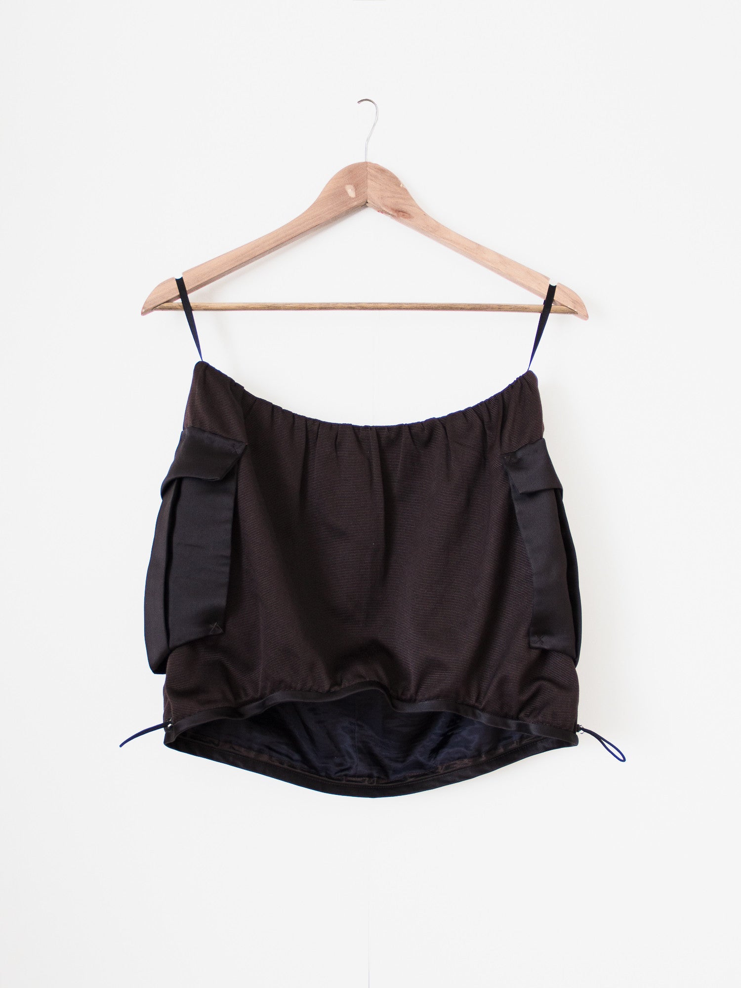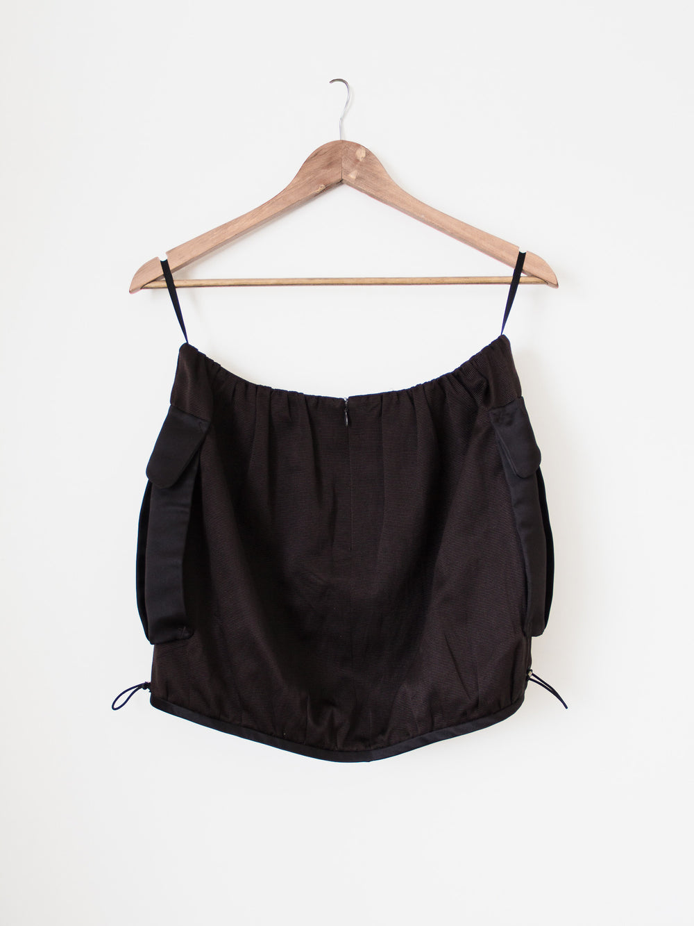 Beautifully structured and futuristic mini skirt with cargo pockets and adjustable hem cords.