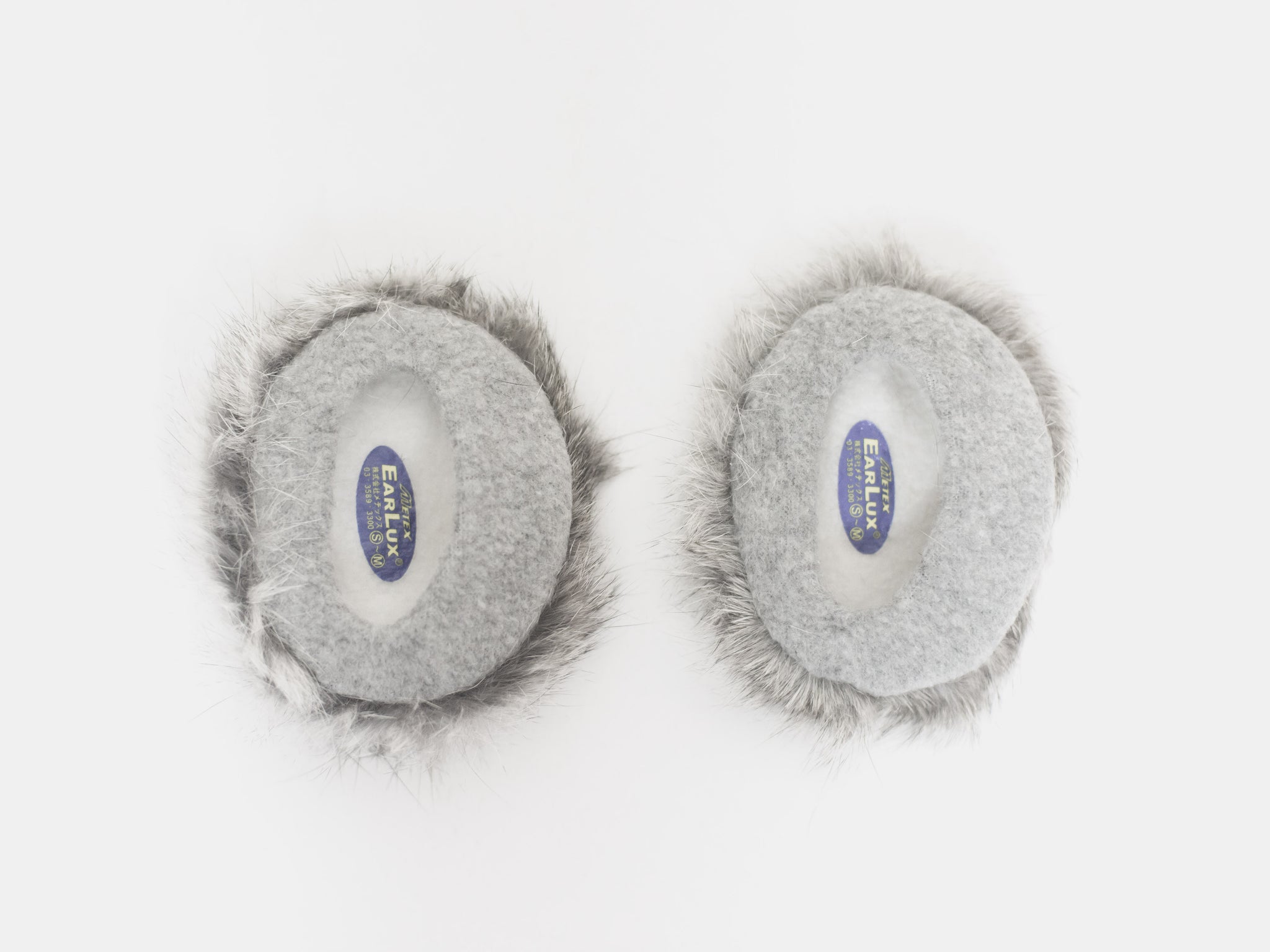 The regular version of the earmuffs featured centrally throughout AW07 Purple / Knit. These unique earmuffs retain a sleek profile, cupping directly around the ear. Constructed by Metex in rabbit fur.