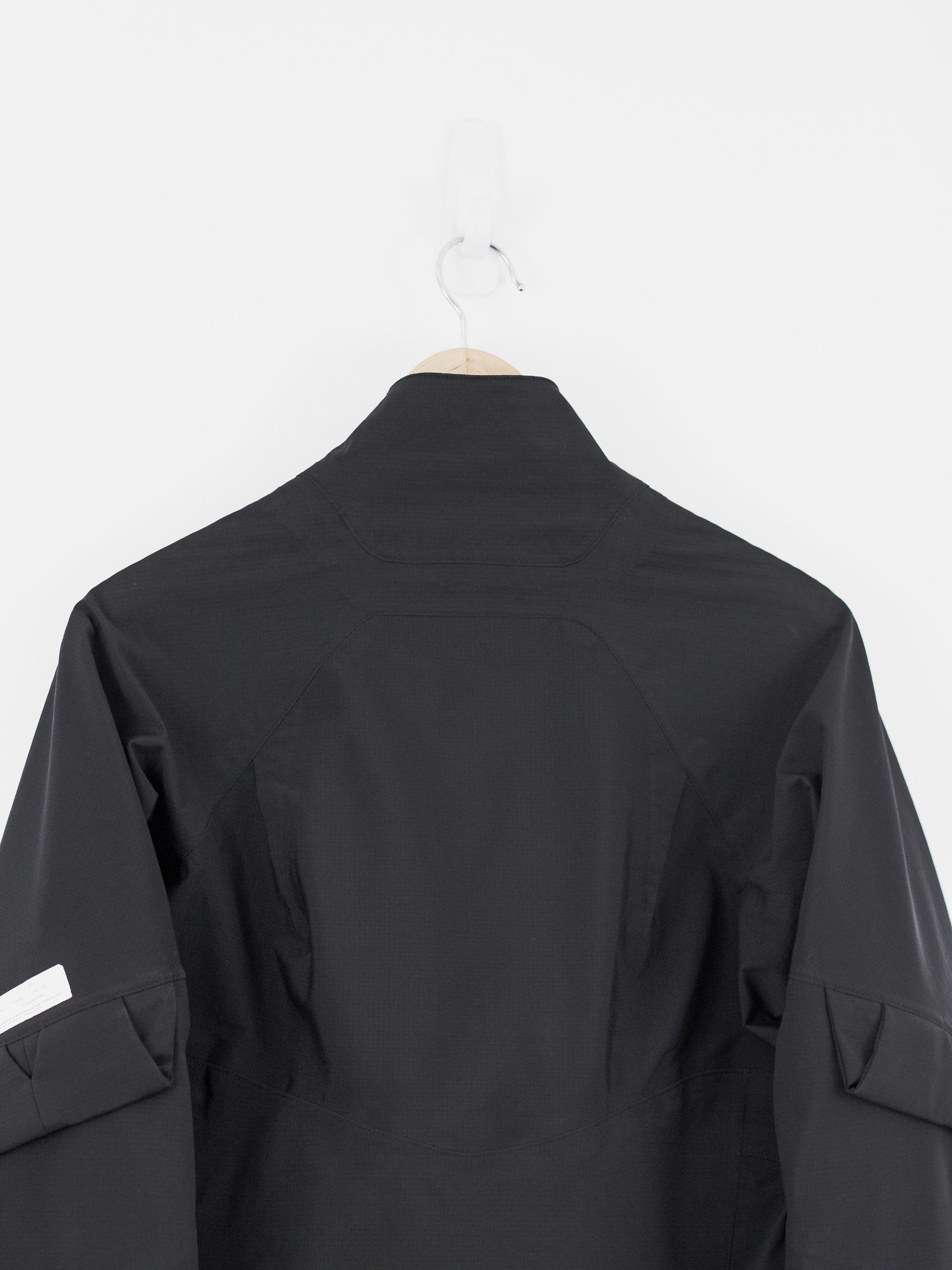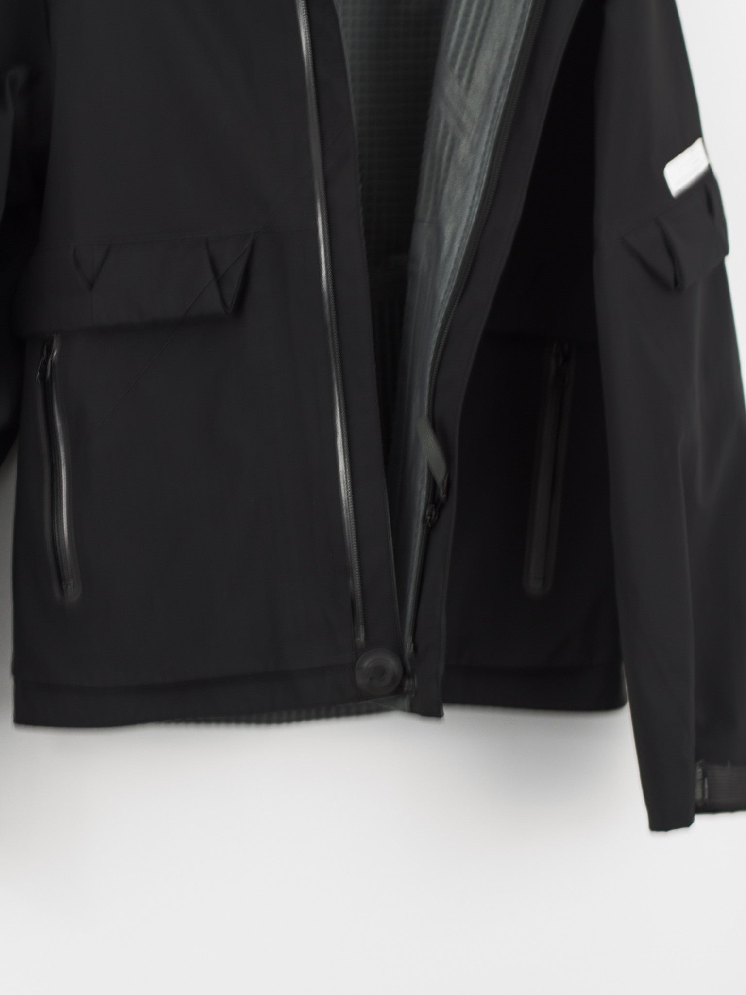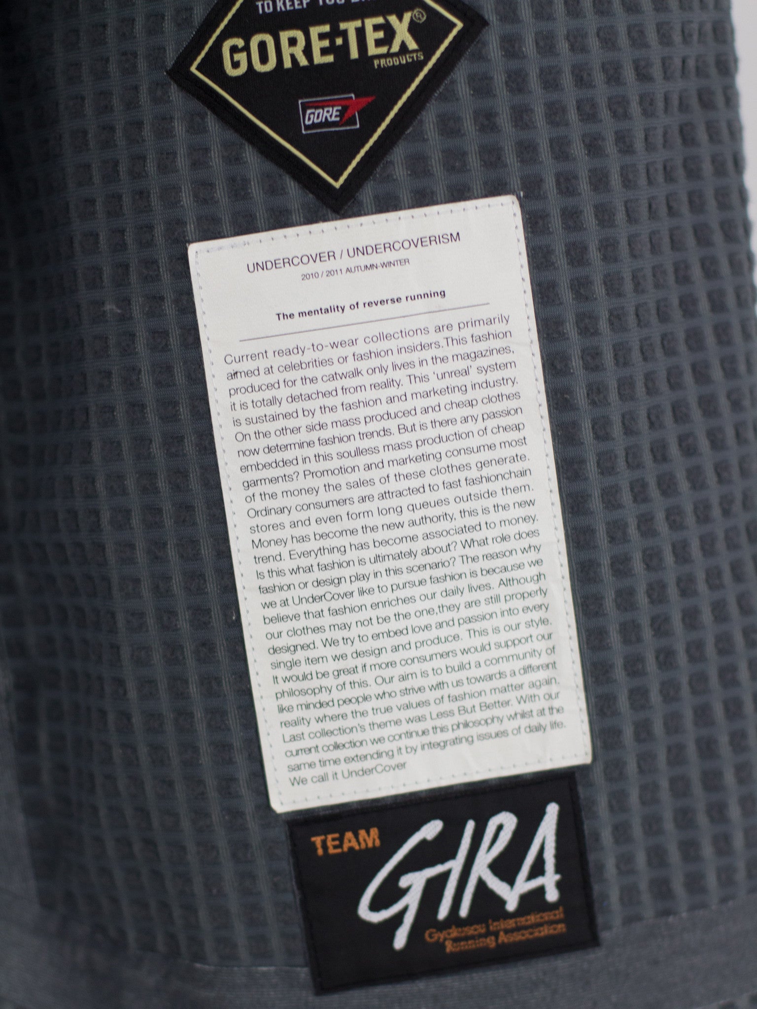 100% Waterproof Outer-shell Jacket from Undercover by Jun Takahashi's AW10 "Avakareta Life" collection. Definitely one of Jun's more functionally focused collections, this jacket is the perfect winter outer shell. Lovely geometric, origami-inspired waist and sleeve pockets with asymmetric detailing across the front torso. The back is completely symmetrical in contrast, and shows some brilliant panelling and collar detailing. Adjustable velcro sleeve straps, taped seams and high-quality taped reverse-coil YKK zippers for the additional pockets on the torso as well as the closure. The jacket continues to impress with a dense, insulated and perforated lining to keep you as warm as possible and a magnetic bottom button closure.