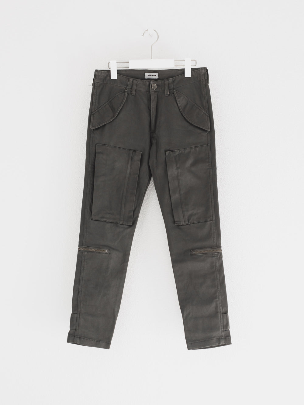 Coveted zip cargo pants from AW13 Anatomicouture. Incredible details with the flap pockets, five zip cargo pockets along the leg, and velcro straps on the hem.