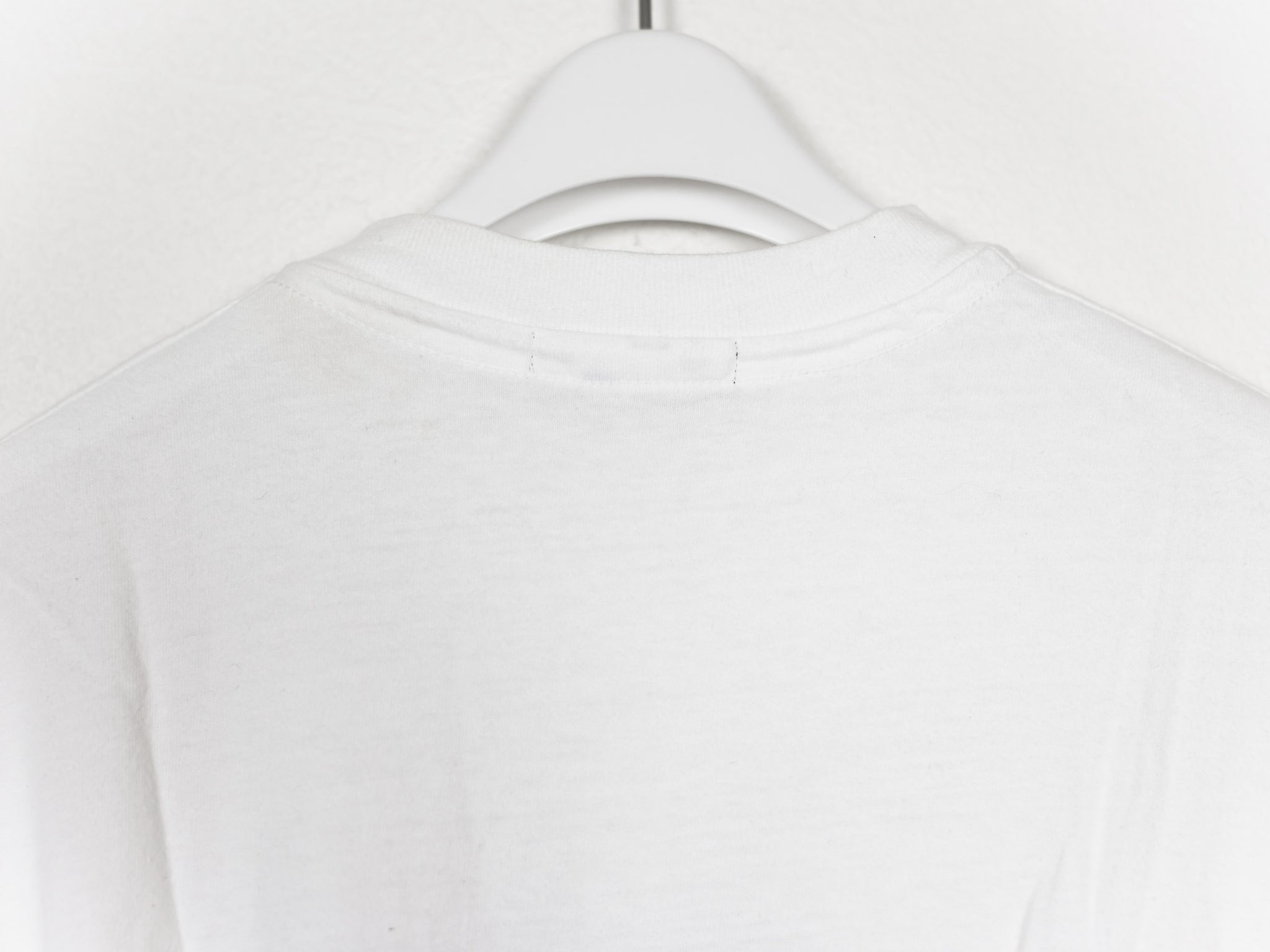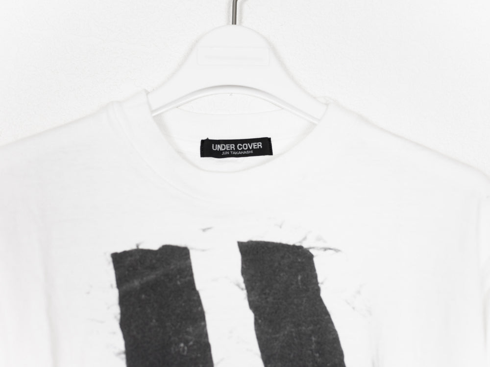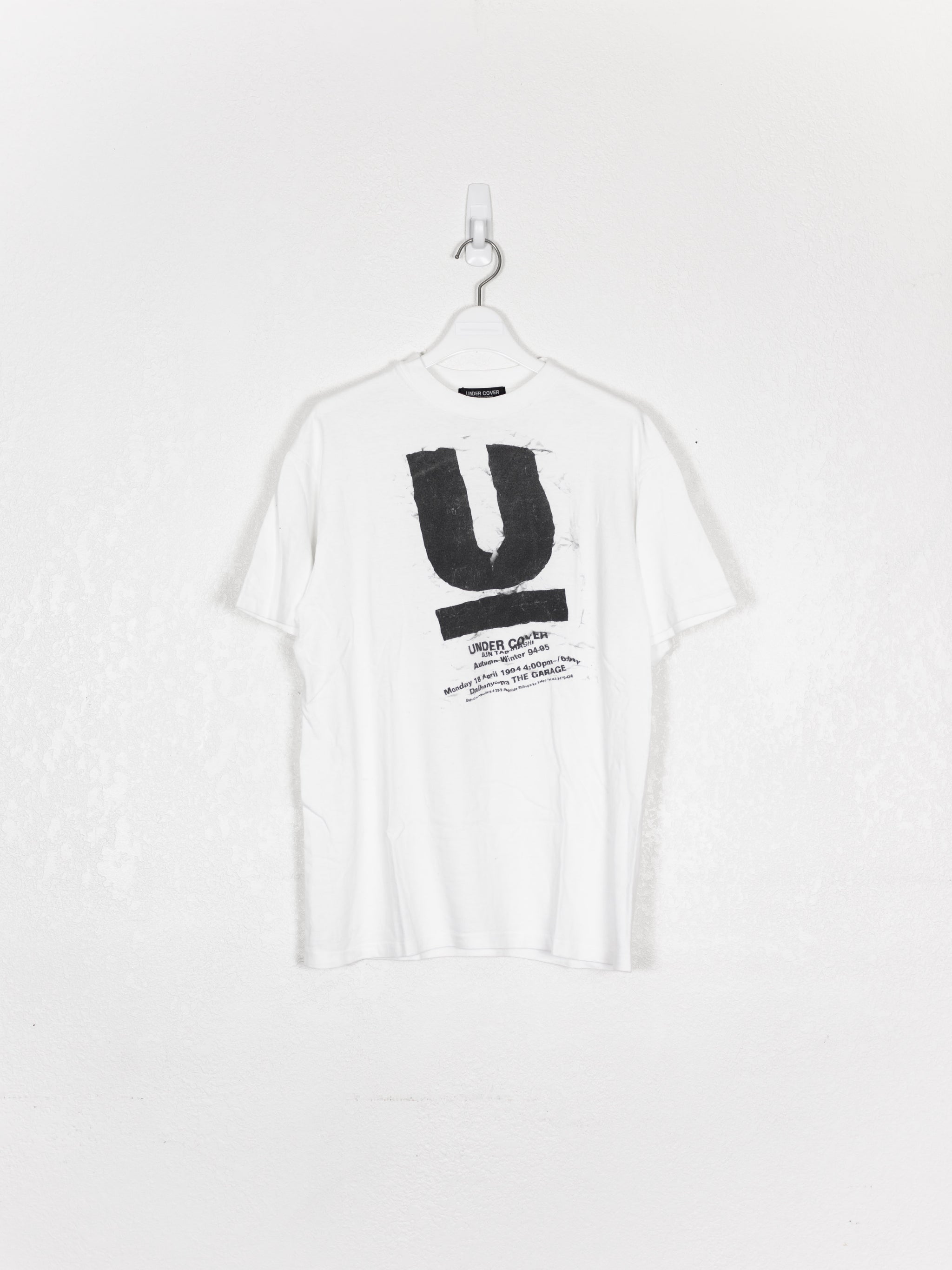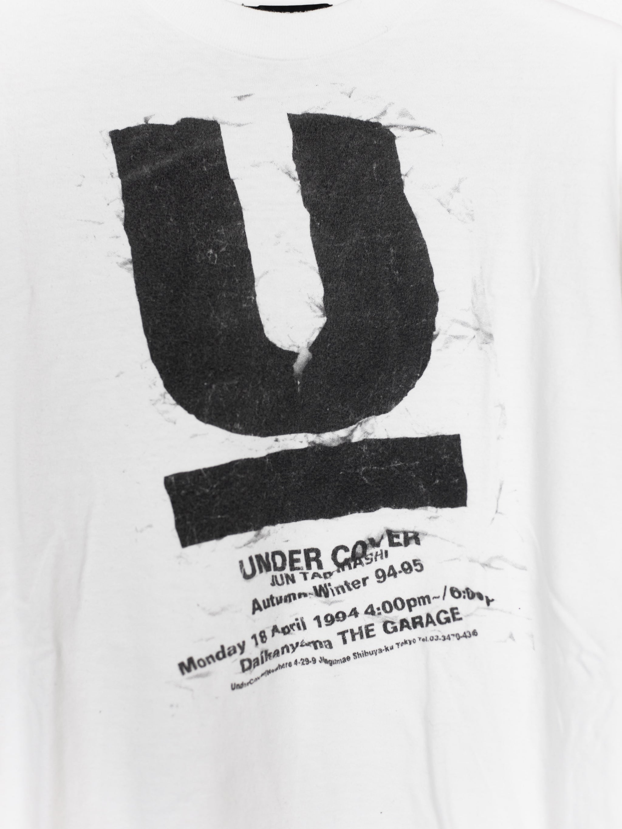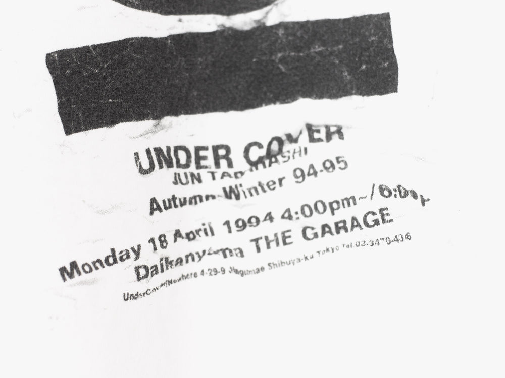 Incredibly hard to find tee from Jun's first ever collection, Autumn Winter 1994. Screen printed onto a hefty loopwheeled tee and in amazing condition, featured in his TGraphics and Labyrinth exhibit in Tokyo. The first run prints are characterized by their unique placement and print transfer. No two tees are printed exactly the same.