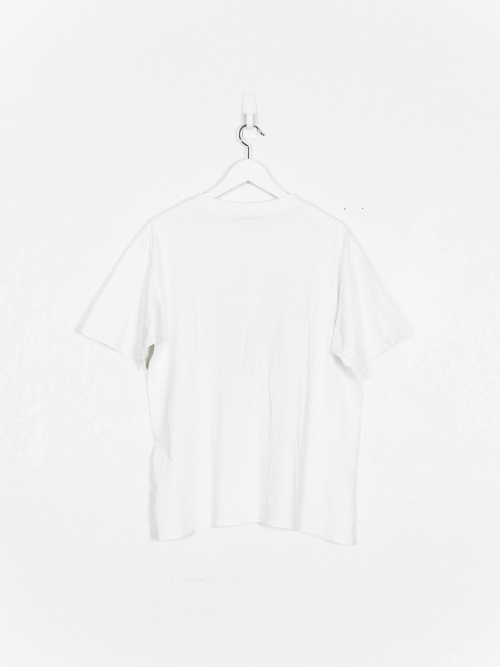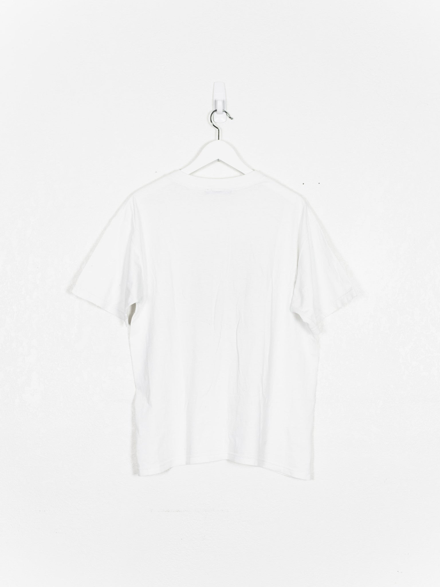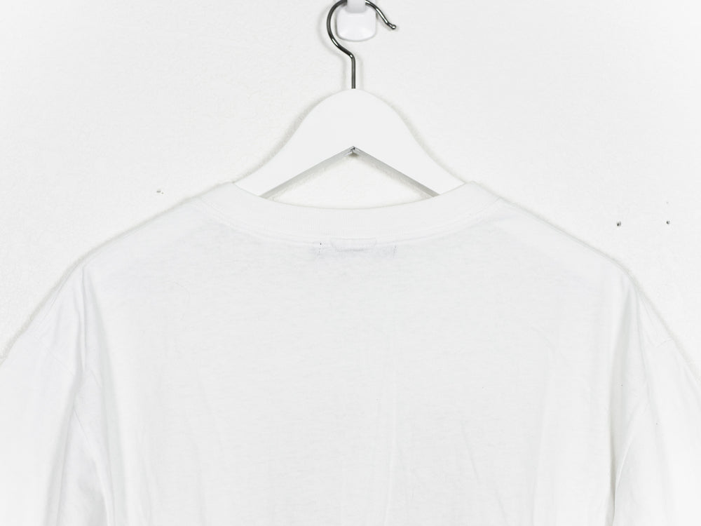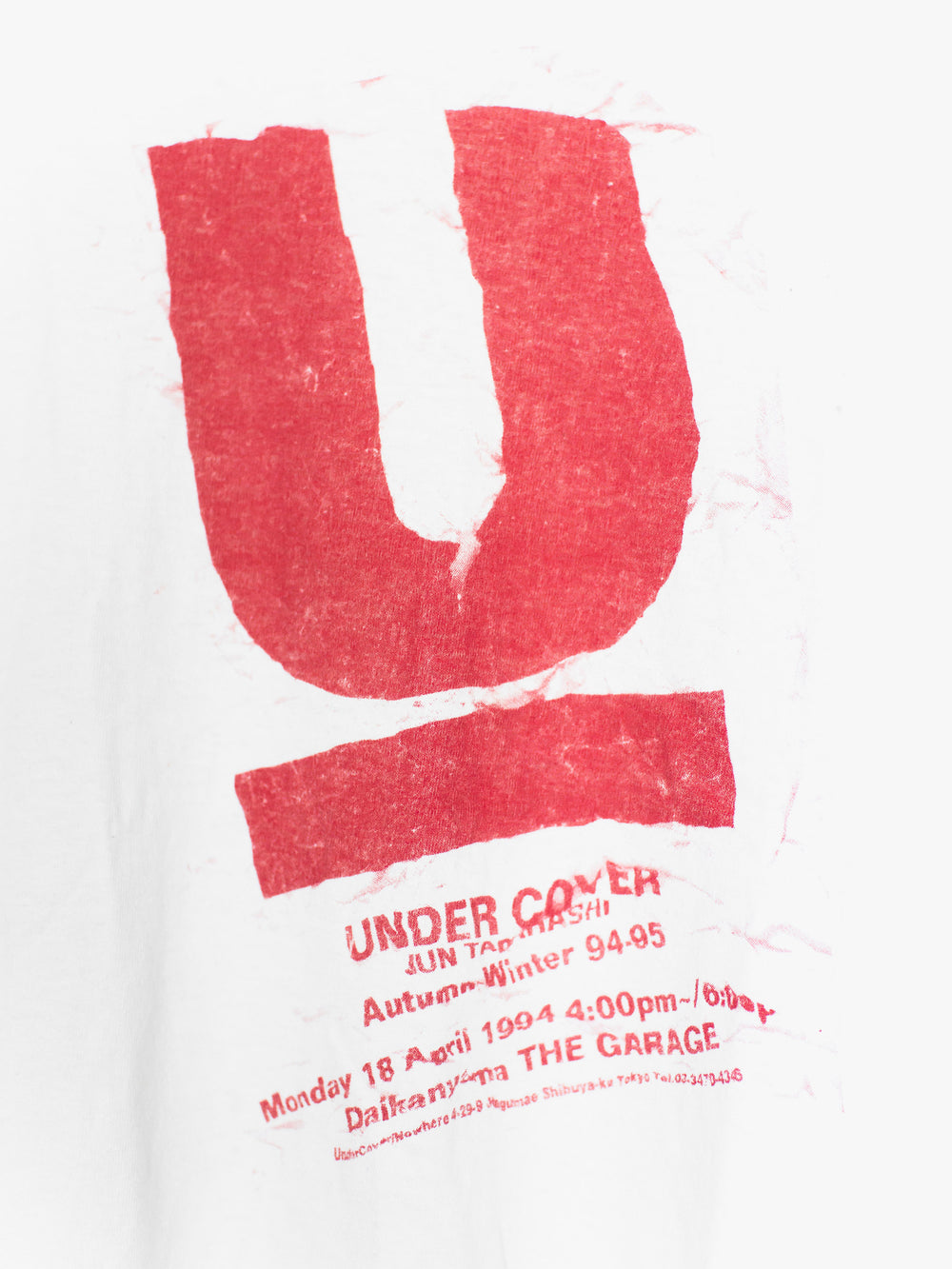 Very rare early production version of Undercover's flyer graphic tee originally printed for their first ever seasonal collection back in 1994, though this one was reproduced a few years later on a hefty loopwheeled tee. Has the date and location of the show, even the old telephone number of the NOWHERE store. The original was featured in his T-Graphics exhibit in Tokyo.