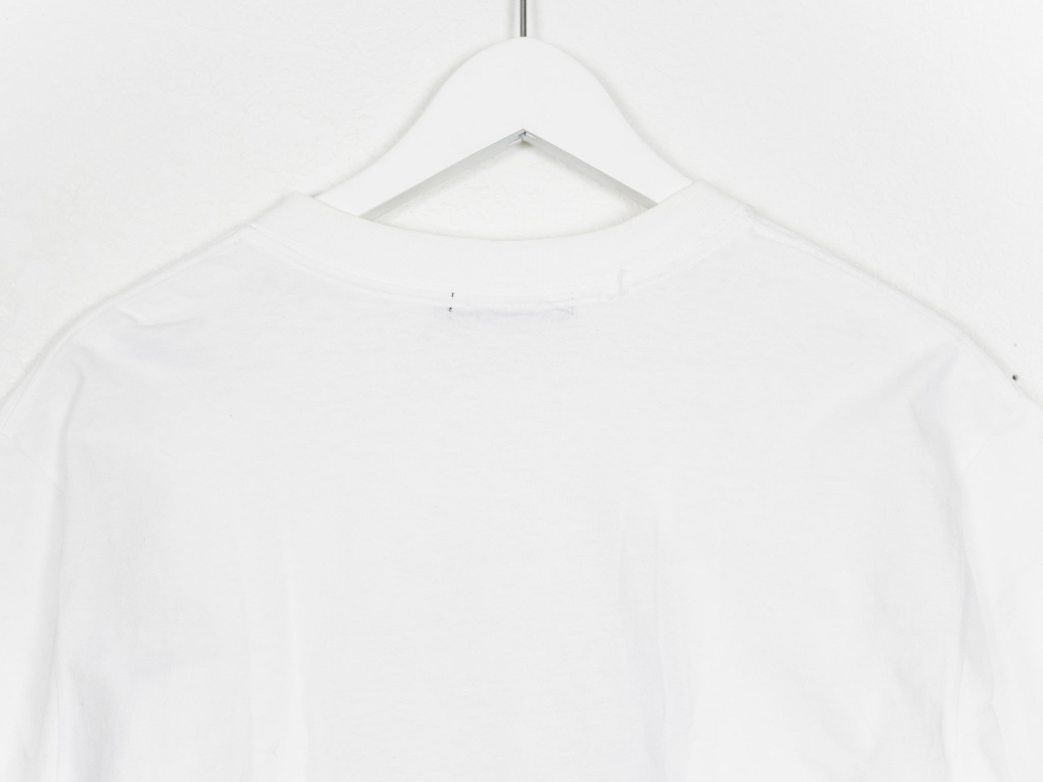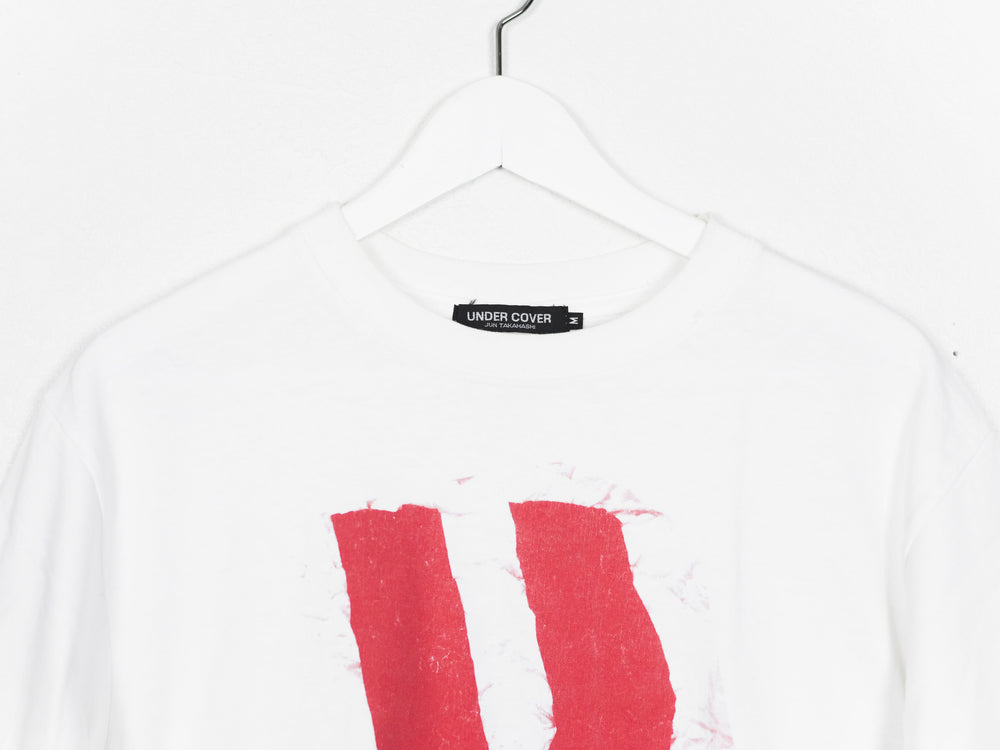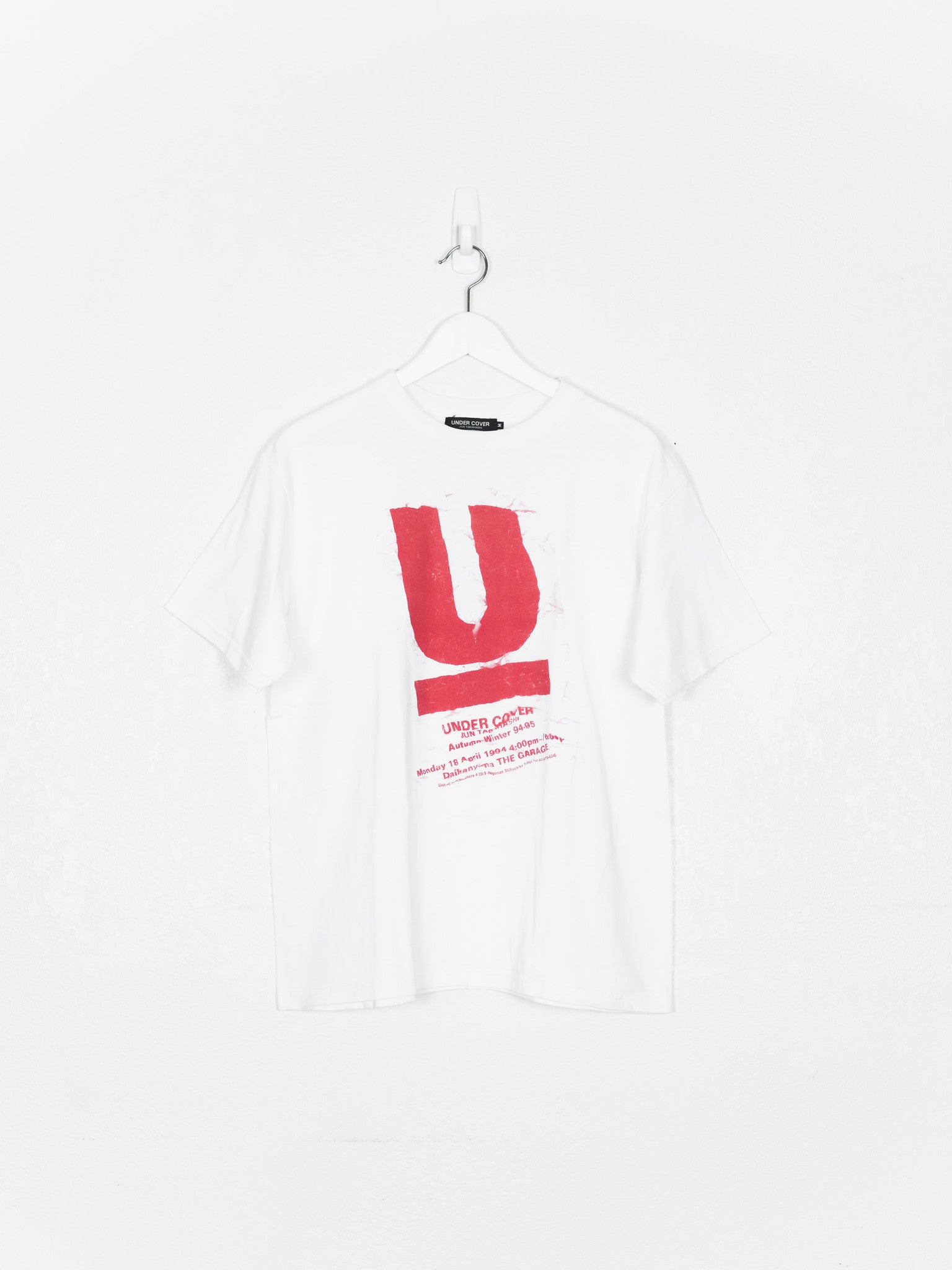 Very rare early production version of Undercover's flyer graphic tee originally printed for their first ever seasonal collection back in 1994, though this one was reproduced a few years later on a hefty loopwheeled tee. Has the date and location of the show, even the old telephone number of the NOWHERE store. The original was featured in his T-Graphics exhibit in Tokyo.