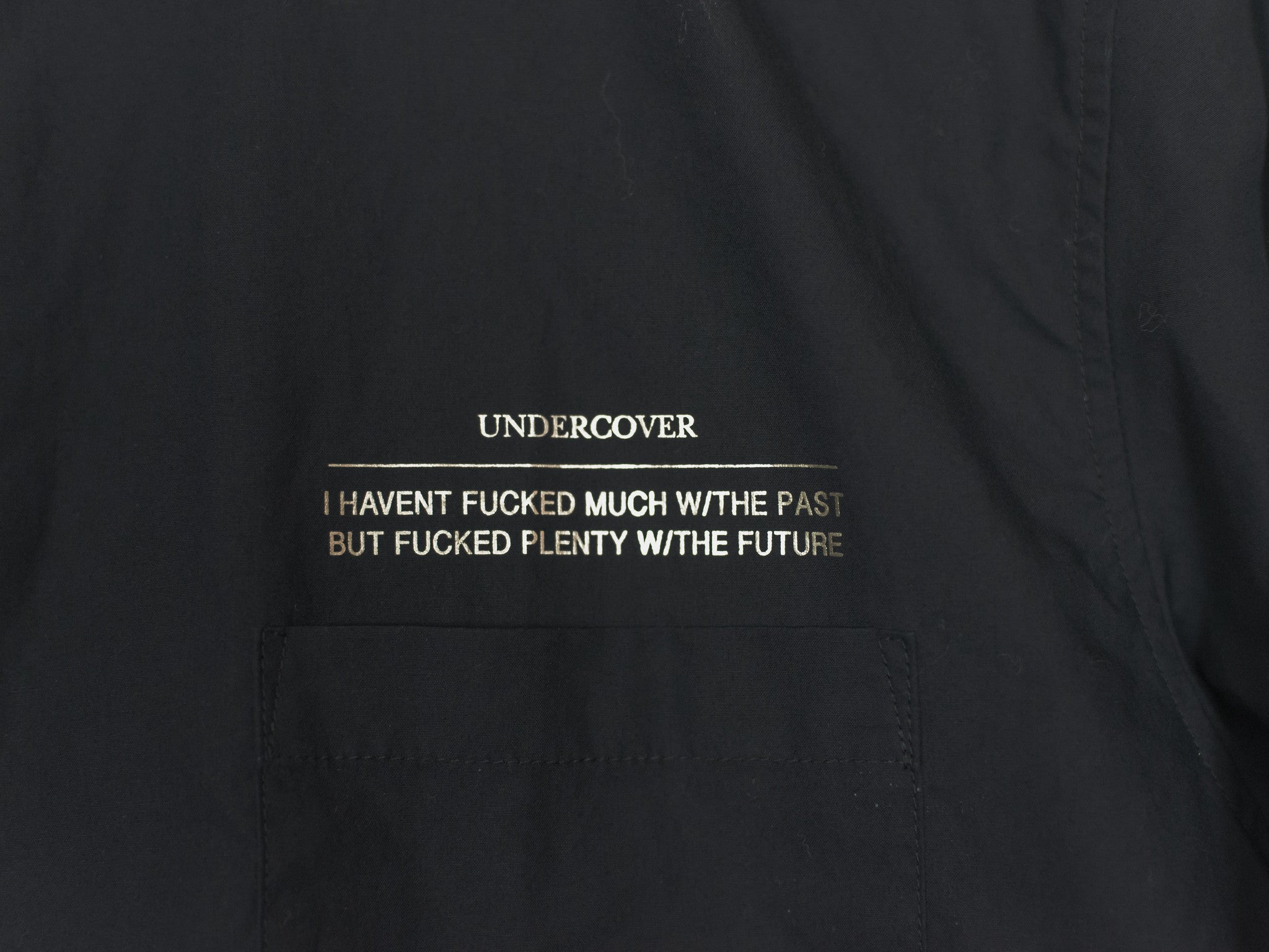 Jun Takahashi's AW16 "Instant Calm" saw a return to many themes and tropes we have seen before in some of the most celebrated past collections, just as SS16 "The Greatest" did. It seems this year was largely about "fucking with the past". This shirt is peculiar, considering it seems quite an antithetical approach to what the mantra that is printed in gold across the left breast would ask of us. To elaborate, the button-up has a shape and style that is reminiscent of SS10 "Less but Better" and directly references lots of garments from SS09 "Neoboy" and SS12 "Open Strings" which featured this exact Patti Smith mantra or variations of it prevalently. Perhaps there is a method to this madness that I am unable to see.