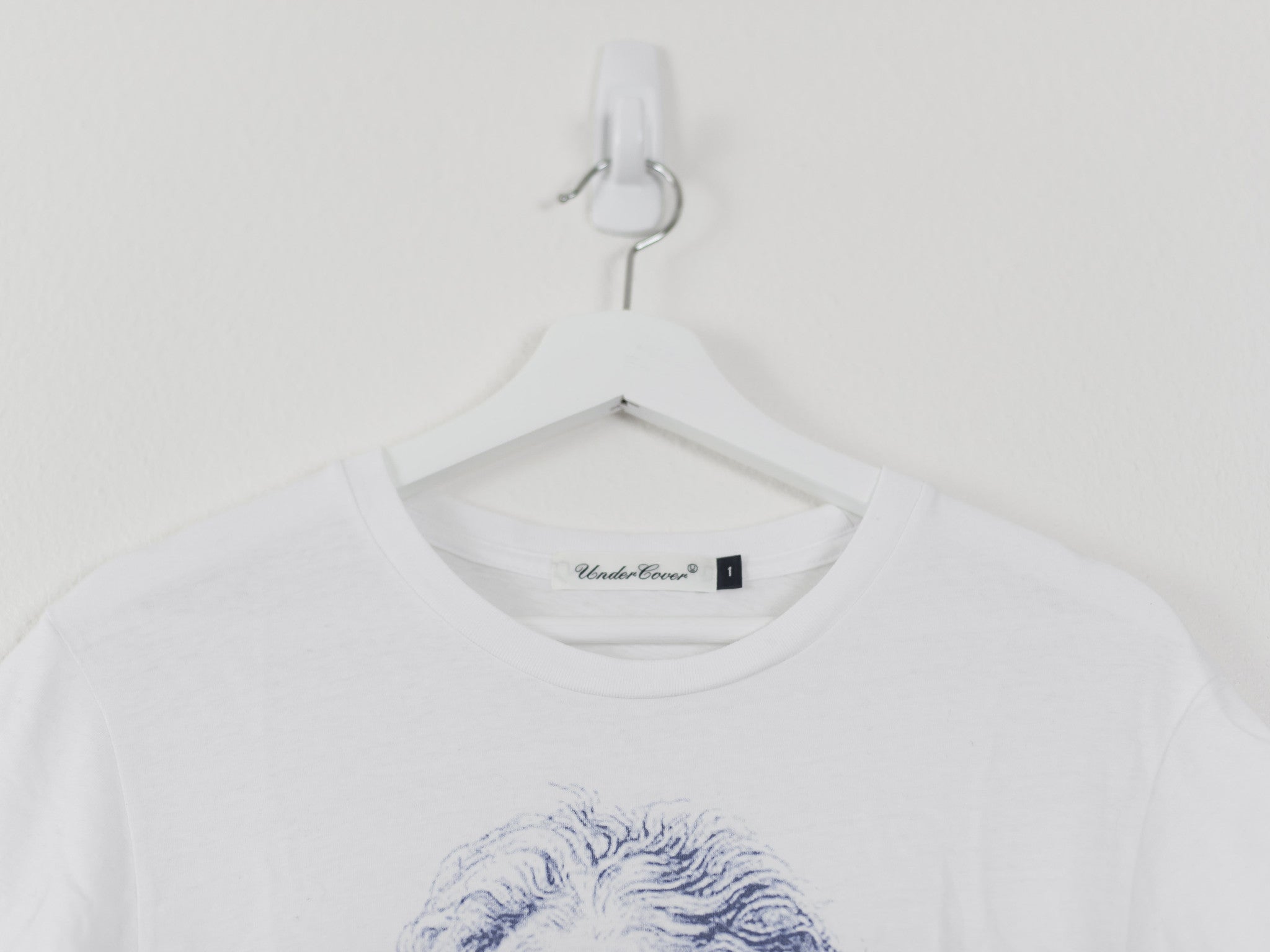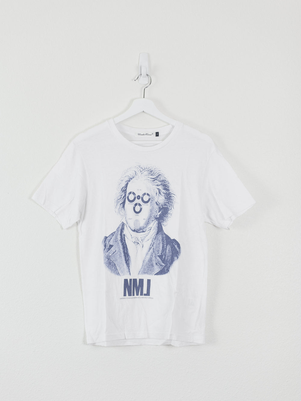 Cool tee featuring an elusive look at Beethoven with effects knobs for a face. NML Noise Music Laboratories print in navy on white. Made in Japan. 10/10 condition, no flaws.