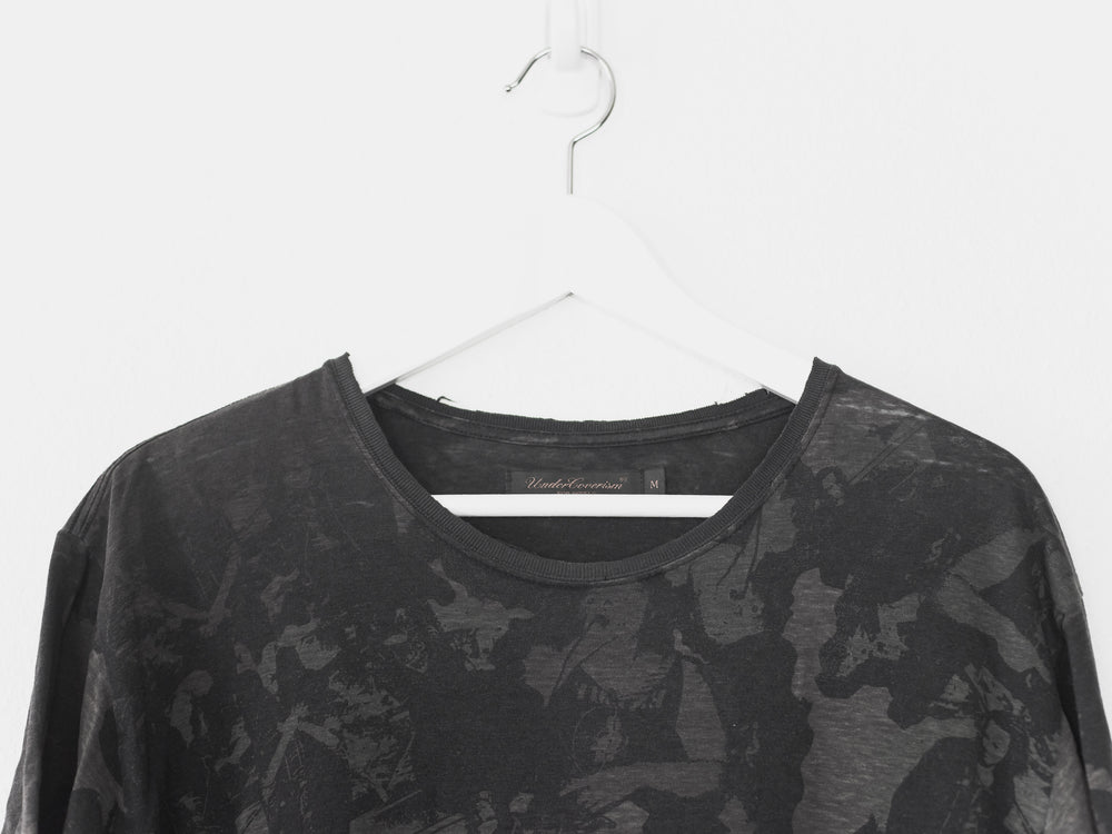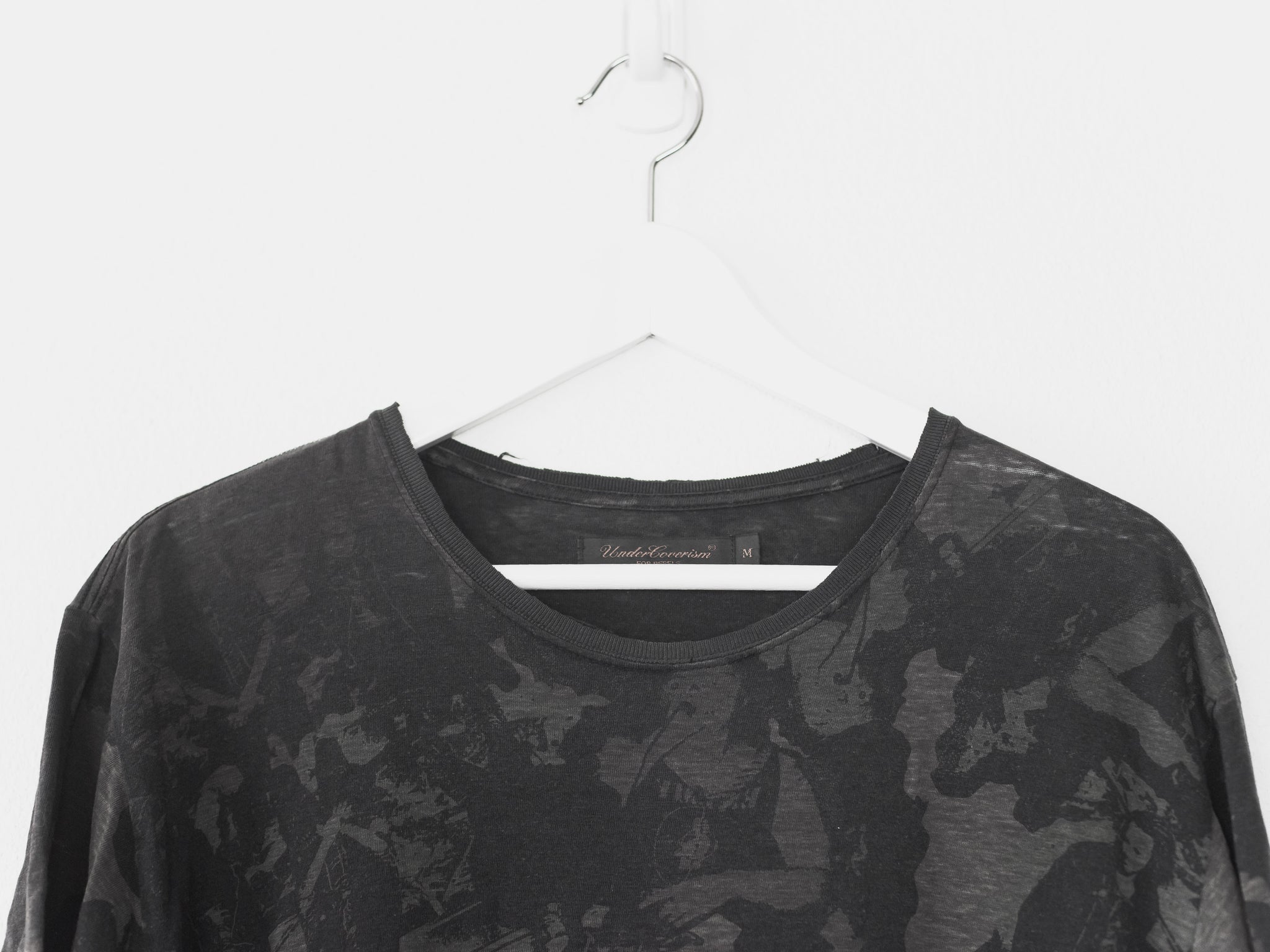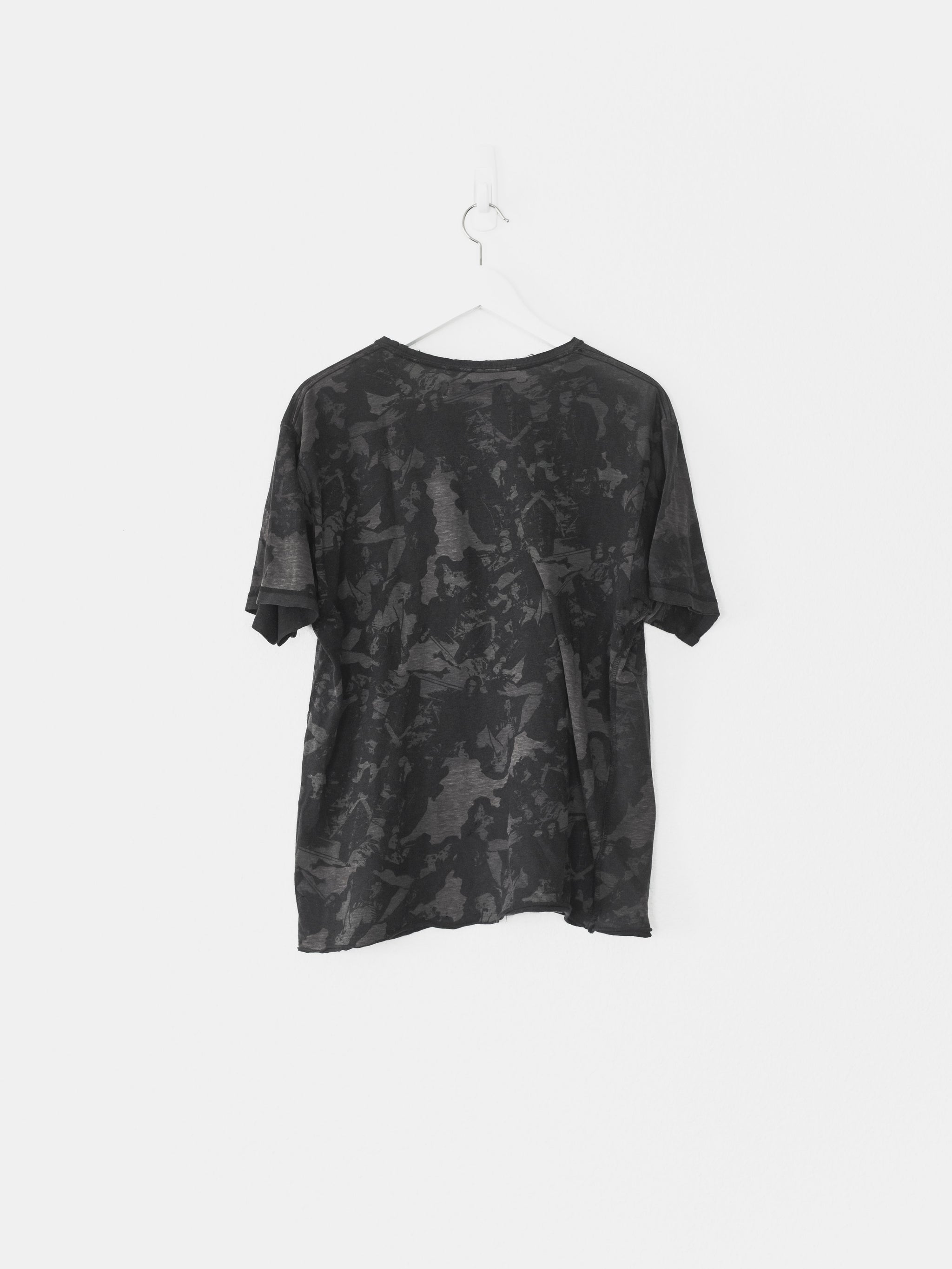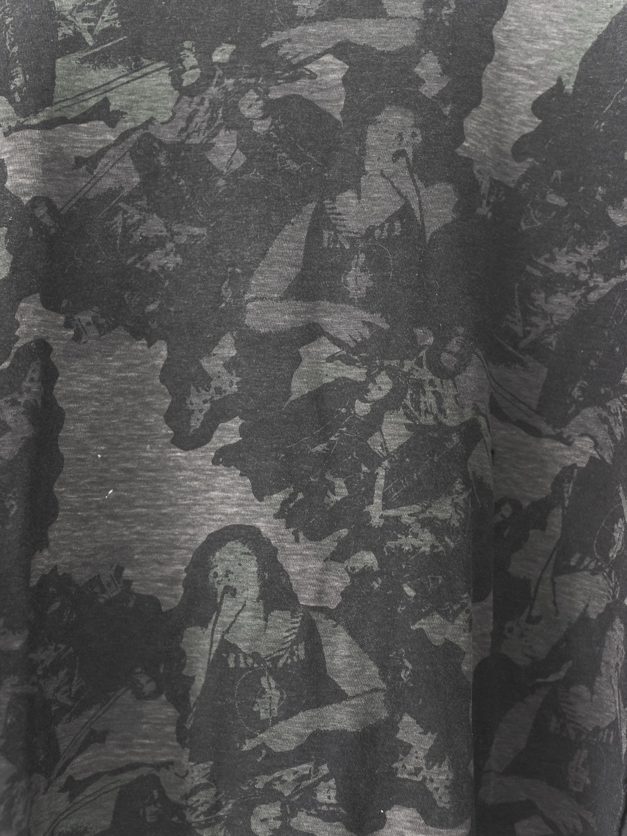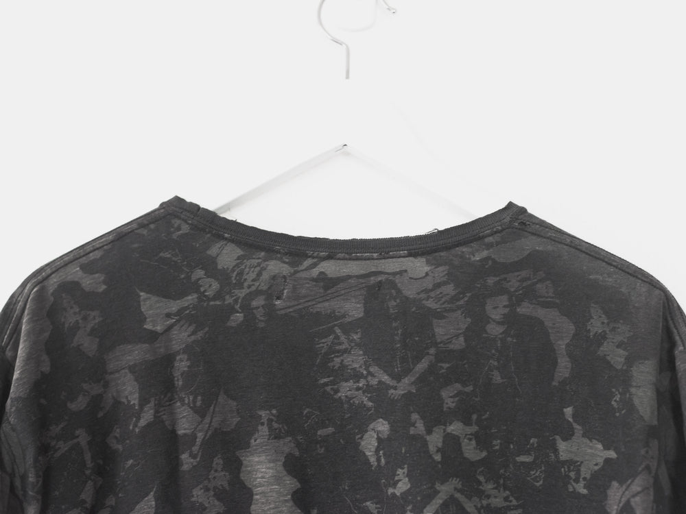 Rare tee featuring an abstract mural of pop culture individuals print and the characteristic Scab season distressing.