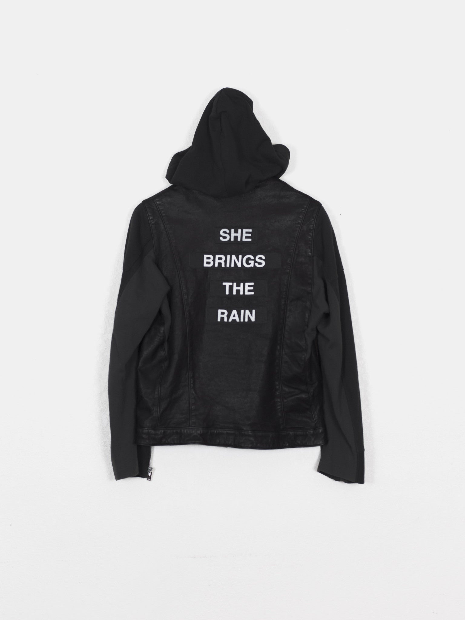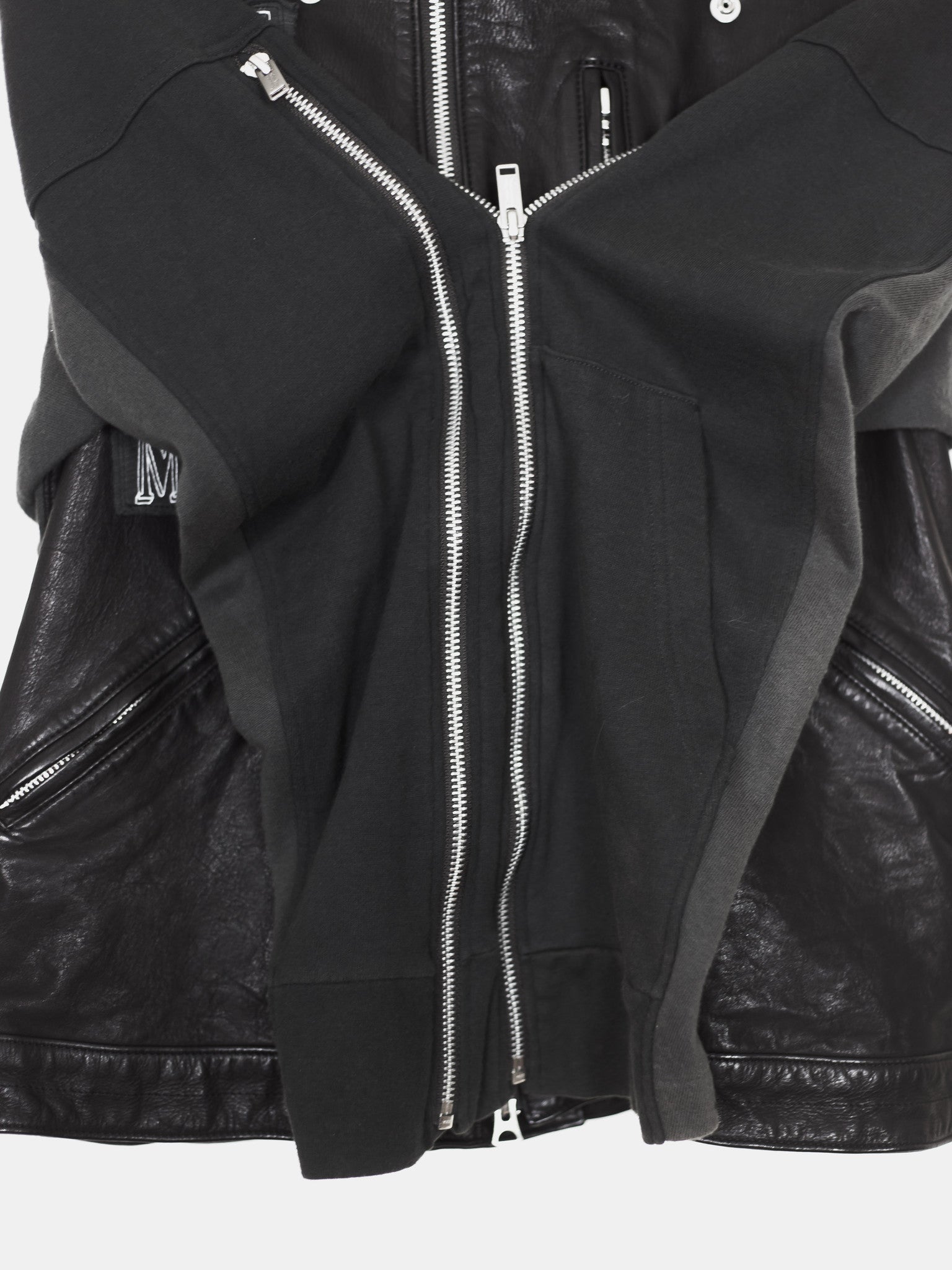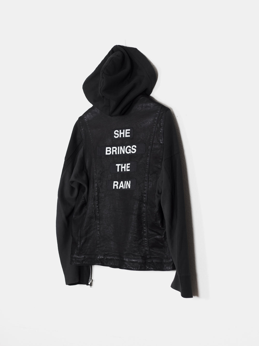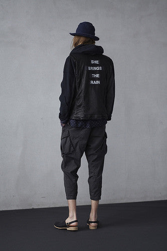 Amazing spotlight piece from Undercover's 12SS 'Open Strings' featuring extraordinary details and construction with mixed materials. Composed of a double rider body with deconstructed hoodie components, this piece highlight's Jun's DIY-like craftsmanship and harkens to his one-off Undakovr creations.