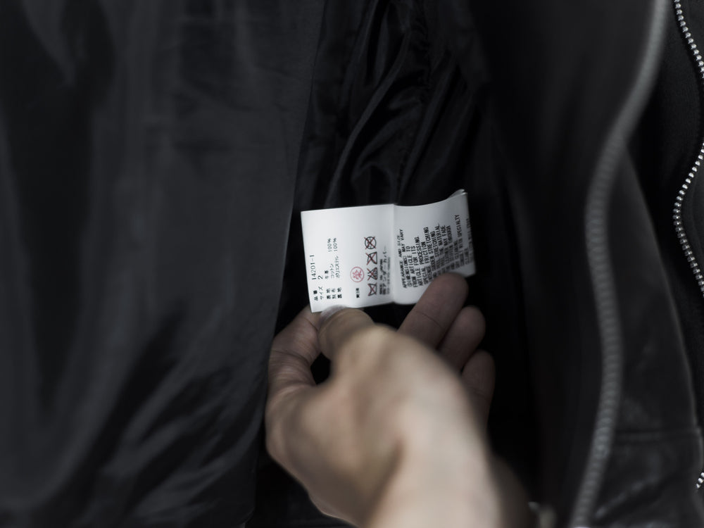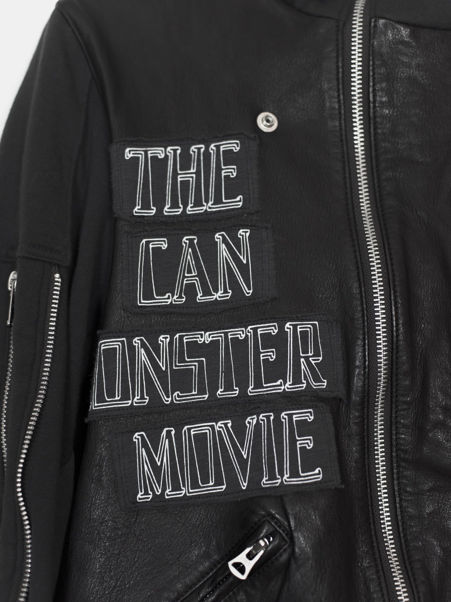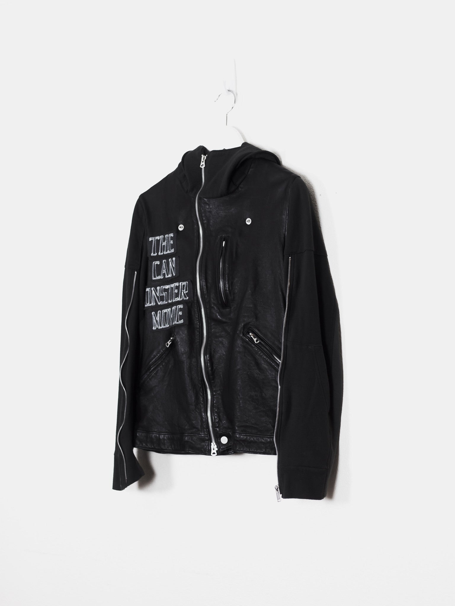 Other details include the iconic front and back patch prints, Undercover embossed zippers throughout, asymmetric main double zip, large cotton fleece lined front pockets, chest pocket, sleeve zip details, and a smooth lining.