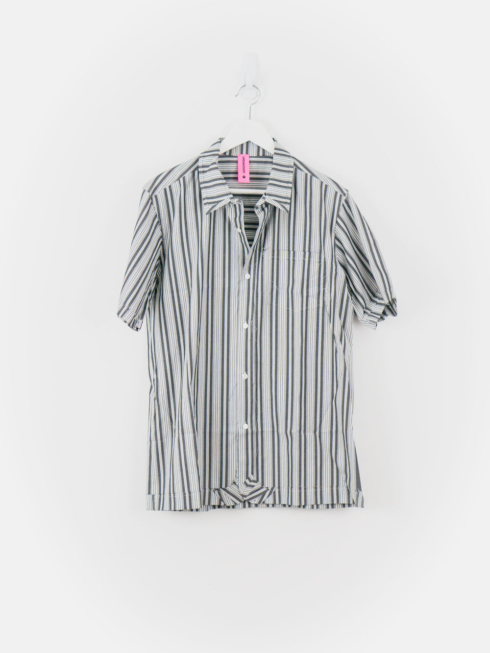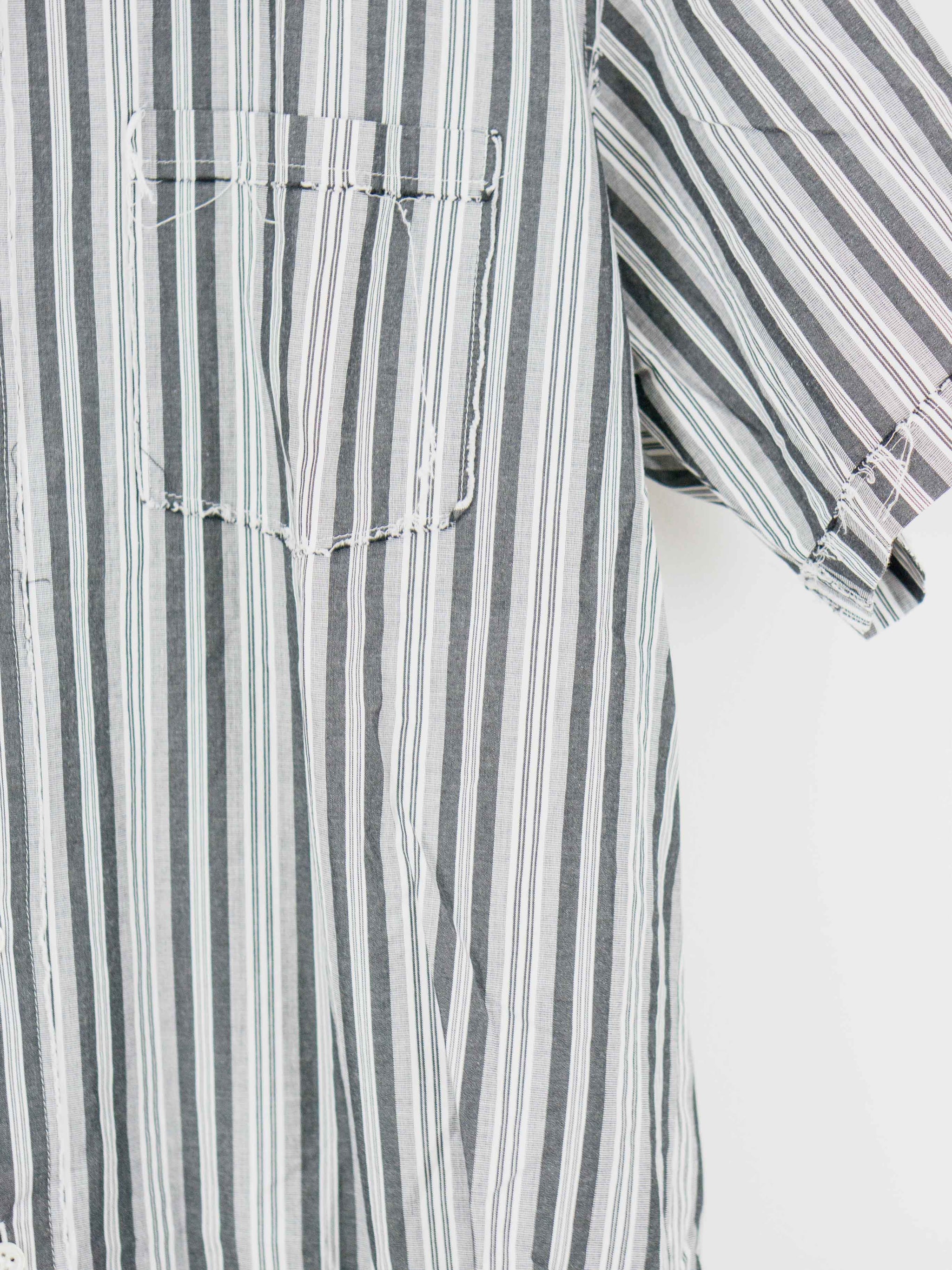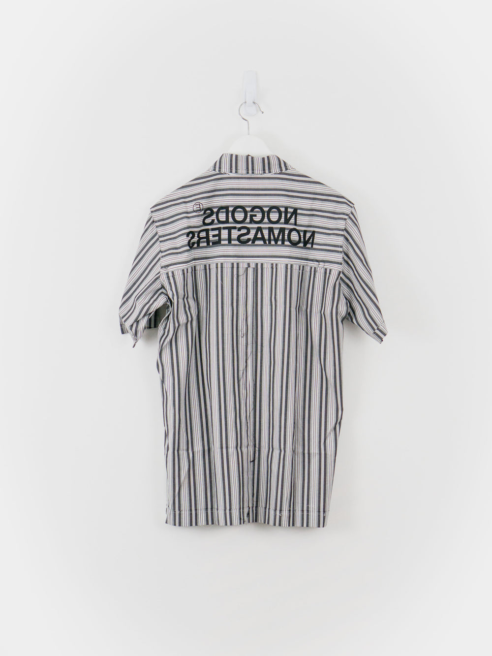 A button-up hailing from the Undakovrit line, a sub-label to the mainline alongside Undakovr and Undakovrist. There is not much concrete evidence about where and when these items with these tags were sold, but as far as we know they were sold at a pop-up store in the early 2000s. Many of them seem to reference vintage stylings with small additions being added or twisted, this item for example has the hem on the outside with exposed seams and threads, as well as a print of the "No Gods No Masters" mantra, meaning this was probably made around the same time as Spring/Summer 2003's "Scab" was either conceived or released.