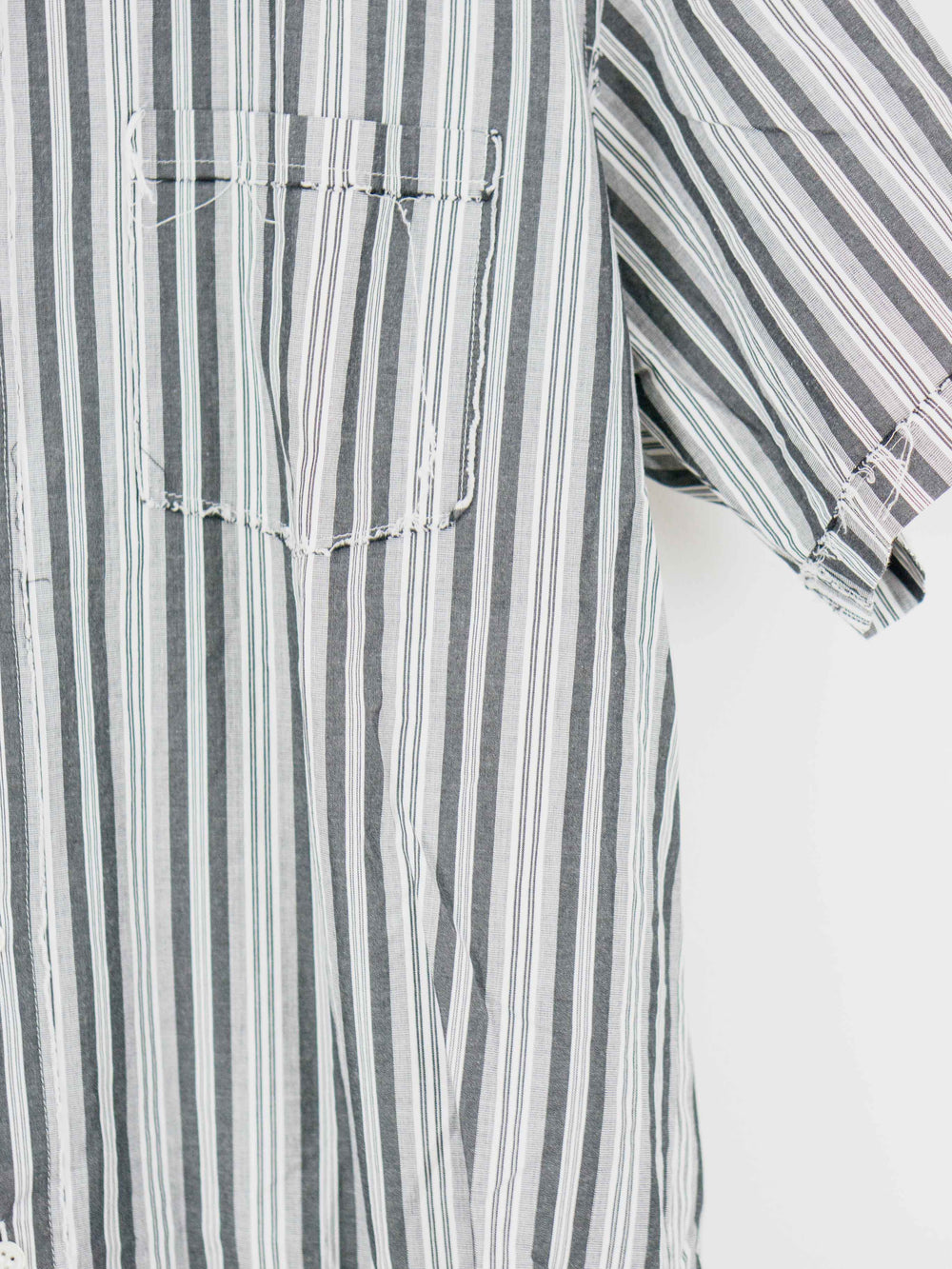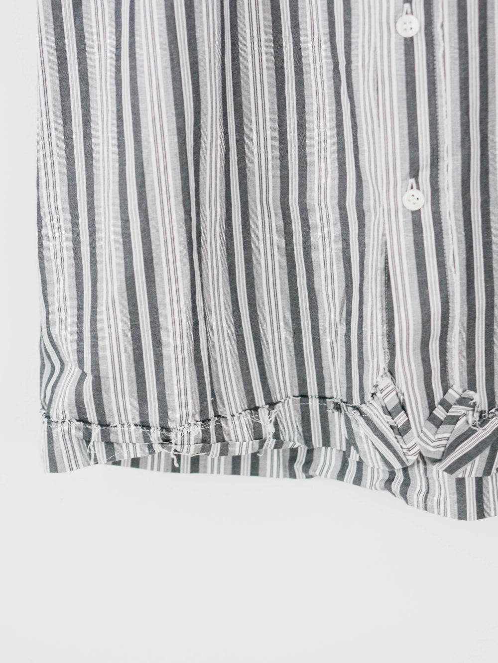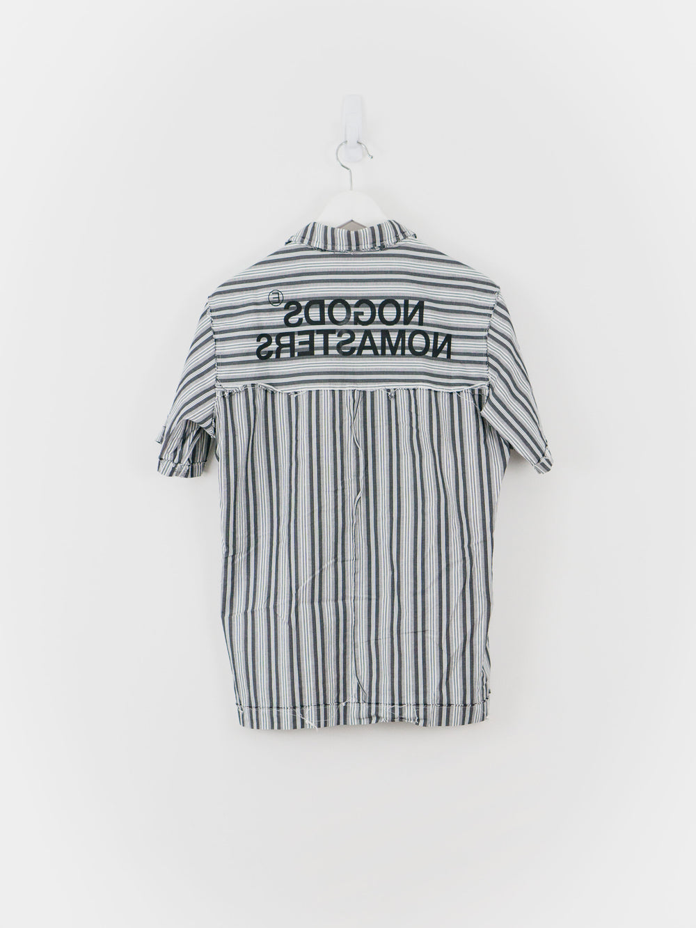 A button-up hailing from the Undakovrit line, a sub-label to the mainline alongside Undakovr and Undakovrist. There is not much concrete evidence about where and when these items with these tags were sold, but as far as we know they were sold at a pop-up store in the early 2000s. Many of them seem to reference vintage stylings with small additions being added or twisted, this item for example has the hem on the outside with exposed seams and threads, as well as a print of the" No Gods No Masters" mantra, meaning this was probably made around the same time as Spring/Summer 2003's "Scab" was either conceived or released.