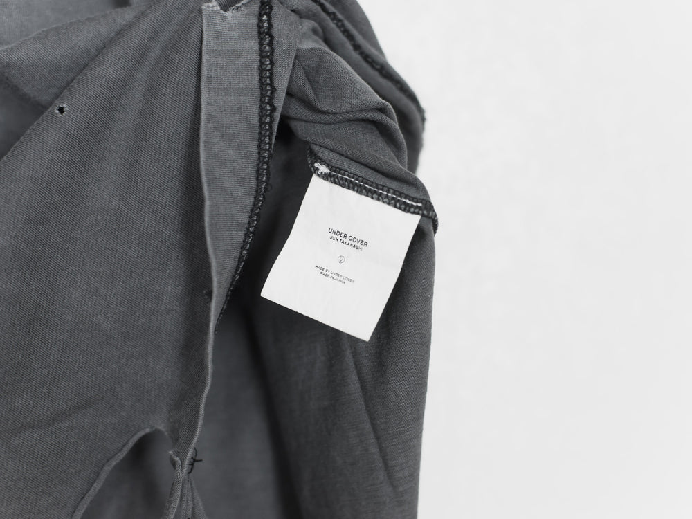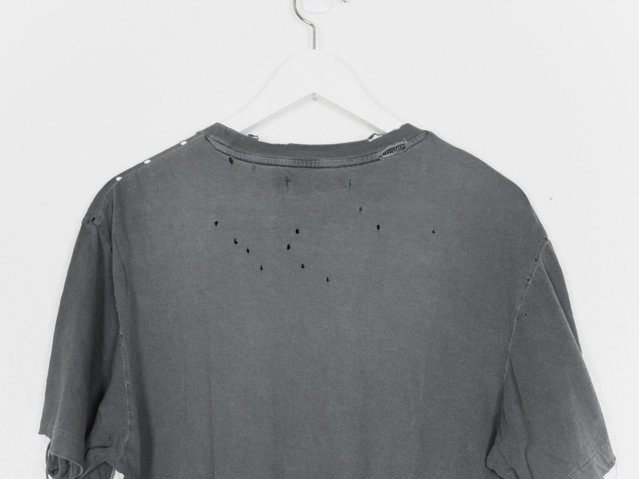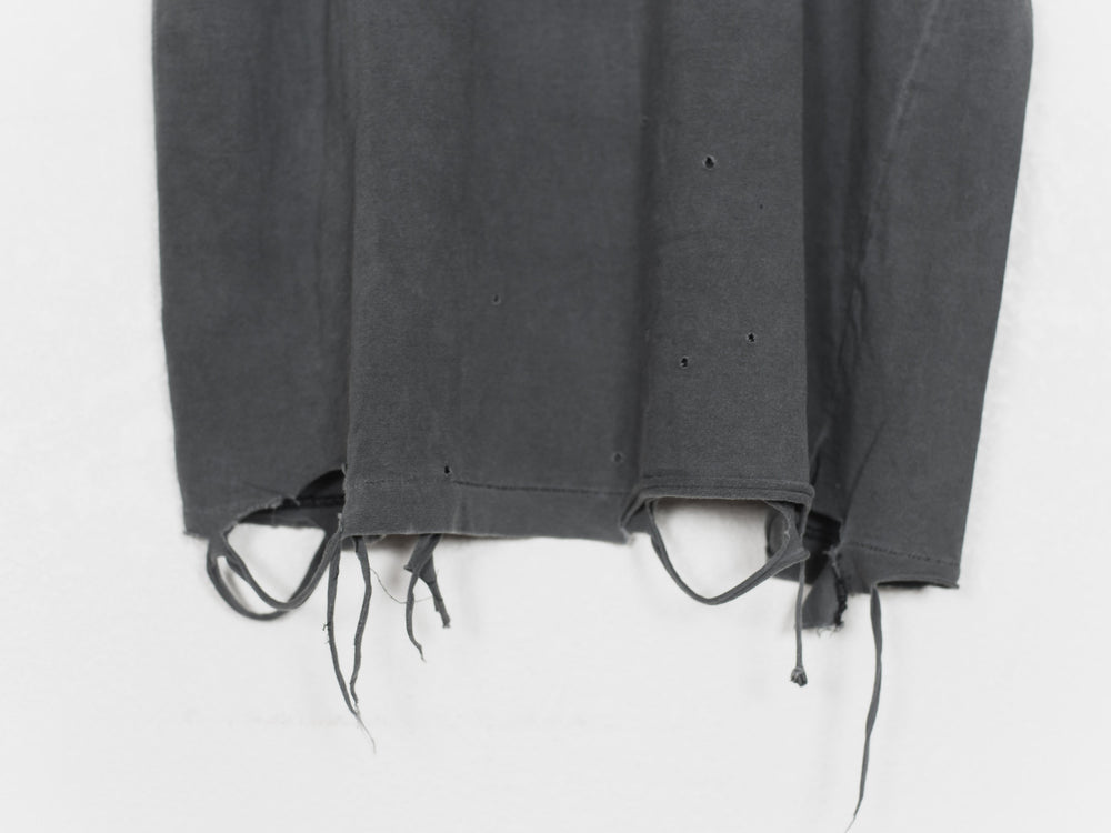 Rare and coveted piece in excellent condition. This is the very first Giz tee with meticously distressed hems and perforations. Because the tee came new with faded and destroyed details, the condition is harder to gauge, but judging by the care-tag and fabric it's in 9/10 condition - no pilling or wrinkles.