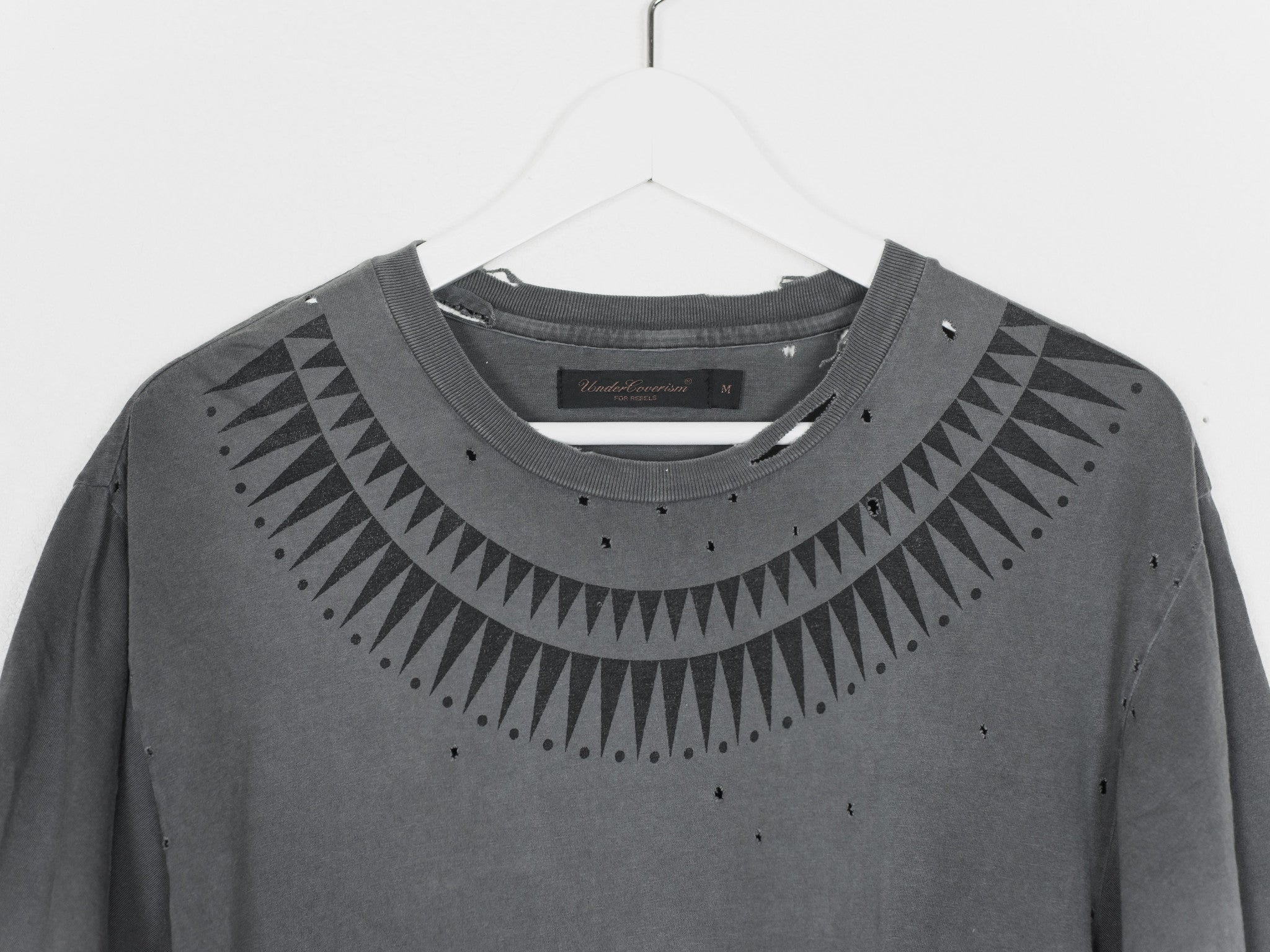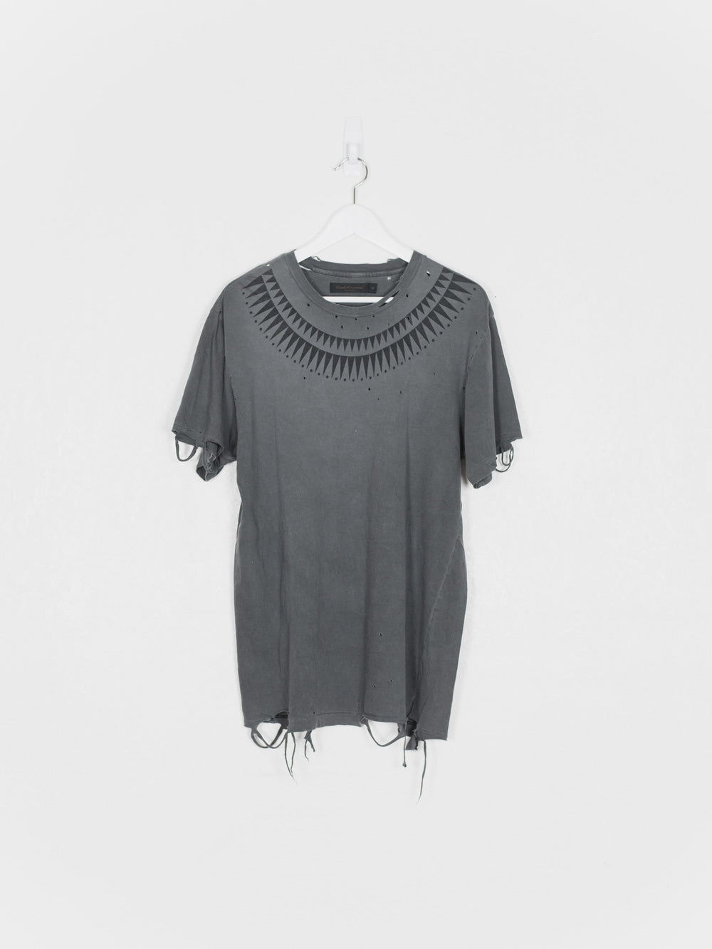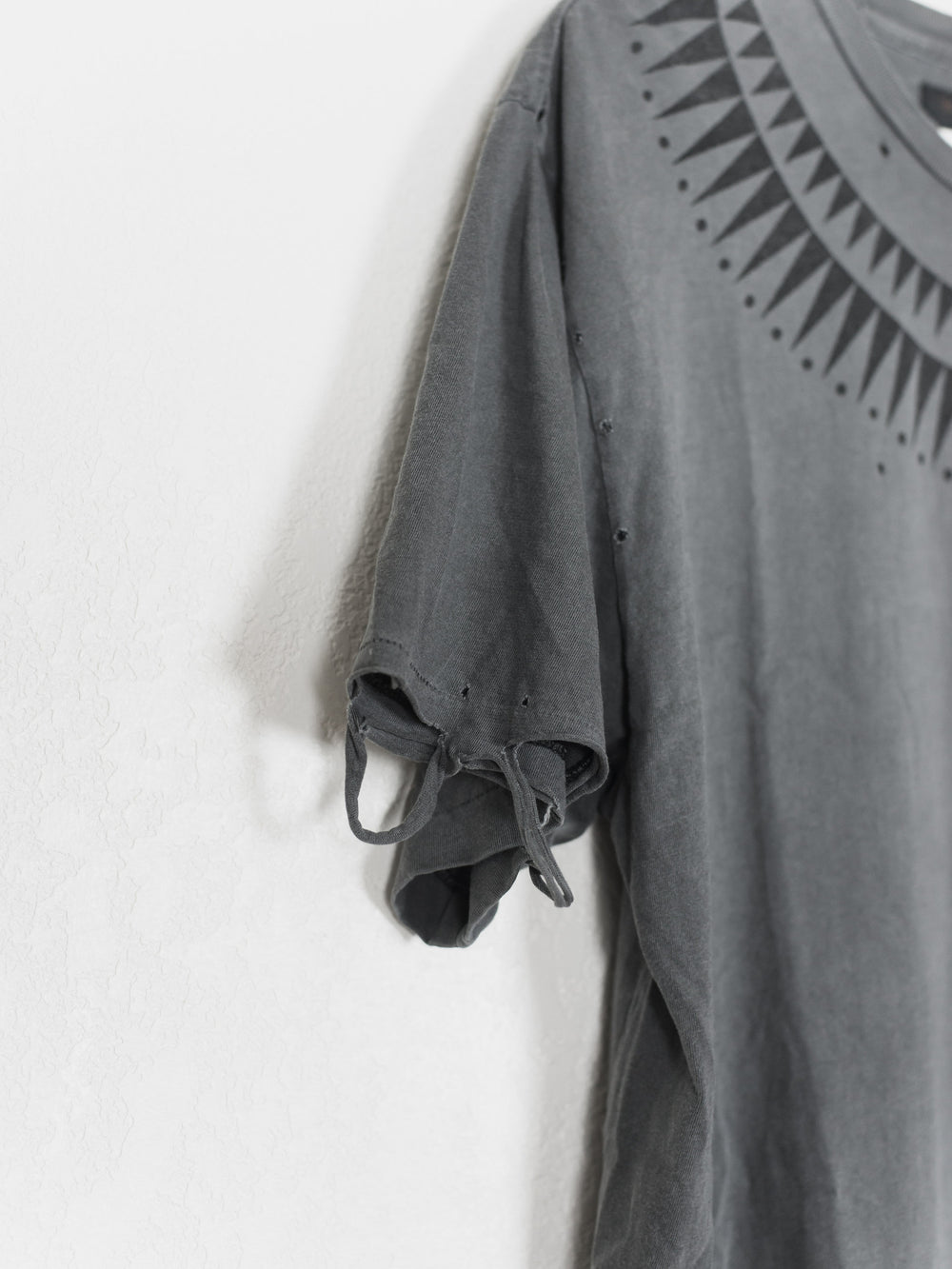 Rare and coveted piece in excellent condition. This is the very first Giz tee with meticously distressed hems and perforations. Because the tee came new with faded and destroyed details, the condition is harder to gauge, but judging by the care-tag and fabric it's in 9/10 condition - no pilling or wrinkles.
