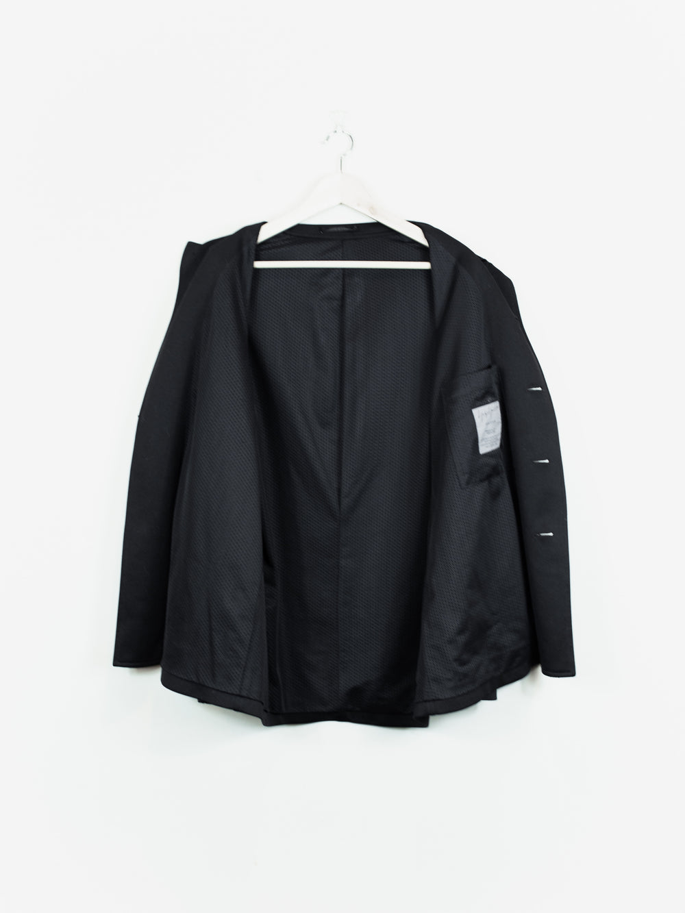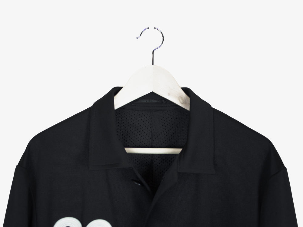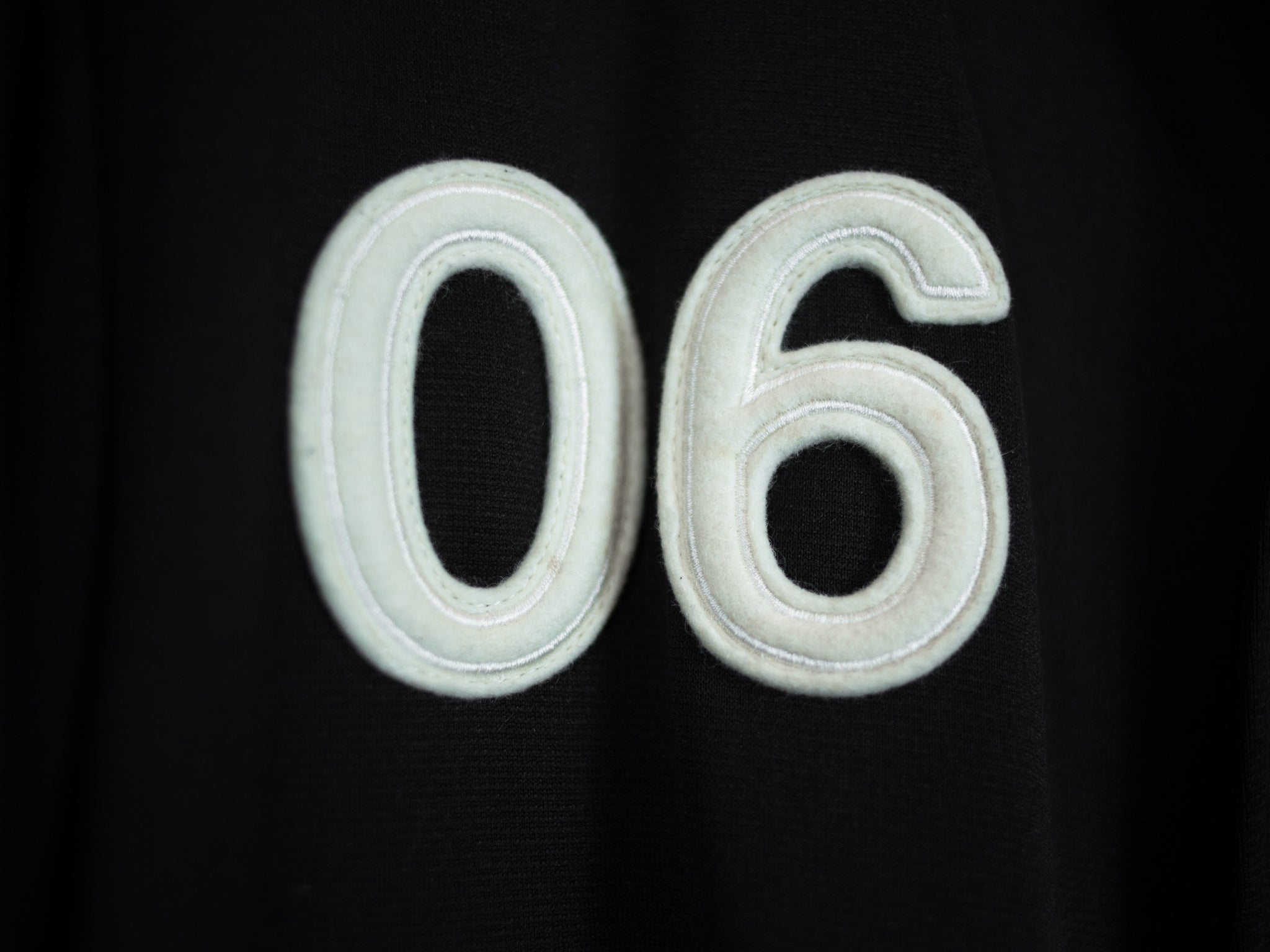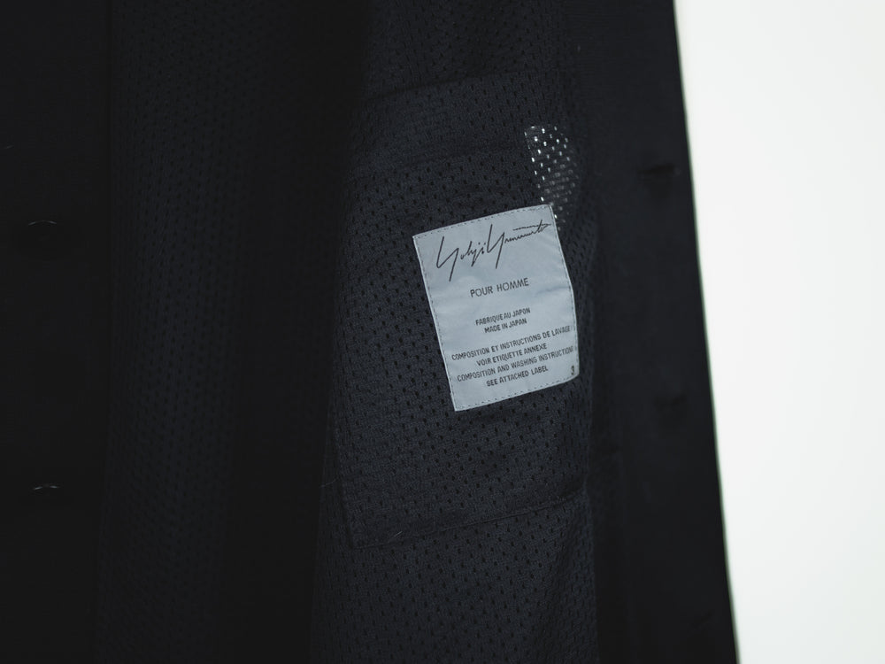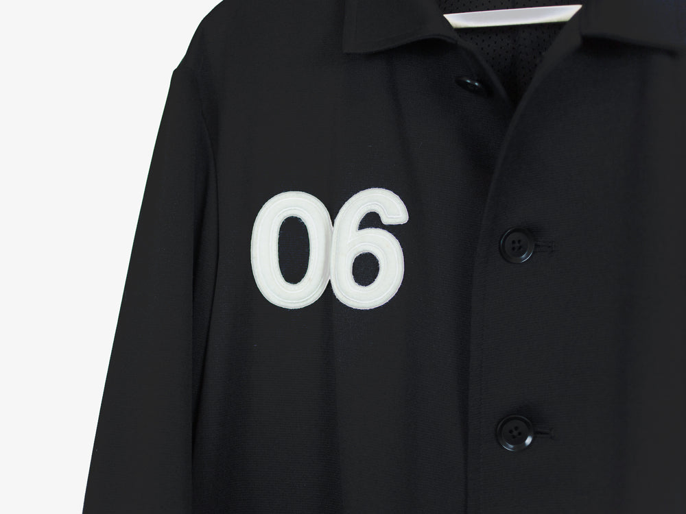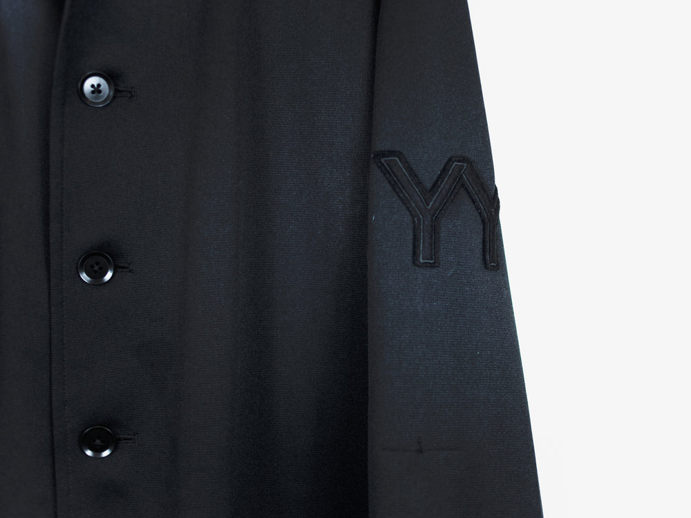 -Yohji showcases his mastery in mixing various realms of menswear, creating a piece that sits perfectly as both a track jacket and a more formal short mac. This jacket is crafted in an incredibly comfortable sportswear polyester that still wears sharp in its oversize draped silhouette. It's lined with an airy mesh and punctuated with emblematic appliques throughout--the signature black 'YY' makes an appearance in addition to the bold contrast felted '06'.