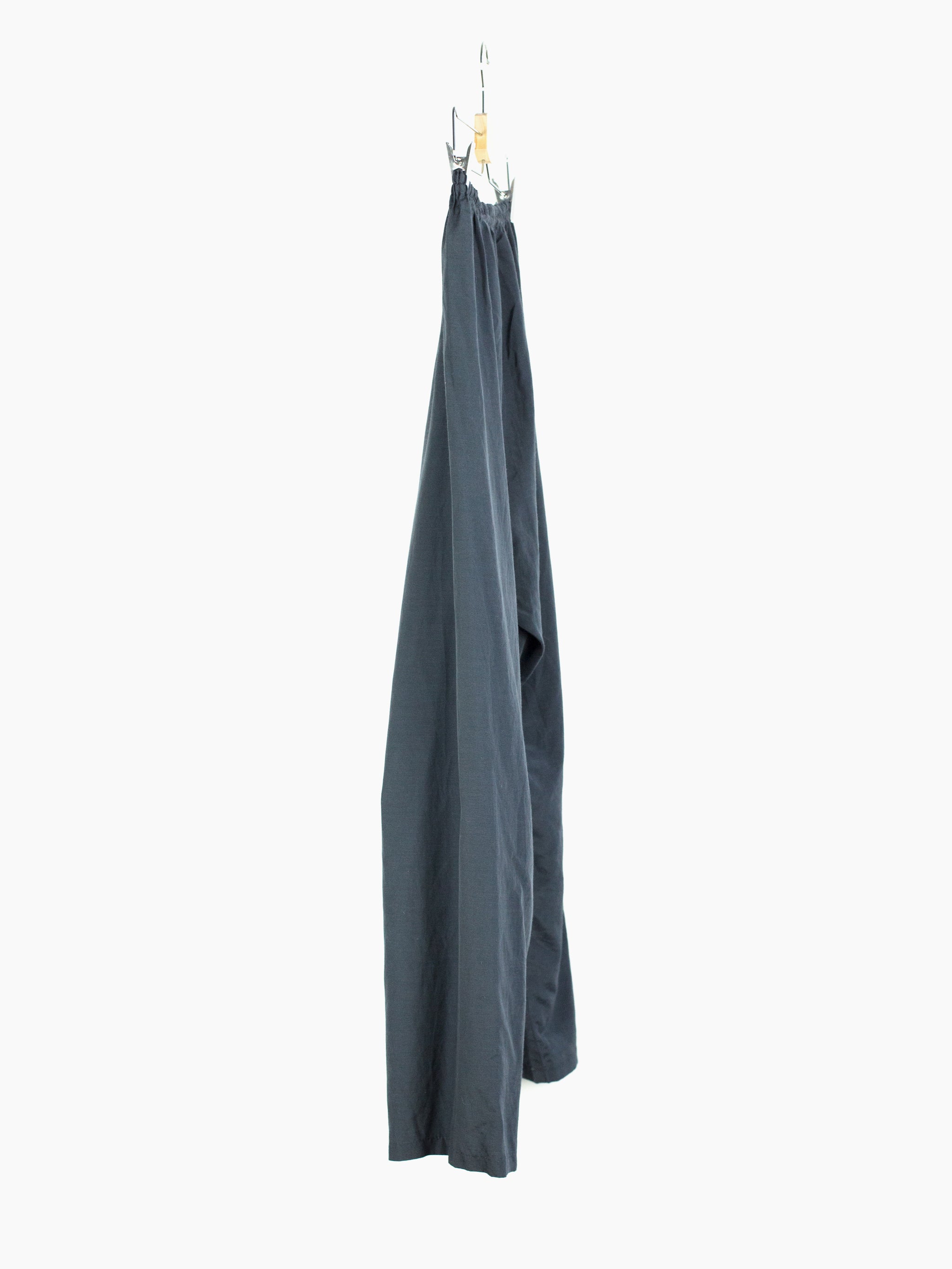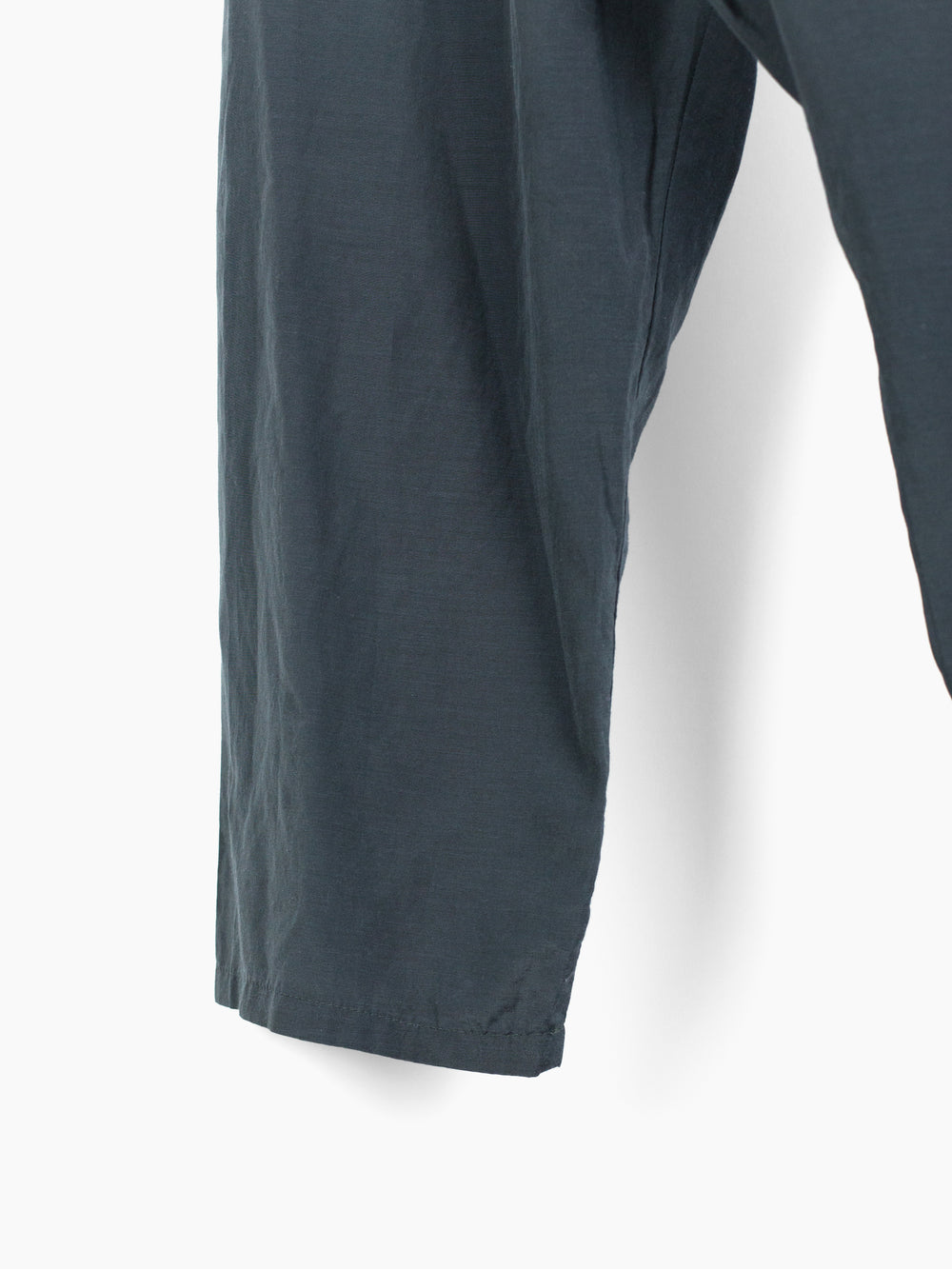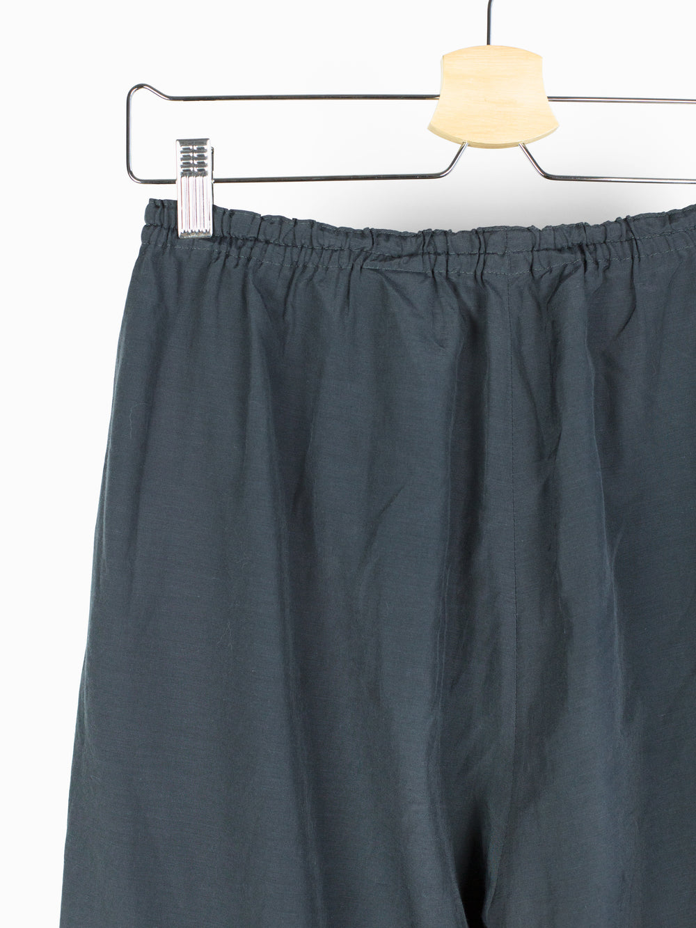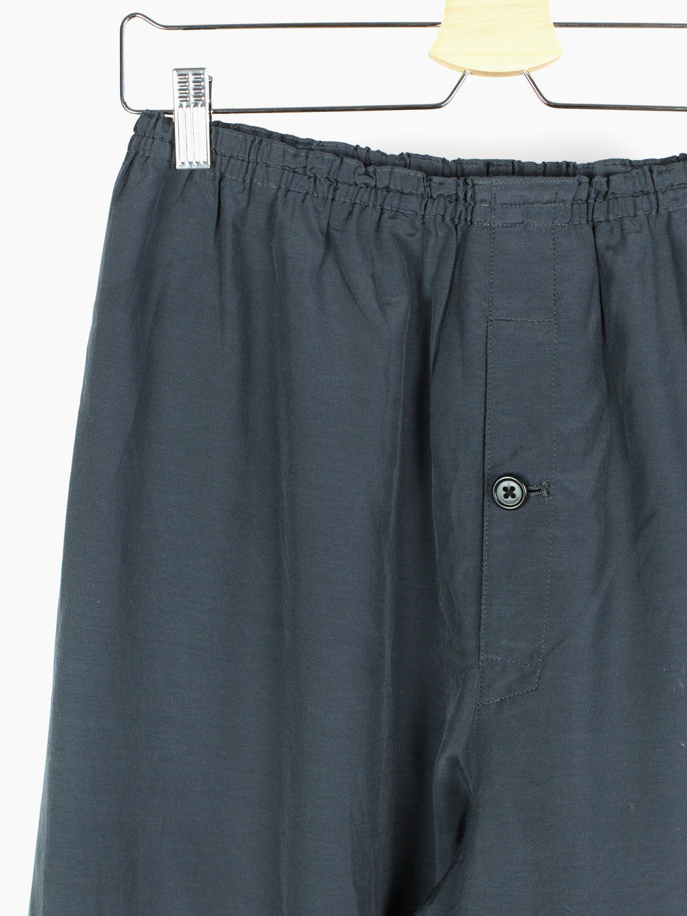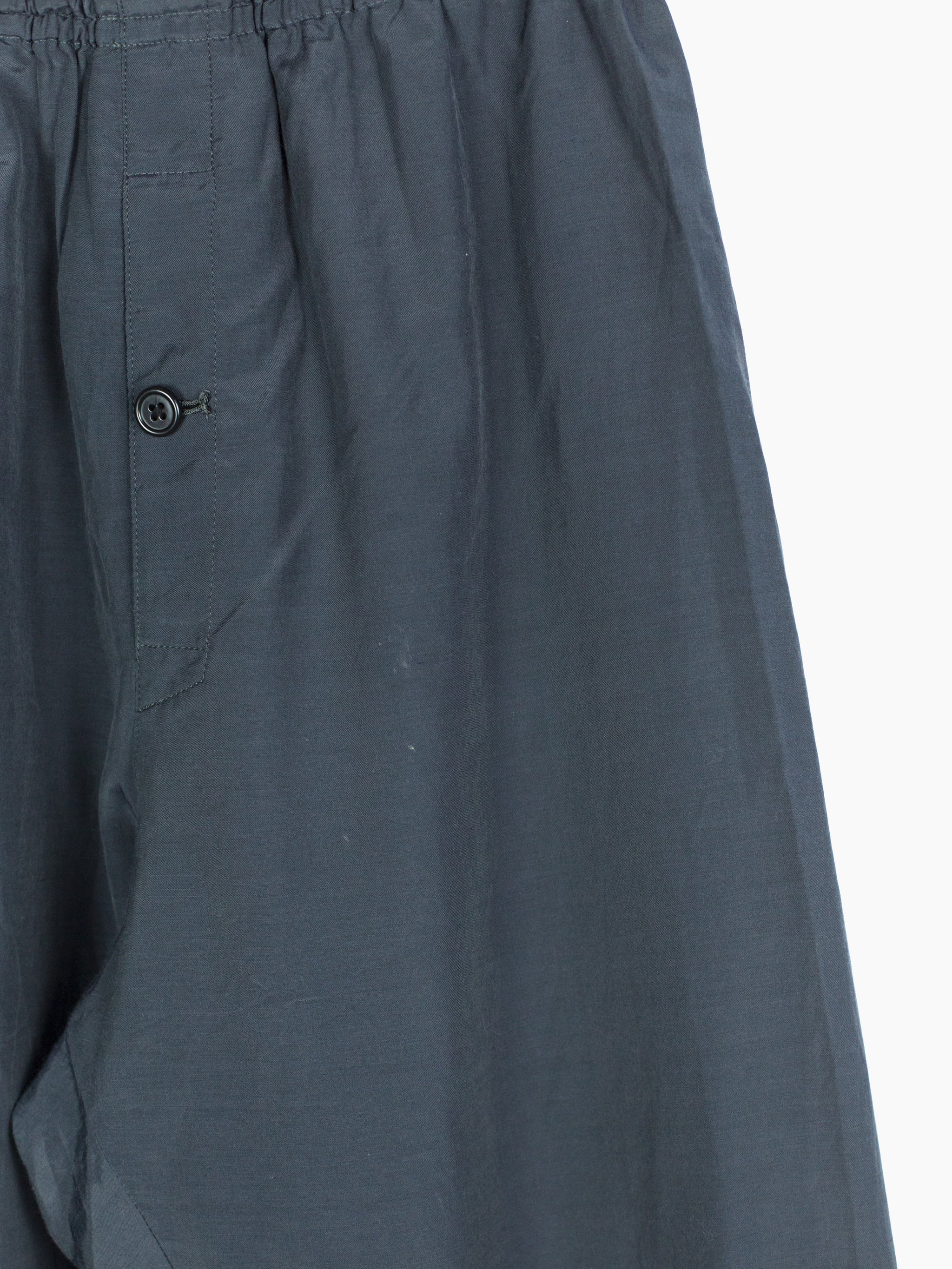 Minimalist easy pants from Yohji Yamamoto Pour Homme, made with comfort in mind. The stripped back detailing and breezy light weight of these pants actually opens up a wealth of styling and layering possibilities. With reduced bulk achieved by a no-outseam construction and no pockets, they are perfect as a longer layer to wear under shorts or skirts in the springtime. The material (untagged but feels like the softest silk) nearly disappears next to skin, making these a perfect underlayer option for comfort under trousers whose texture is rougher. Completely wearable on their own as well, they feature a slightly dropped rise, a button fly and cropped/tapered cut.
