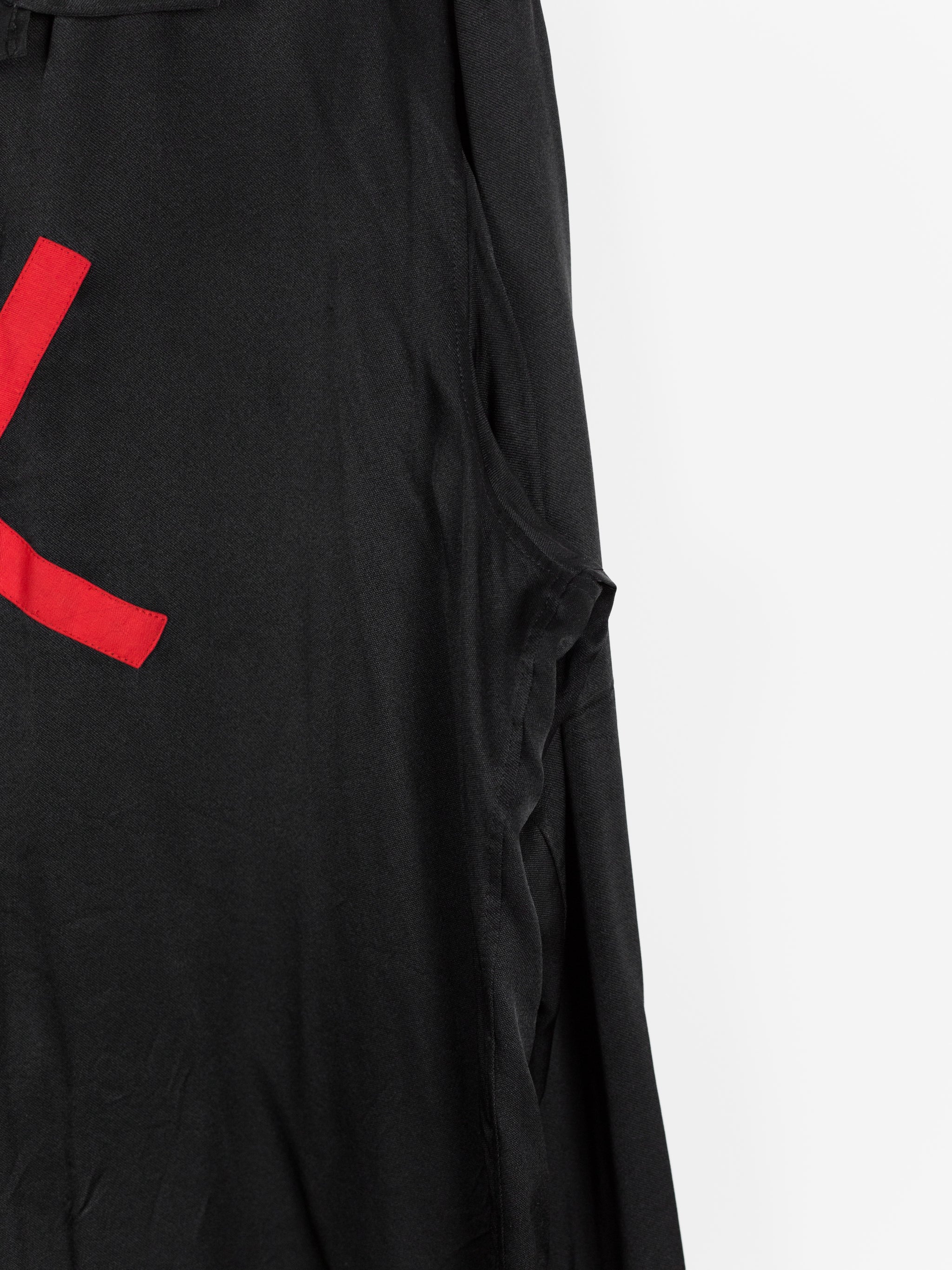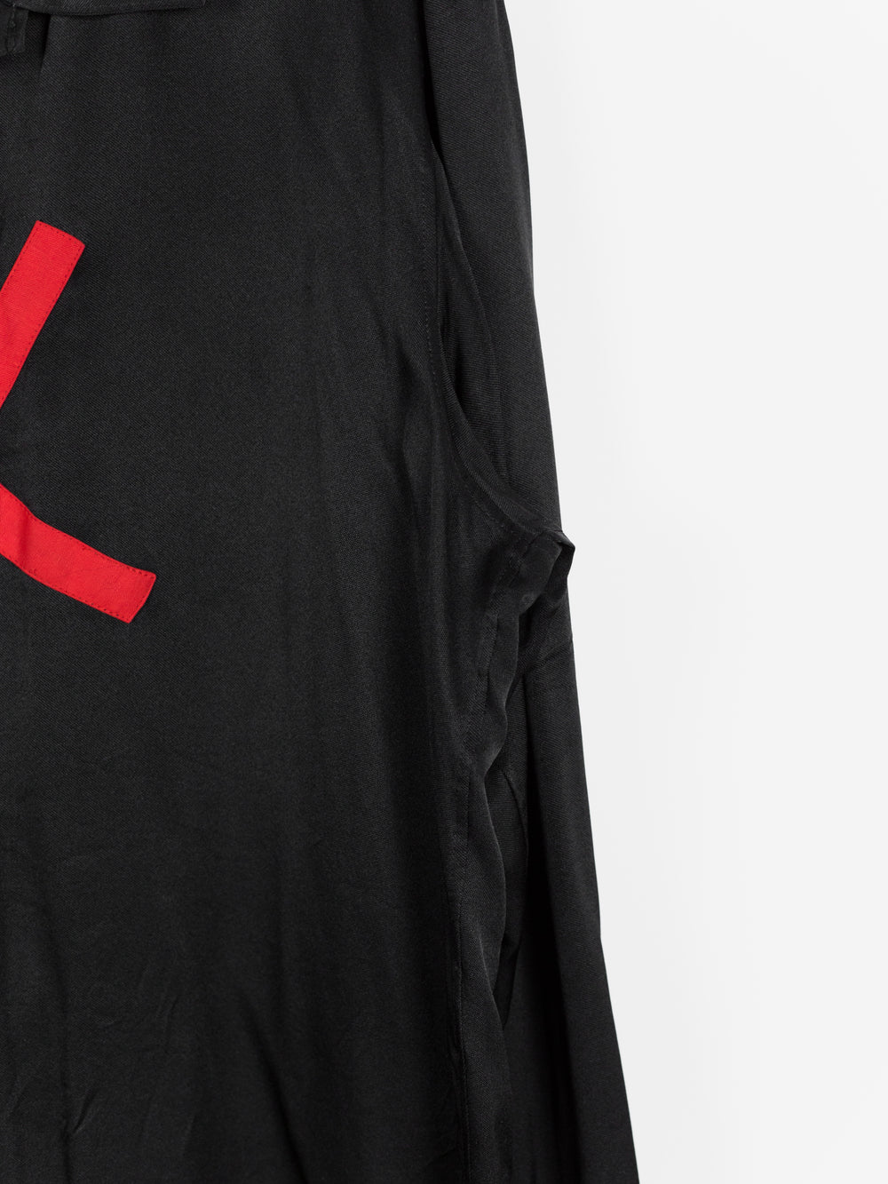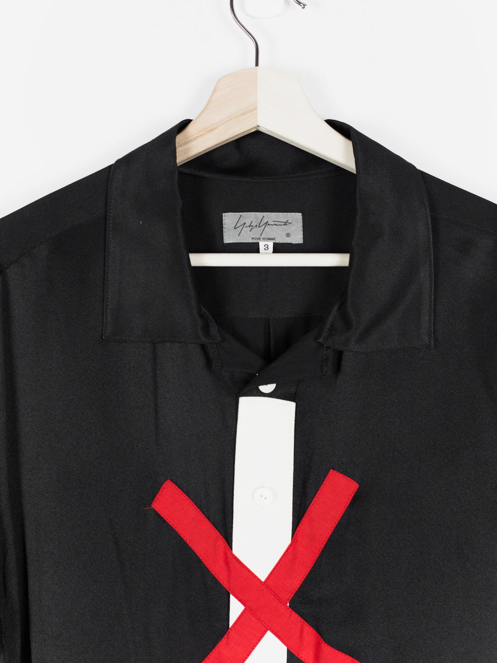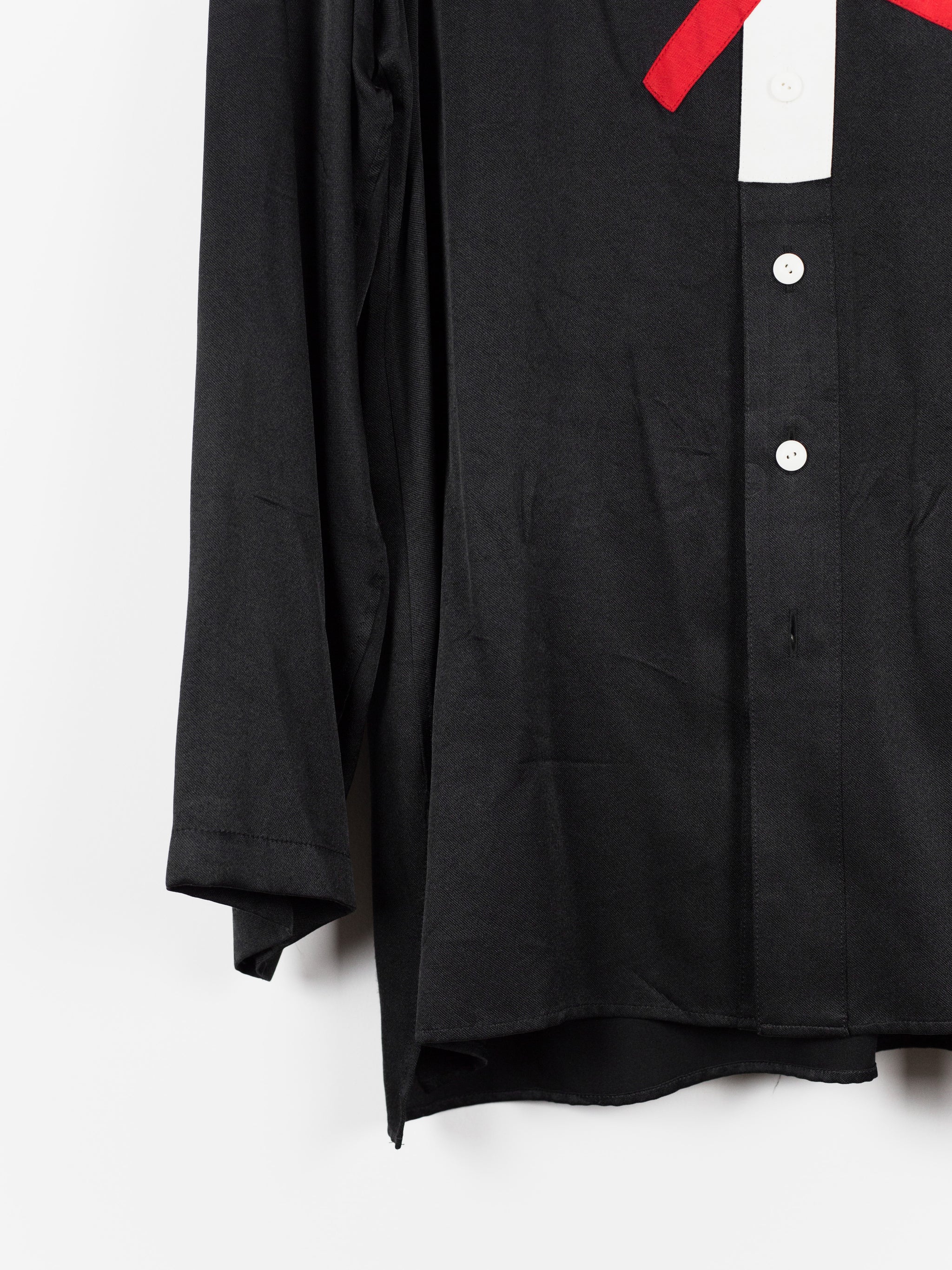 Diaphonous silk pullover shirt with graphic red and white detailing across the placket. Amazingly breezy and perfect for summer. Drapes beautifully for a sharp look despite its relaxed cut.