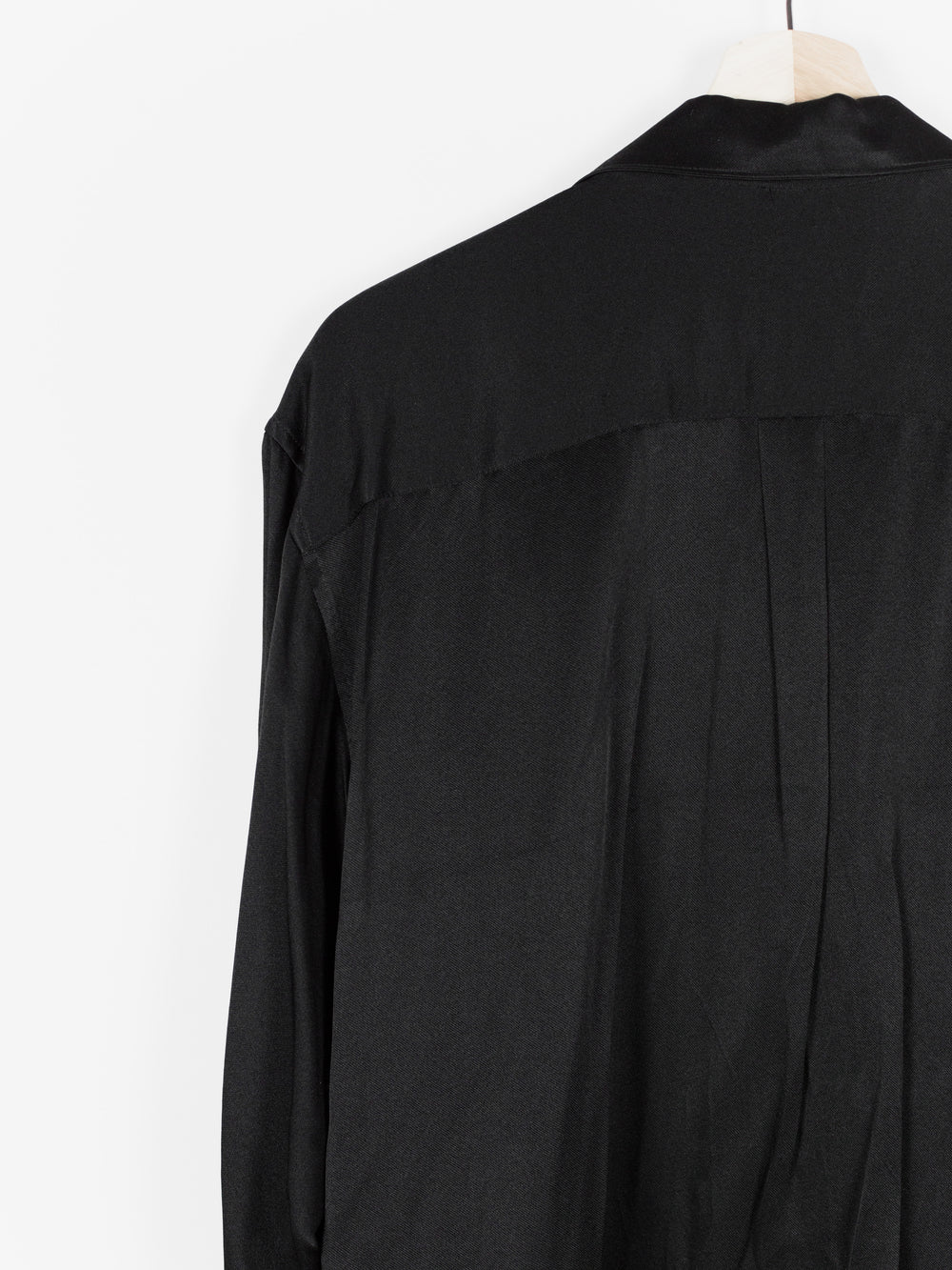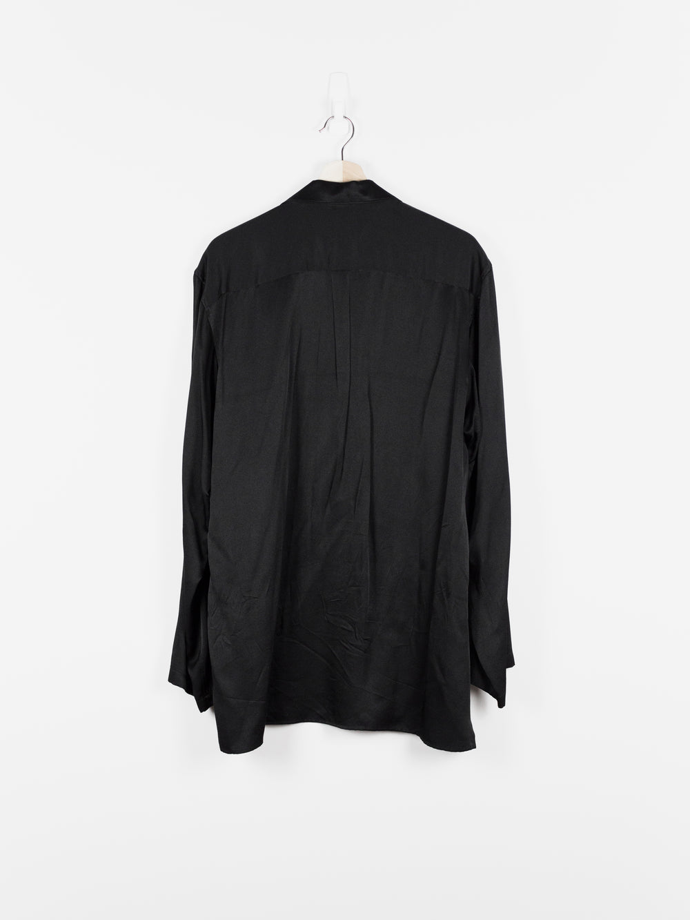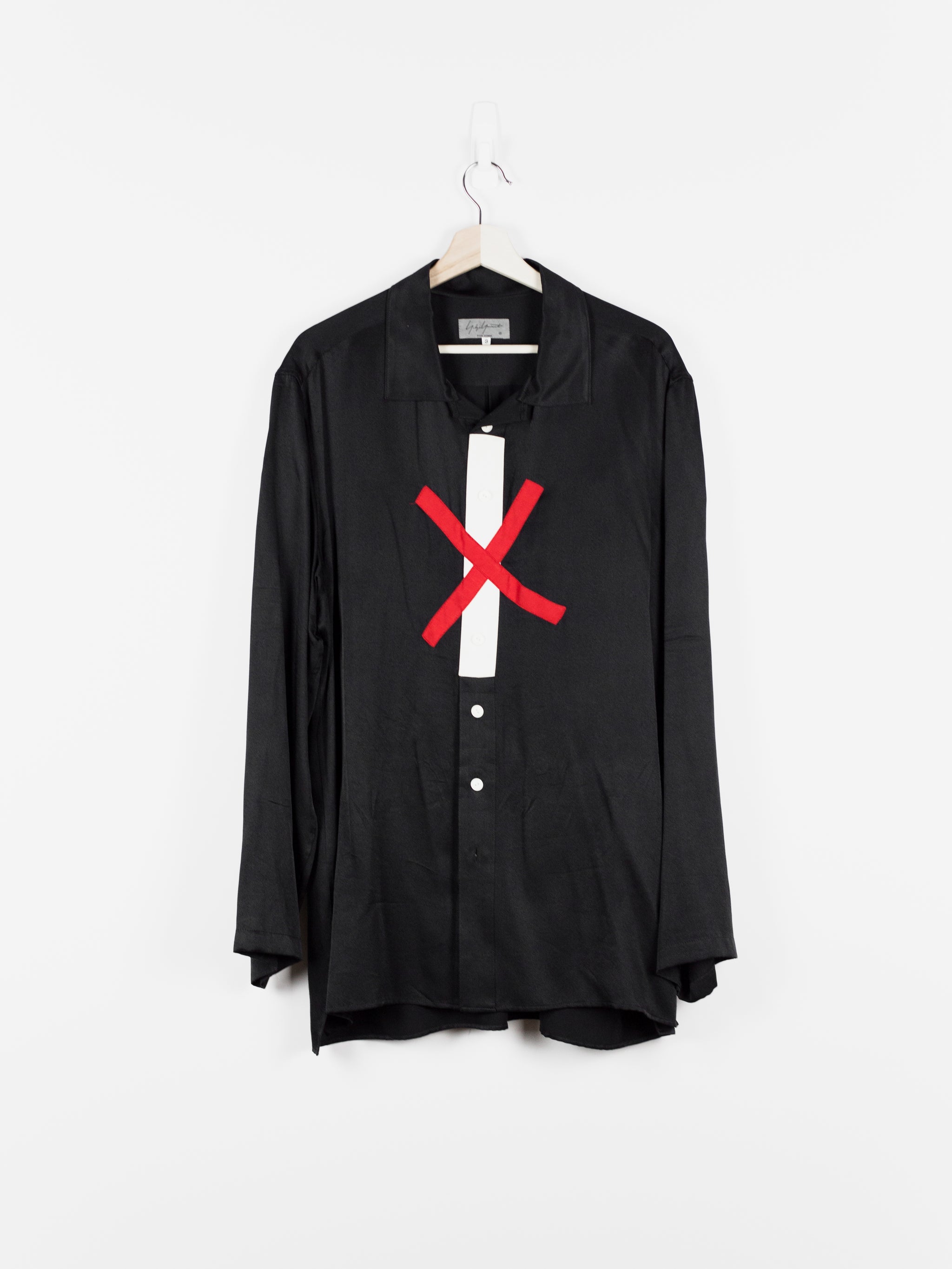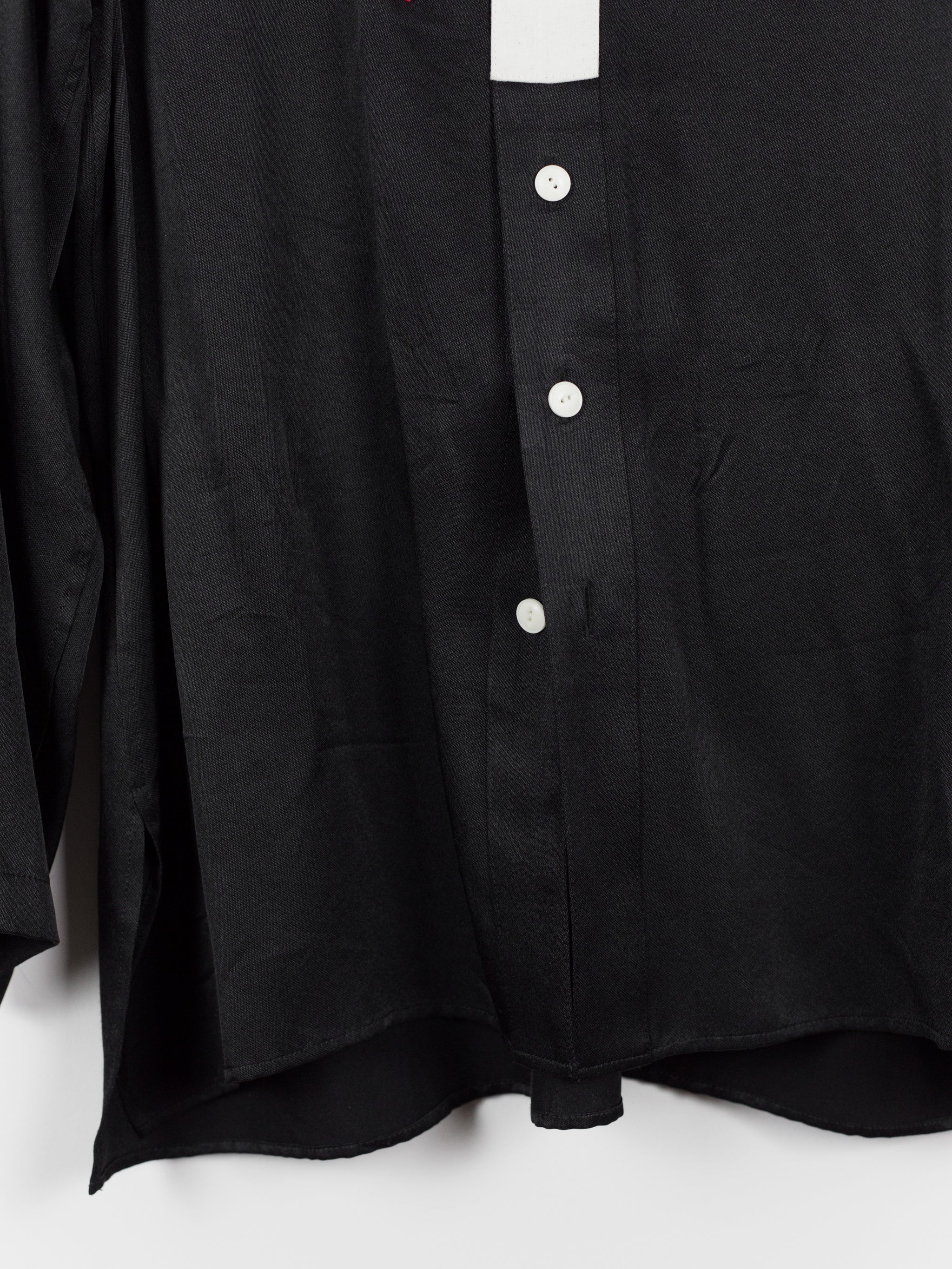 Diaphonous silk pullover shirt with graphic red and white detailing across the placket. Amazingly breezy and perfect for summer. Drapes beautifully for a sharp look despite its relaxed cut.
