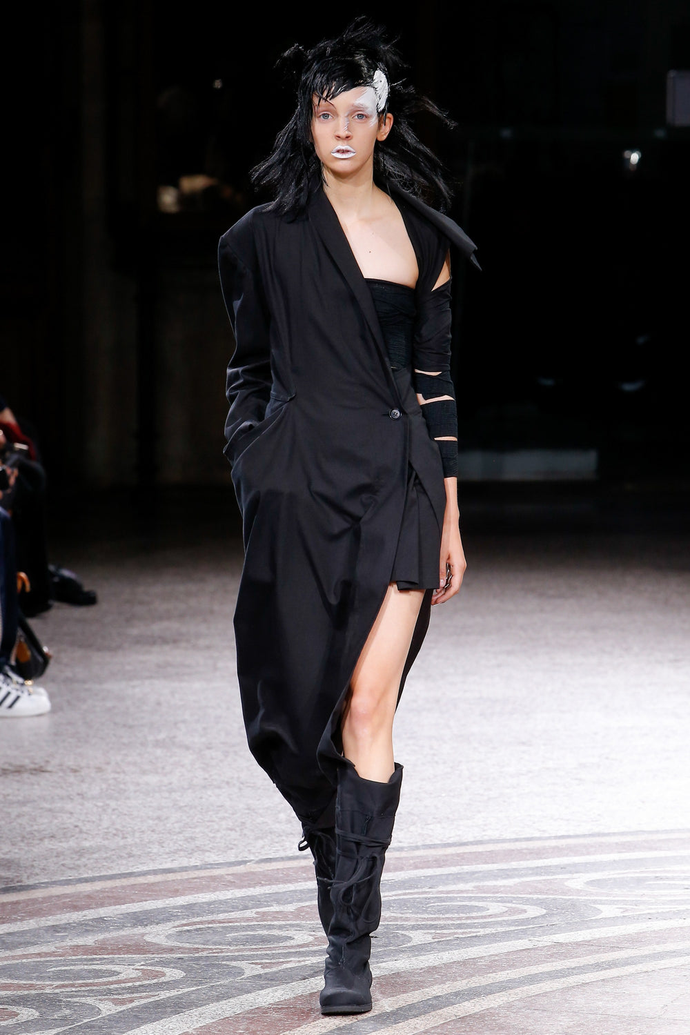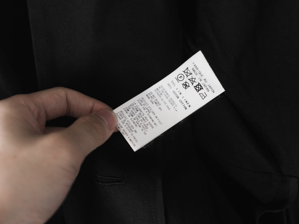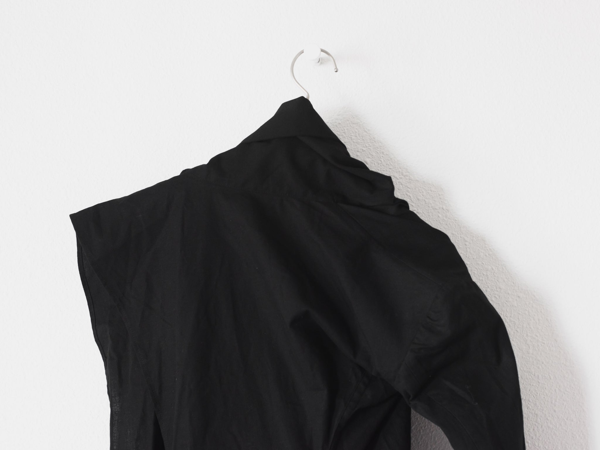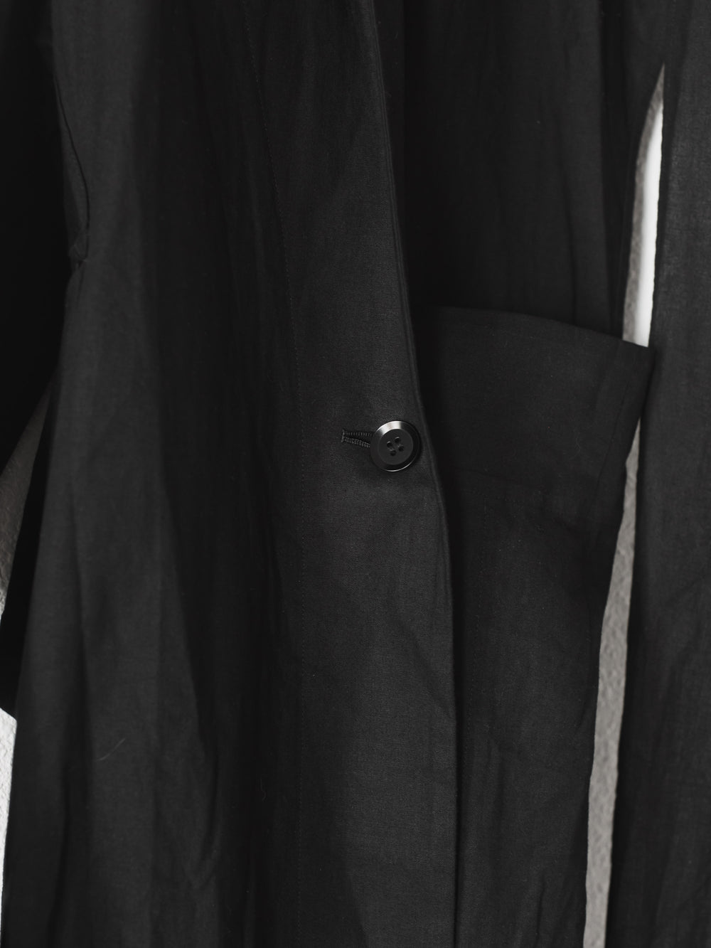 Incredible and unique spring coat with a full length right sleeve traditional shawl collar deconstructing into a long stole wrap that can be worn in numerous configurations as a bandeau top, arm sleeve, choker, or left to hang. Can also be worn as a slitted gown.