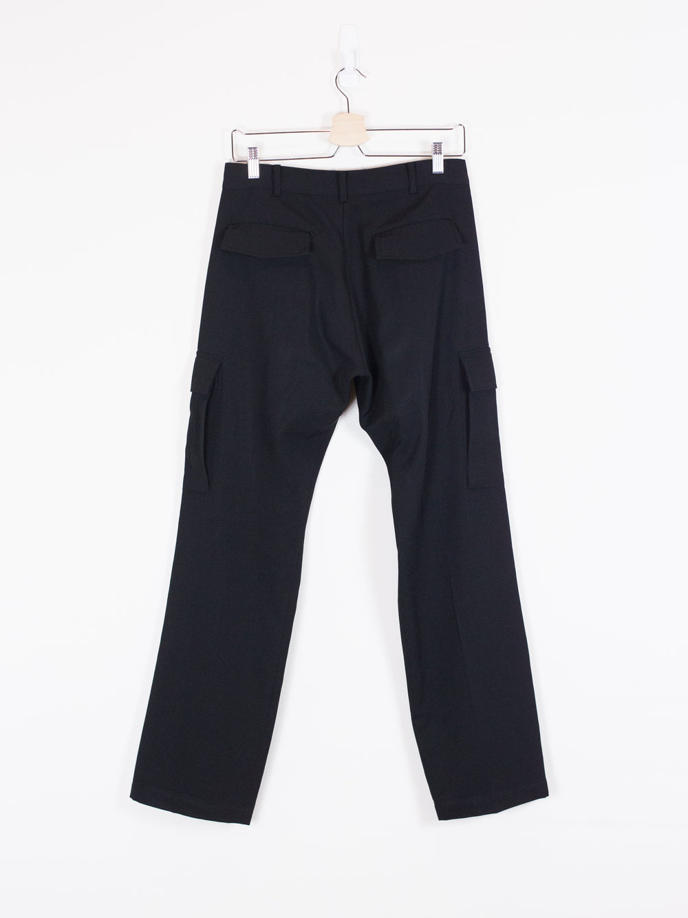This is your archetypical cargo trouser, cut in a dense, flowing wool gabardine with a universally flattering slim-straight leg cut that looks great on both guys and girls. Features perfectly sized button-closed cargo pockets and back-flap pockets. Delightfully minimalist in its style with just the right amount of detailing to be visually interesting. Amazingly versatile, comfortable, and refined. Can’t get more classic than this.