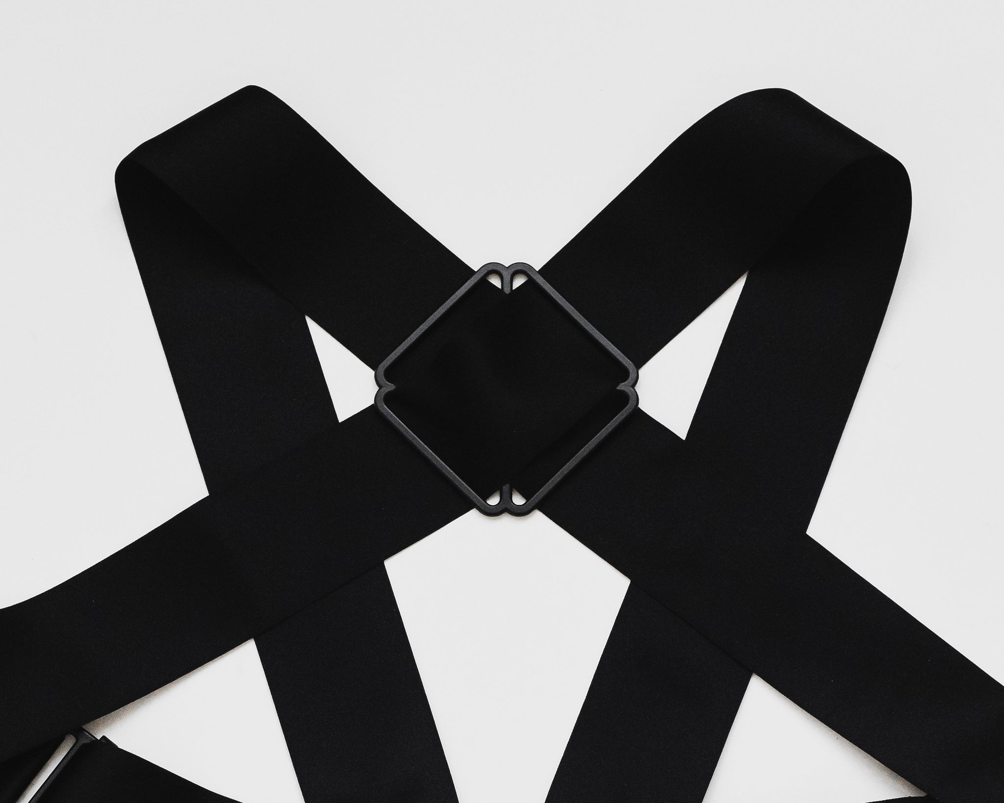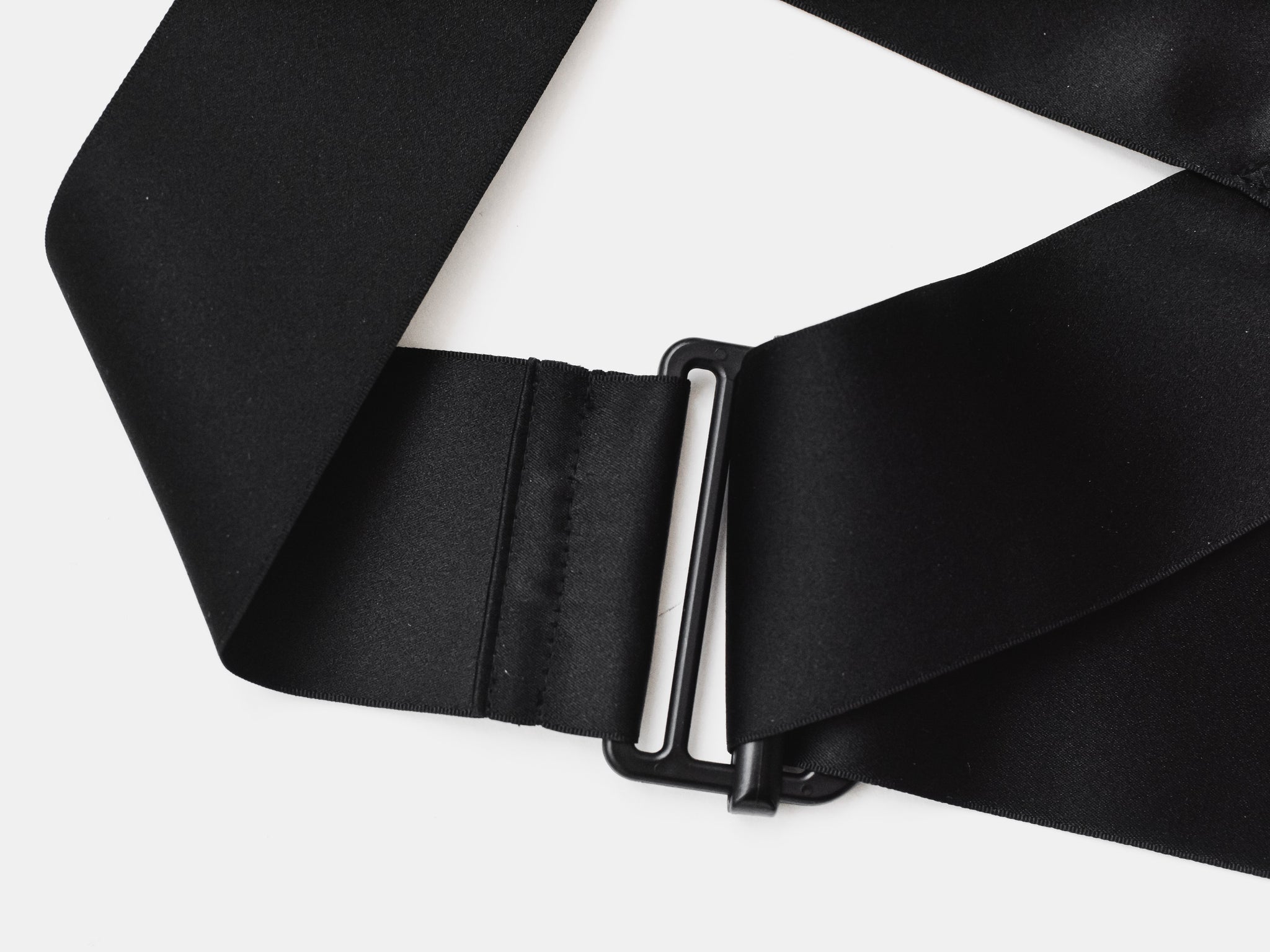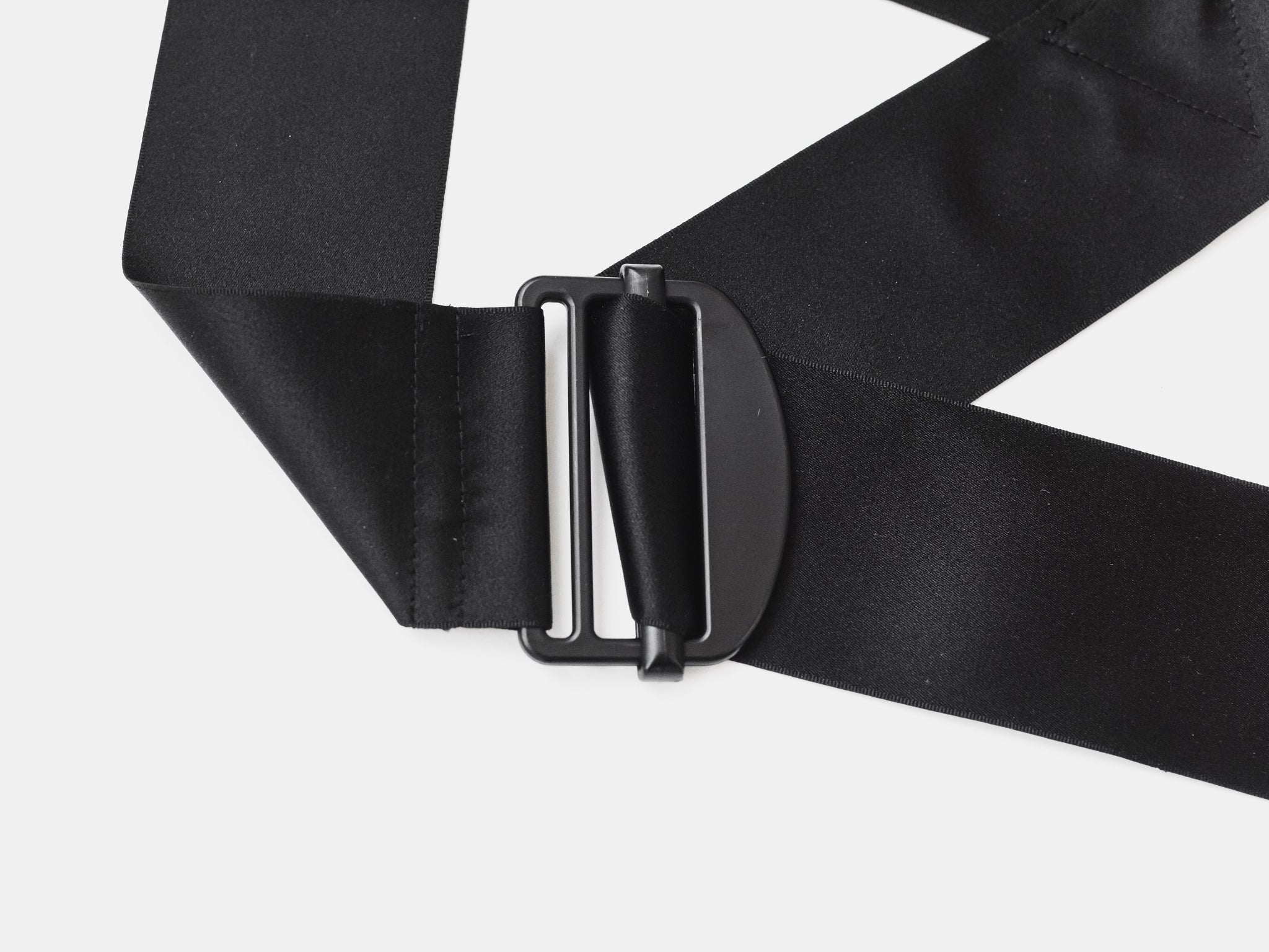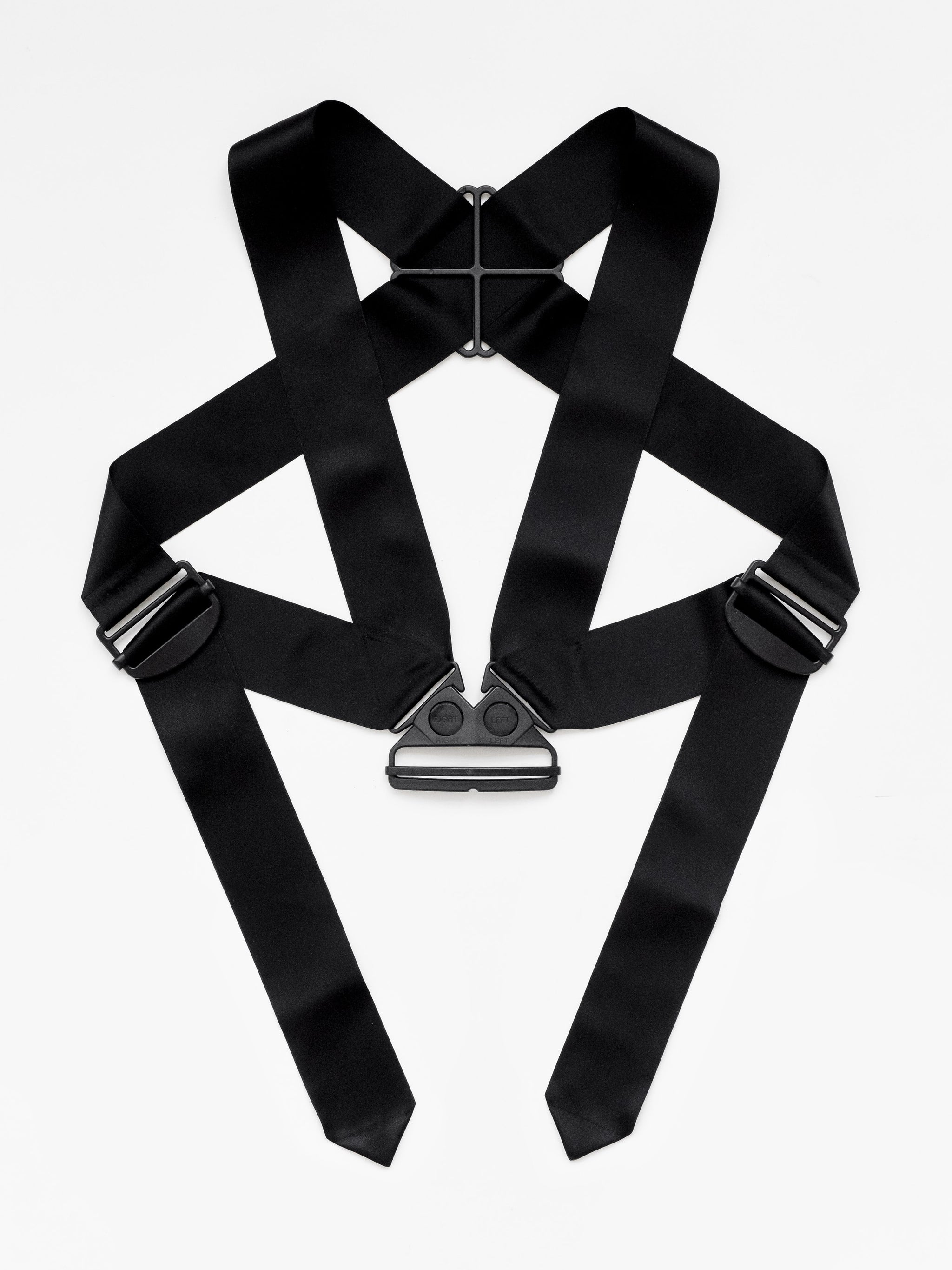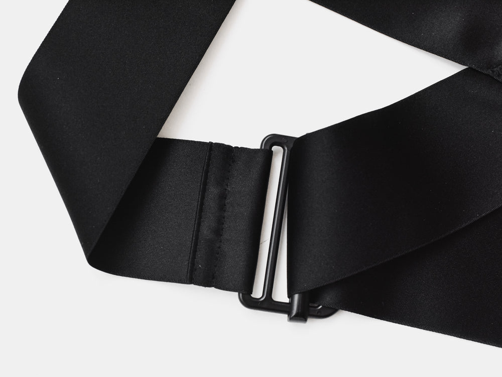 The hardware also mandated an unusual non-standard strap width, which even the Helmut Lang team had trouble sourcing. One example of the runway versions feature two smaller-width straps sewn together to create the correct width. Fortunately, after extensive research we've managed to source the correct width straps from the most premium silk ribbon available based on the aggressive harness that were rendered in a subversive silk satin.