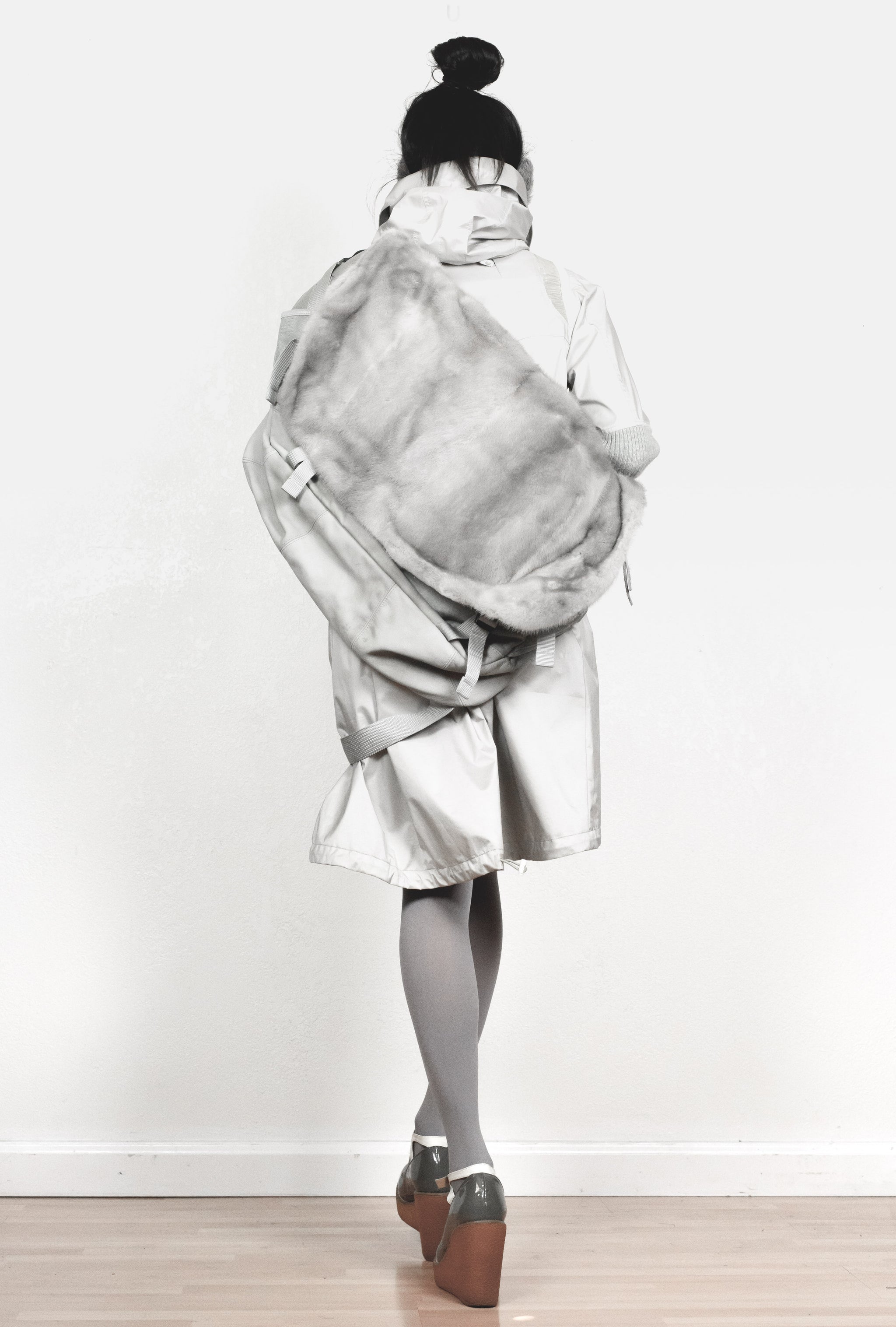 Autumn Winter 2007 marked an influential stylistic turning point in Undercover’s timeline. Although no stranger to incorporating striking mixed materials, Jun diverged from his prior work with his first foray into a widespread thematic use of technical fabrics. Combining futuristic synthetics such as Diaplex and clear polyurethane with traditional winter wool knits and mink furs, Jun both departs from and harkens back to the organic crust punk influenced amalgams of prior seasons.